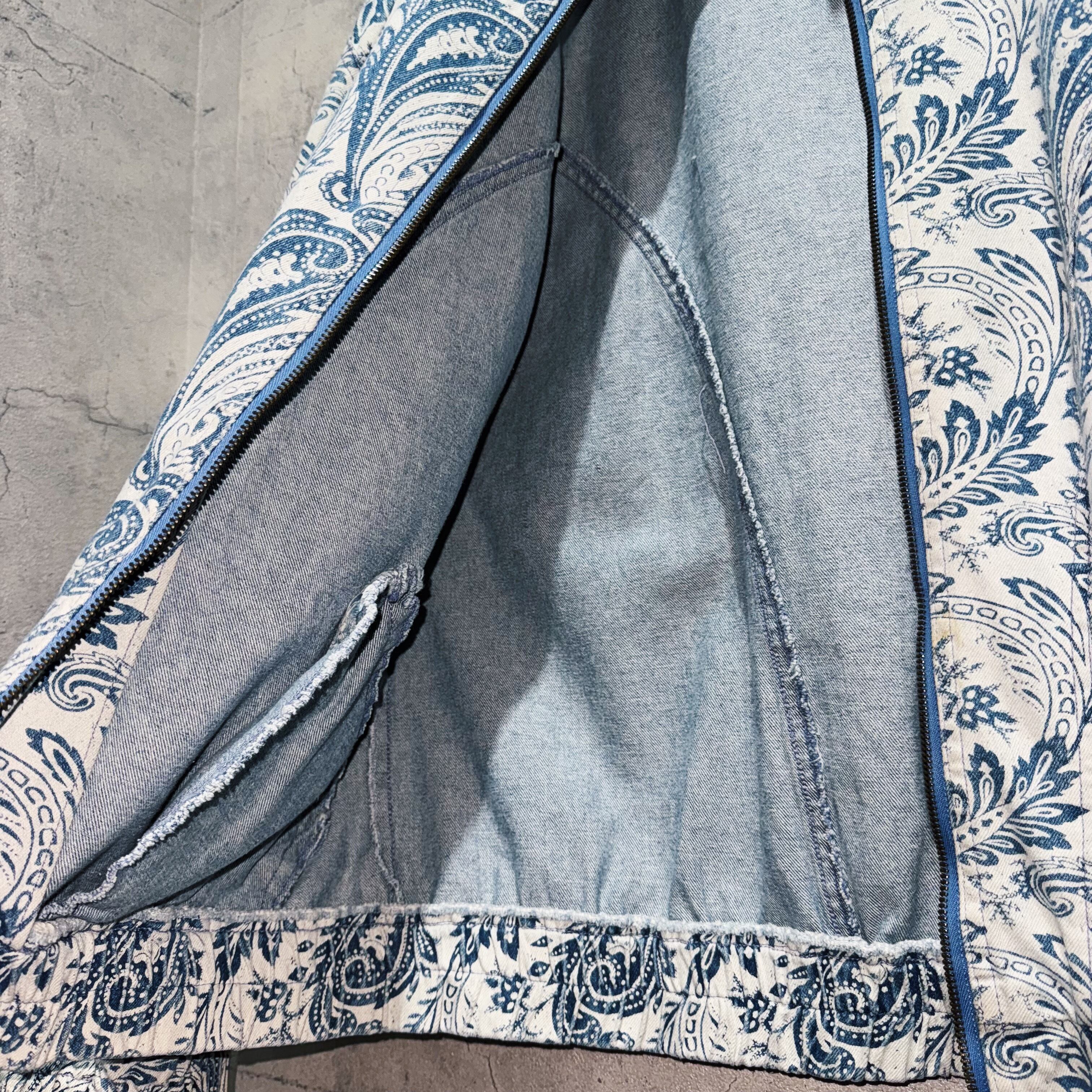 高級感のあるペイズリーとボタニカルパターンを品格のあるブルーとホワイトのカラーリングで仕上げた凄みのあるデニムジャケット。