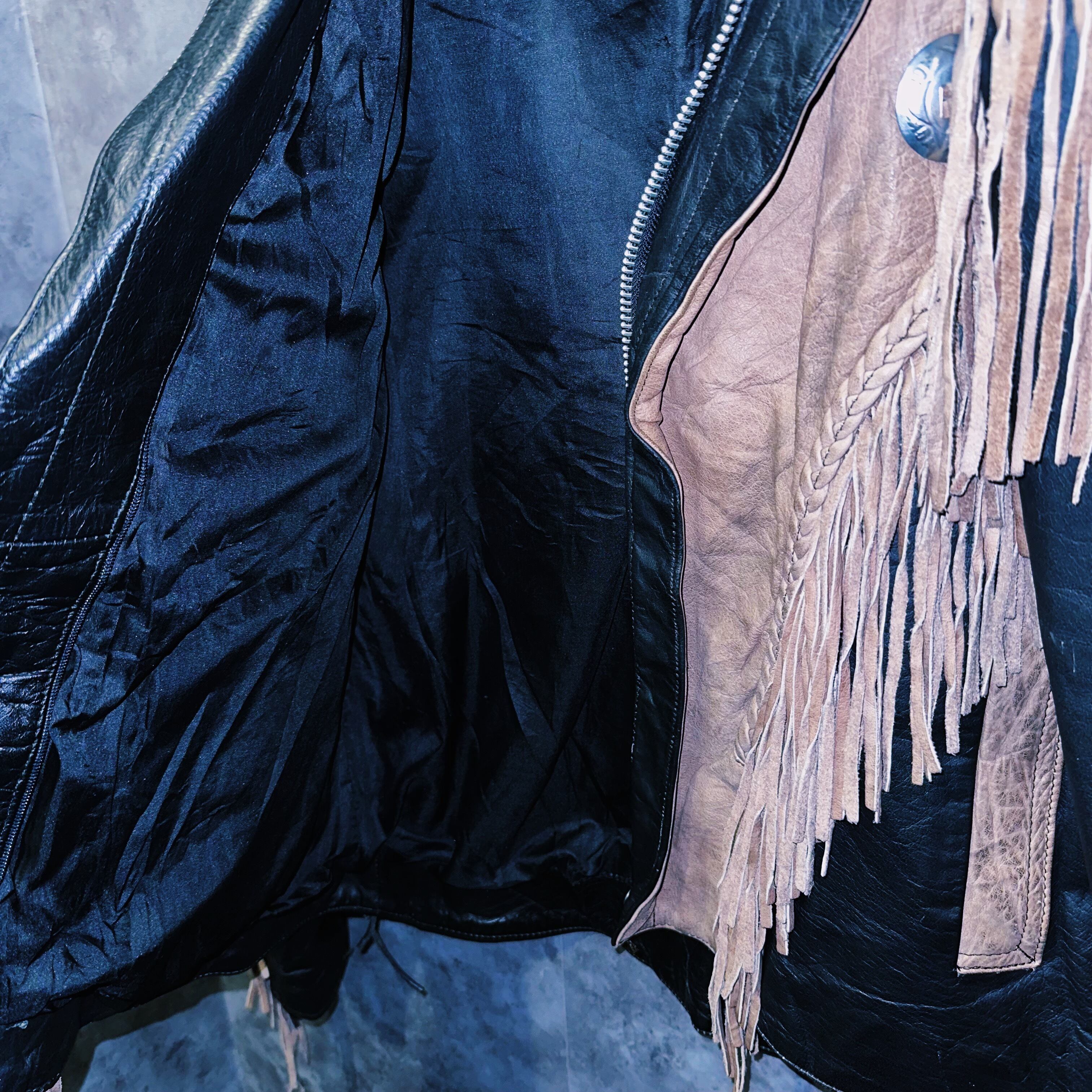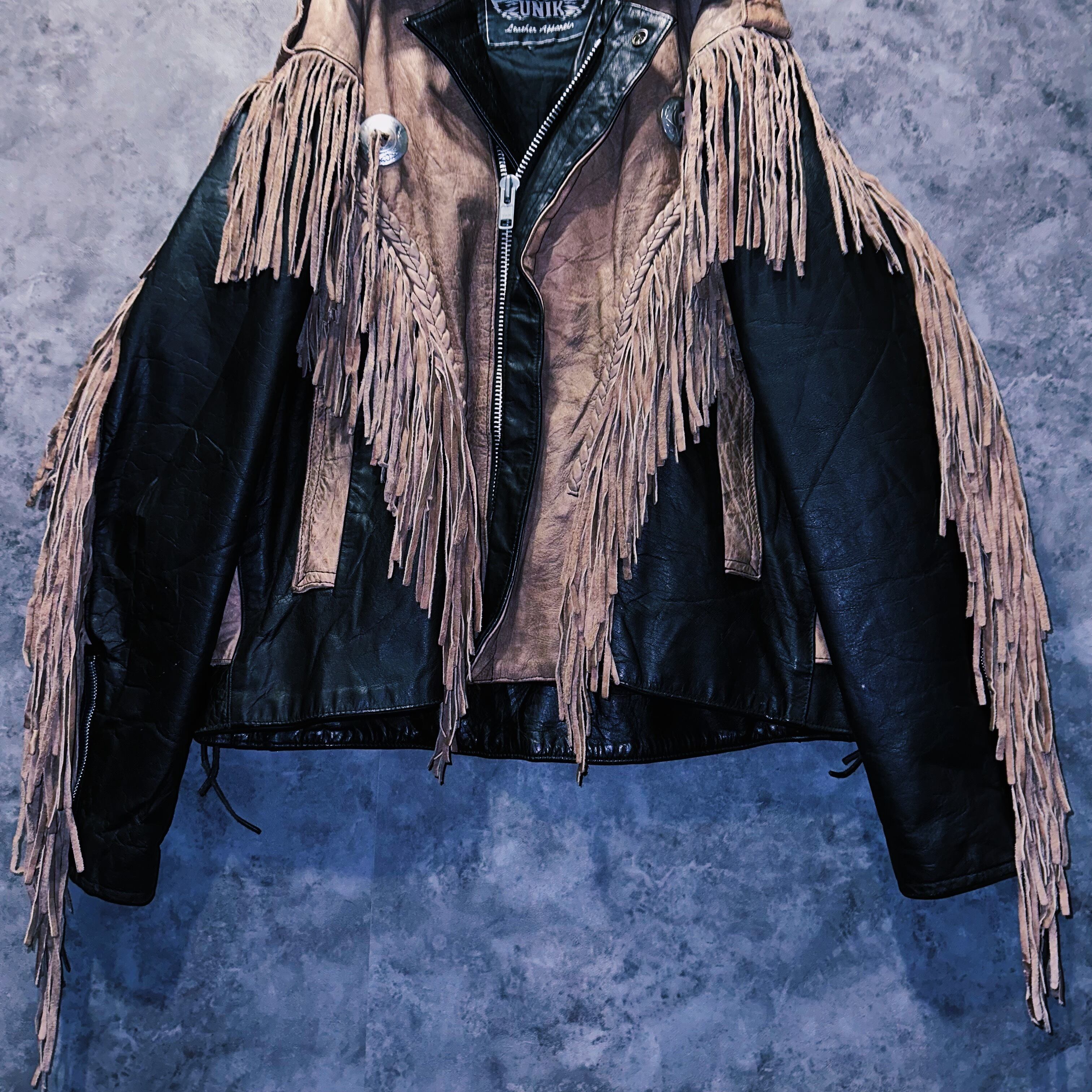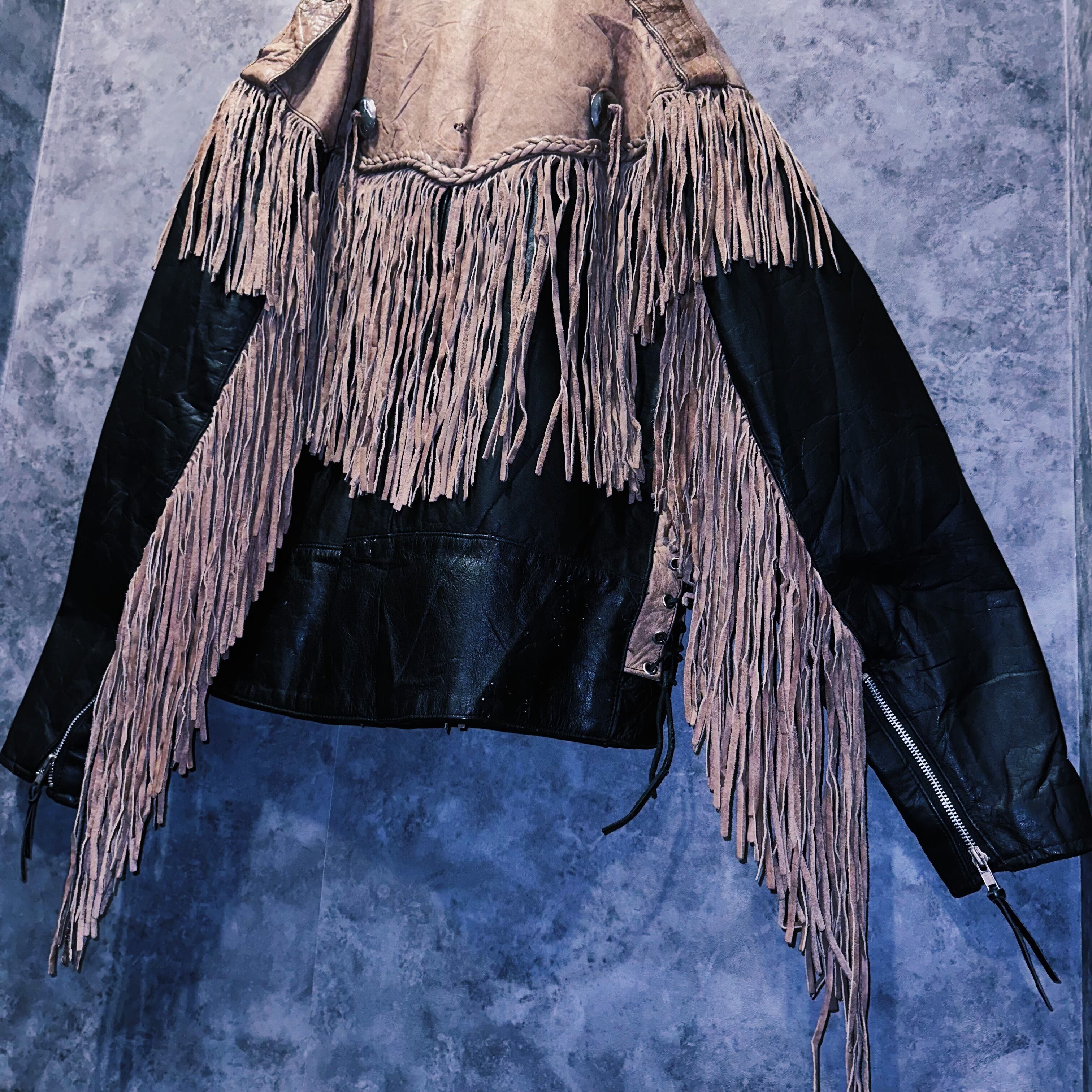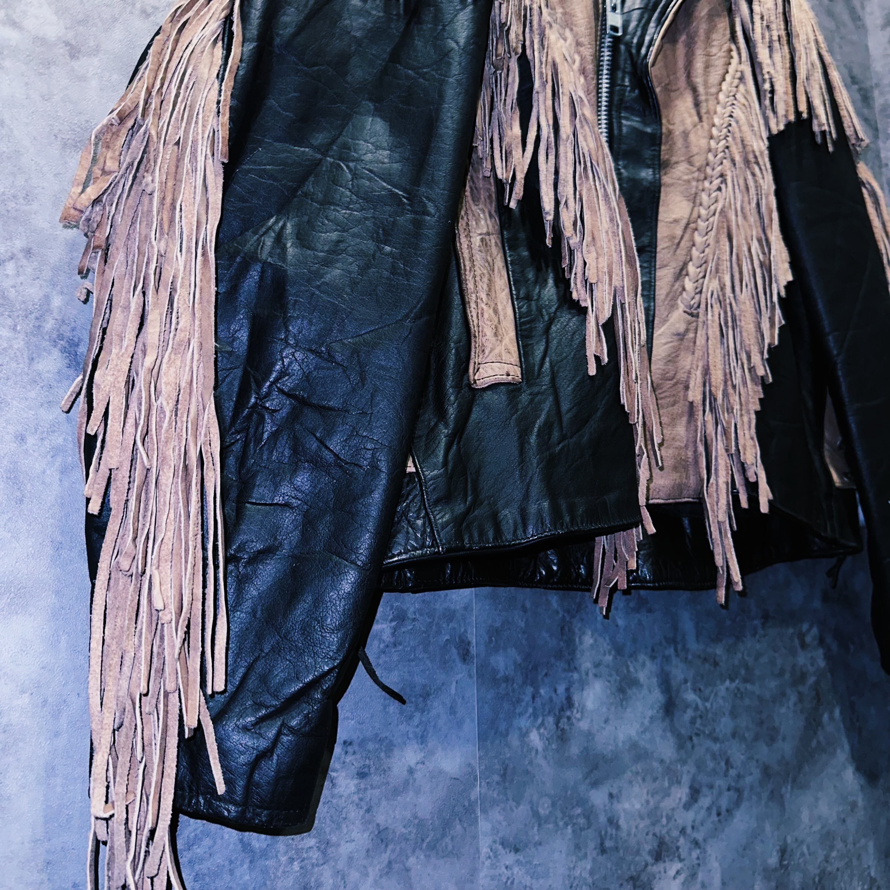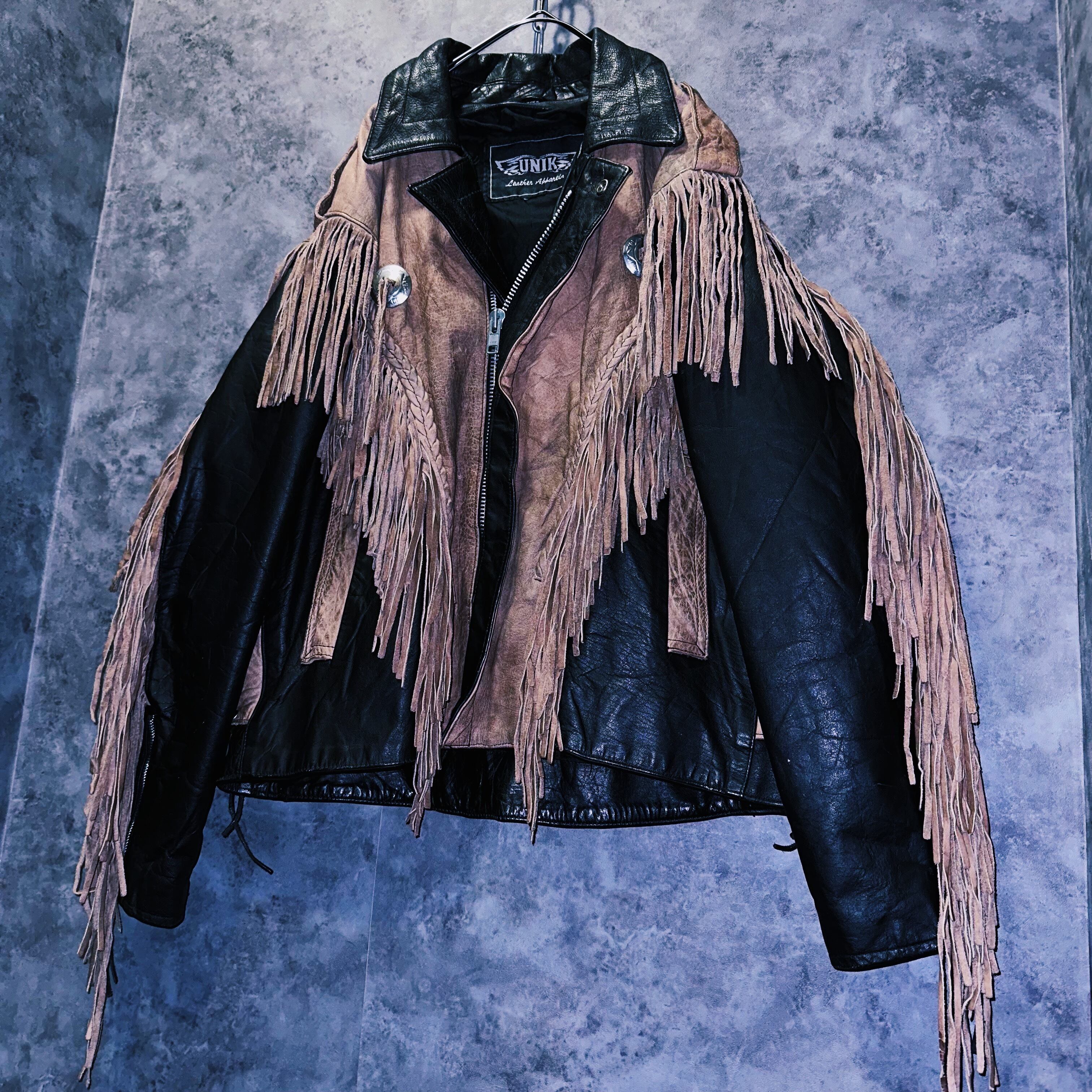 スペシャル70'sフリンジデザインレザーライダースジャケット