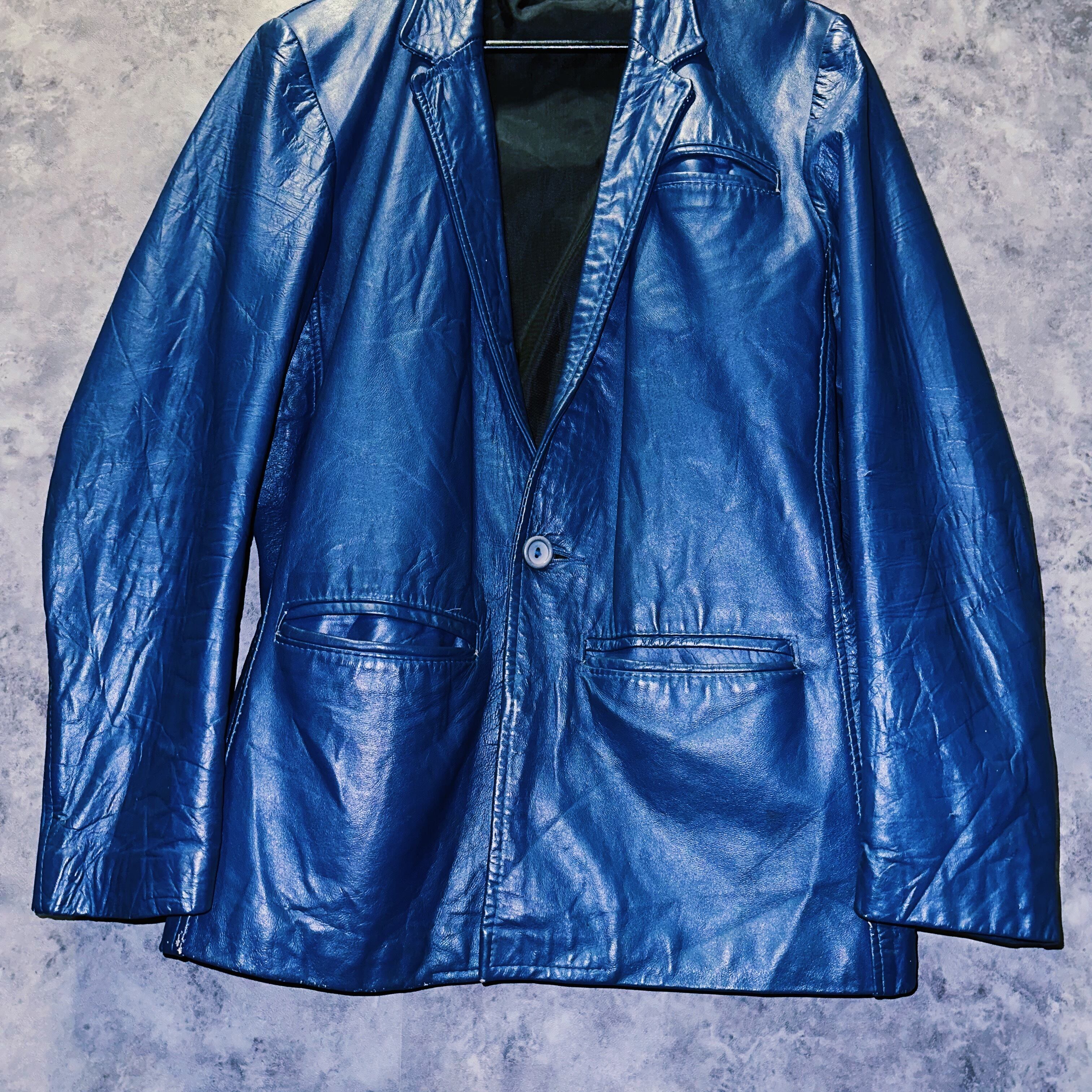 スペシャル70'sヴィンテージブルーレザーシングルブレストフレアトラウザースセットアップ