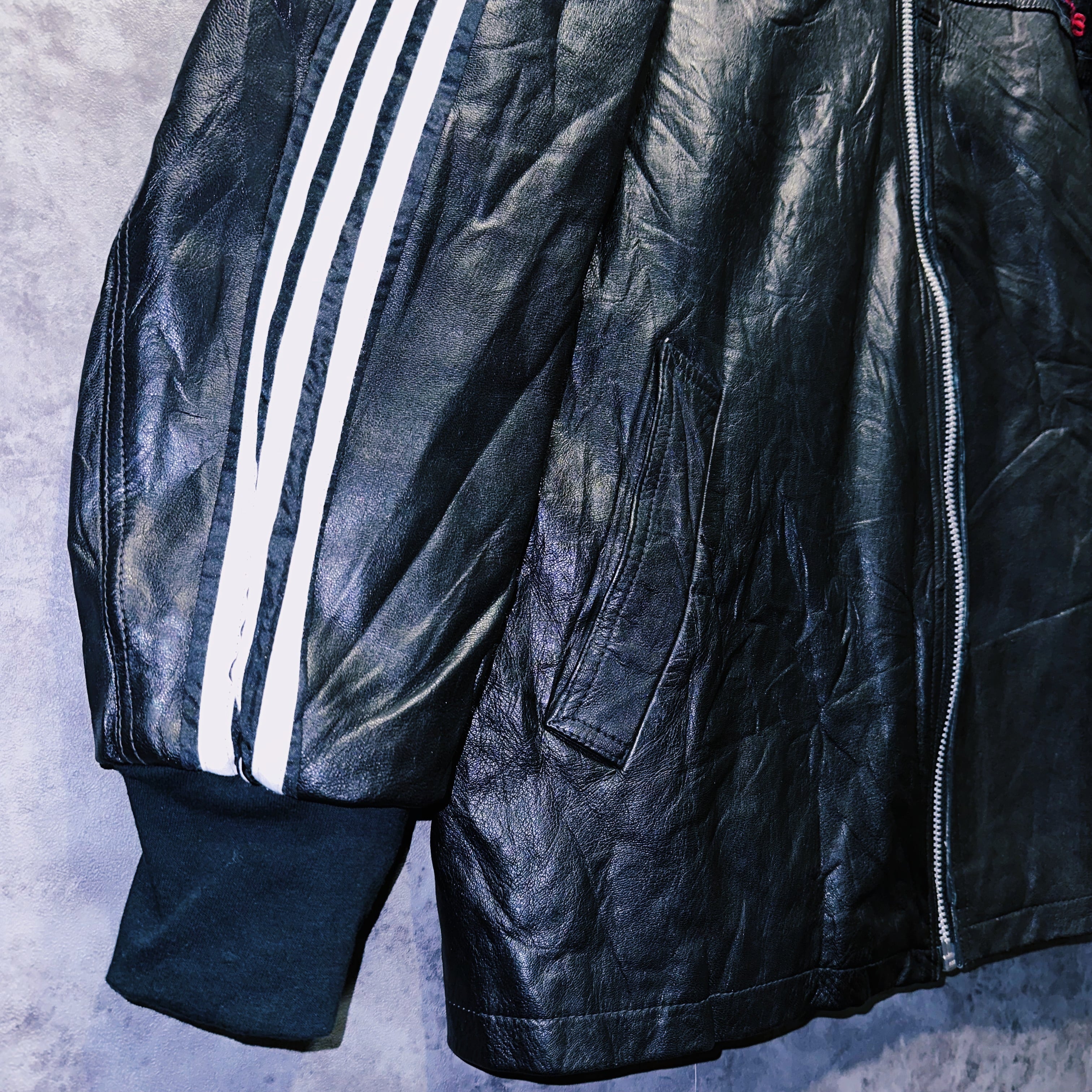 ハリがありモッチモチのレザージャケットにシティーポップでハイストリートなスリーストライプの上質なトラックテキスタイルを"融合"させてハイモード×ハイストリートなアイテムに。