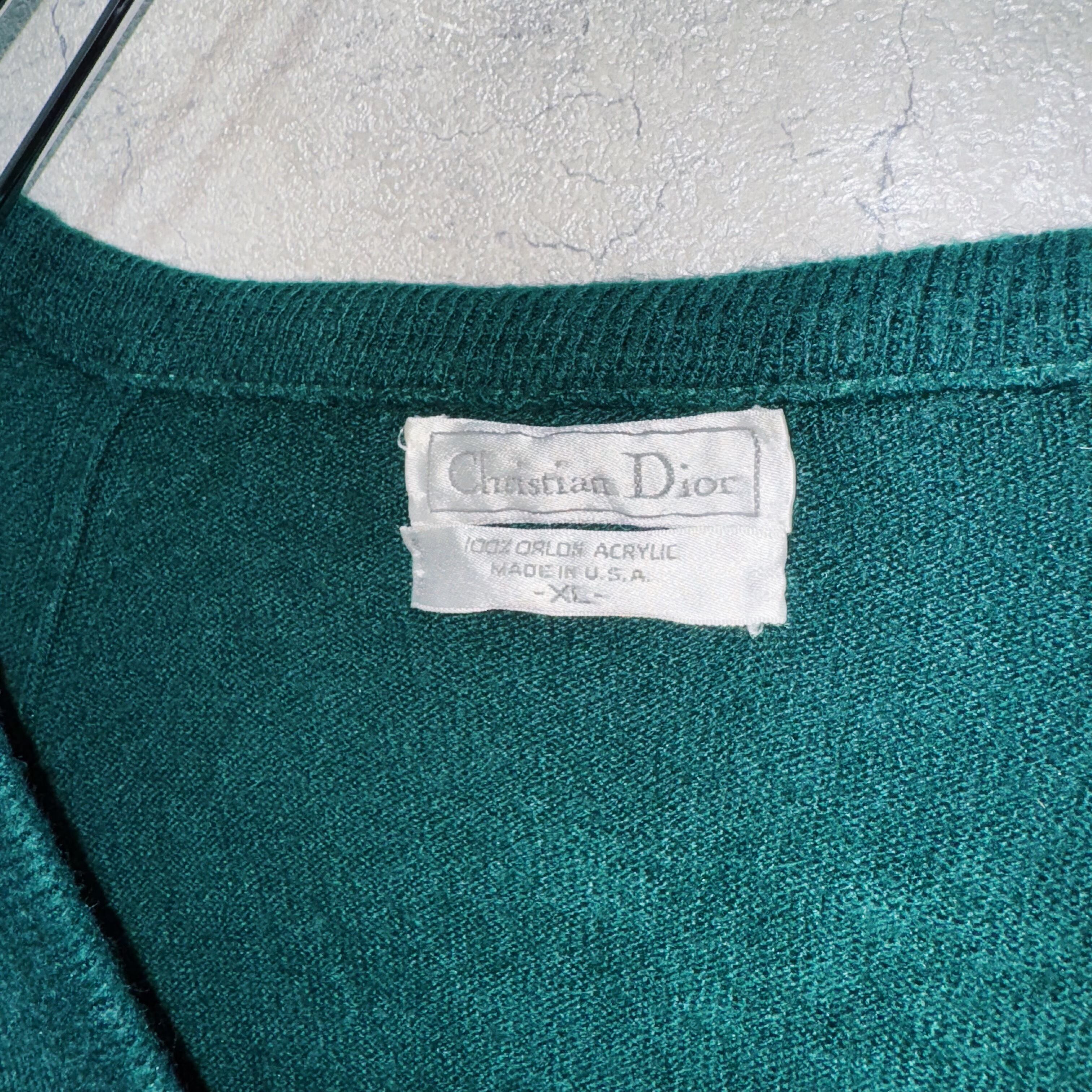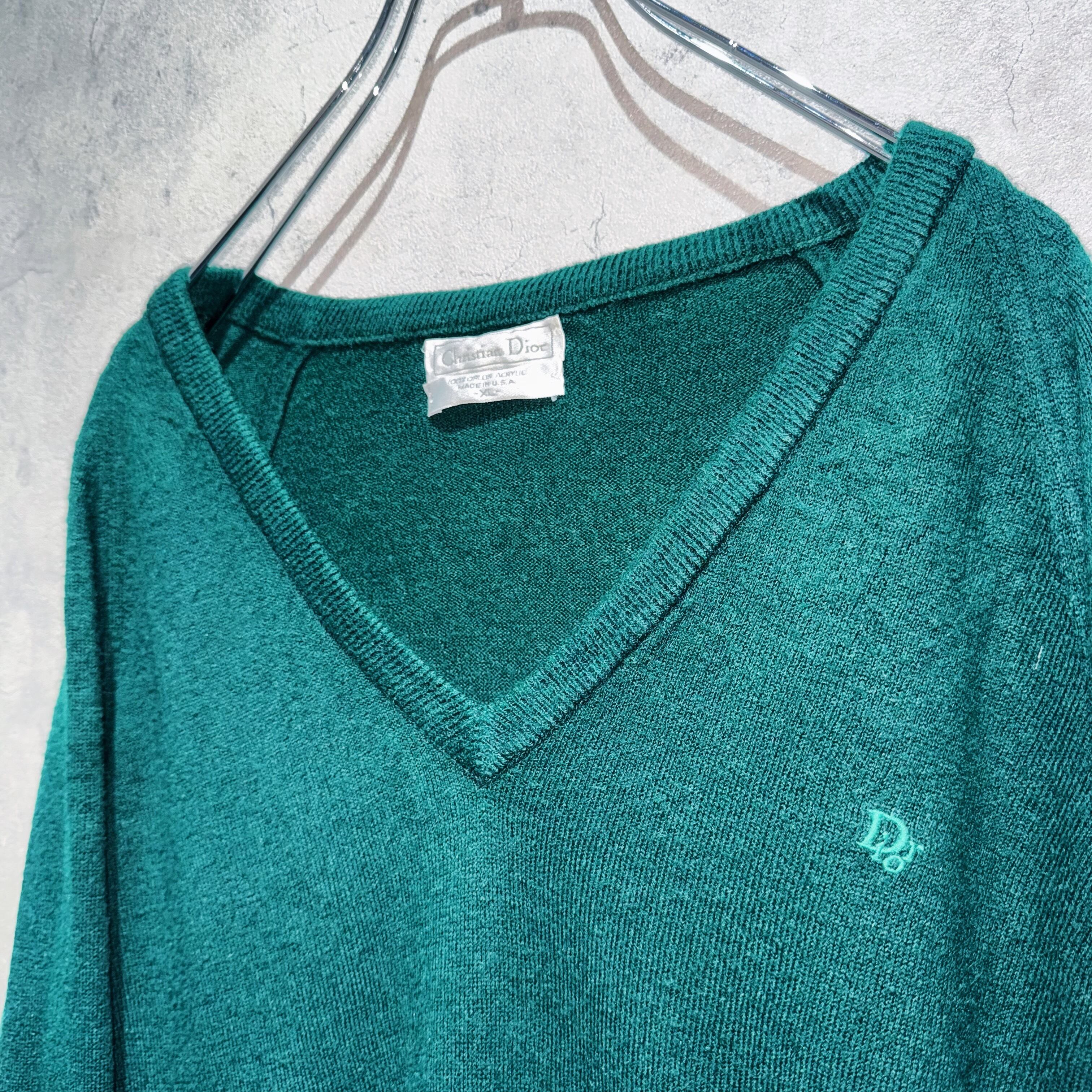 80's"Christian Dior"brand logo embroidery V-neck knit