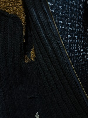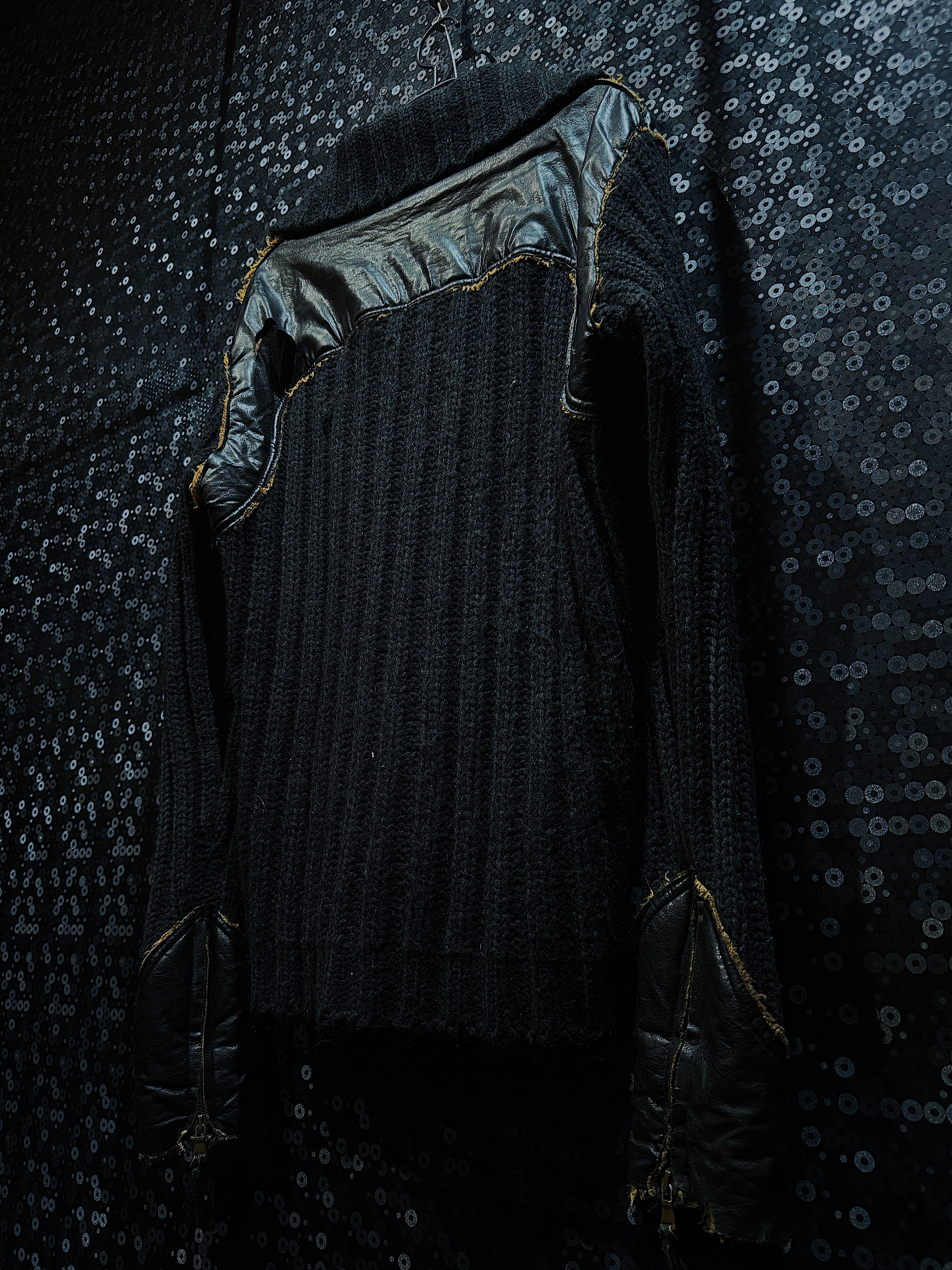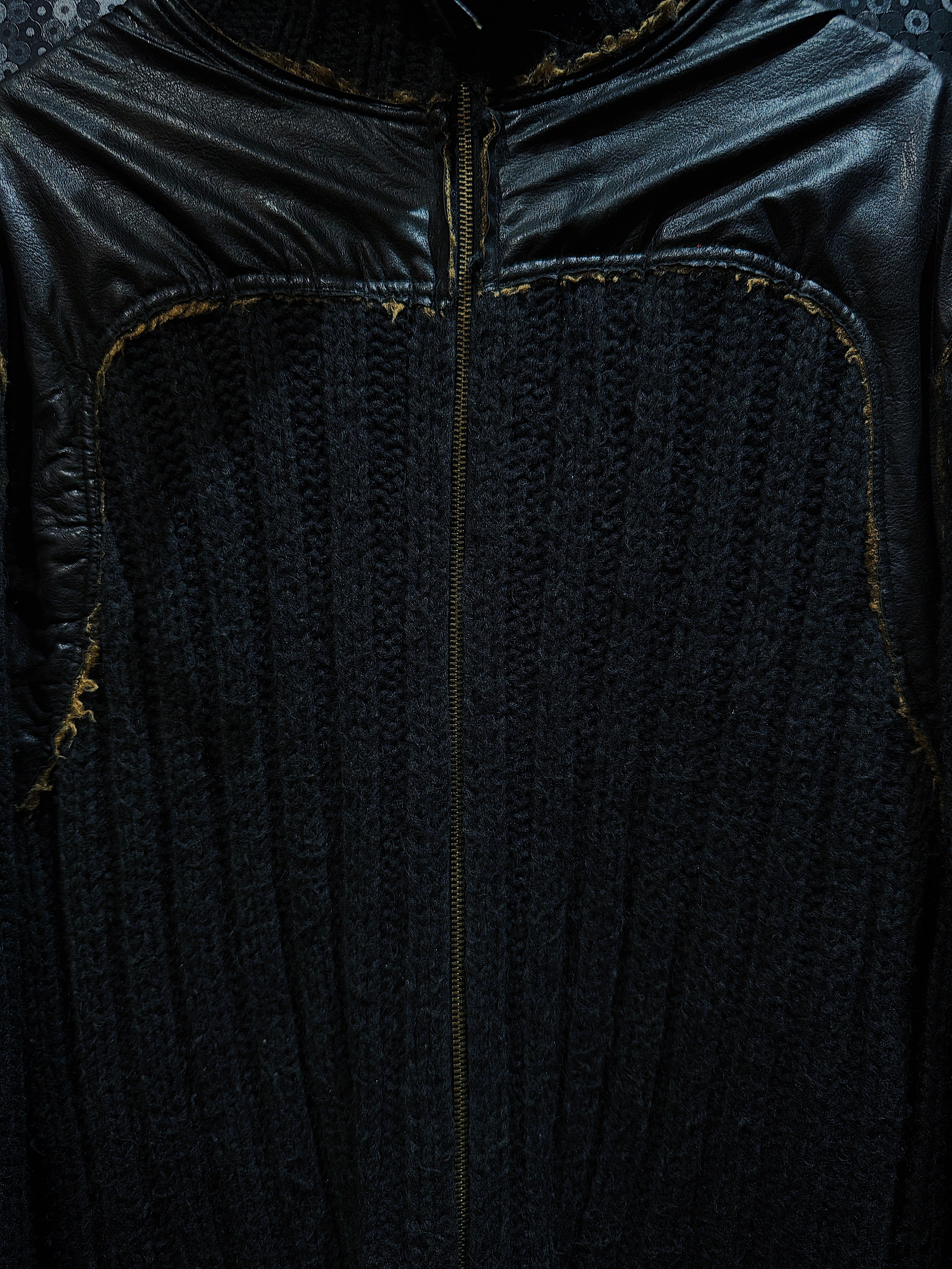 "ZARA vintage"Ribbed Knit × Faux Leather Jacket