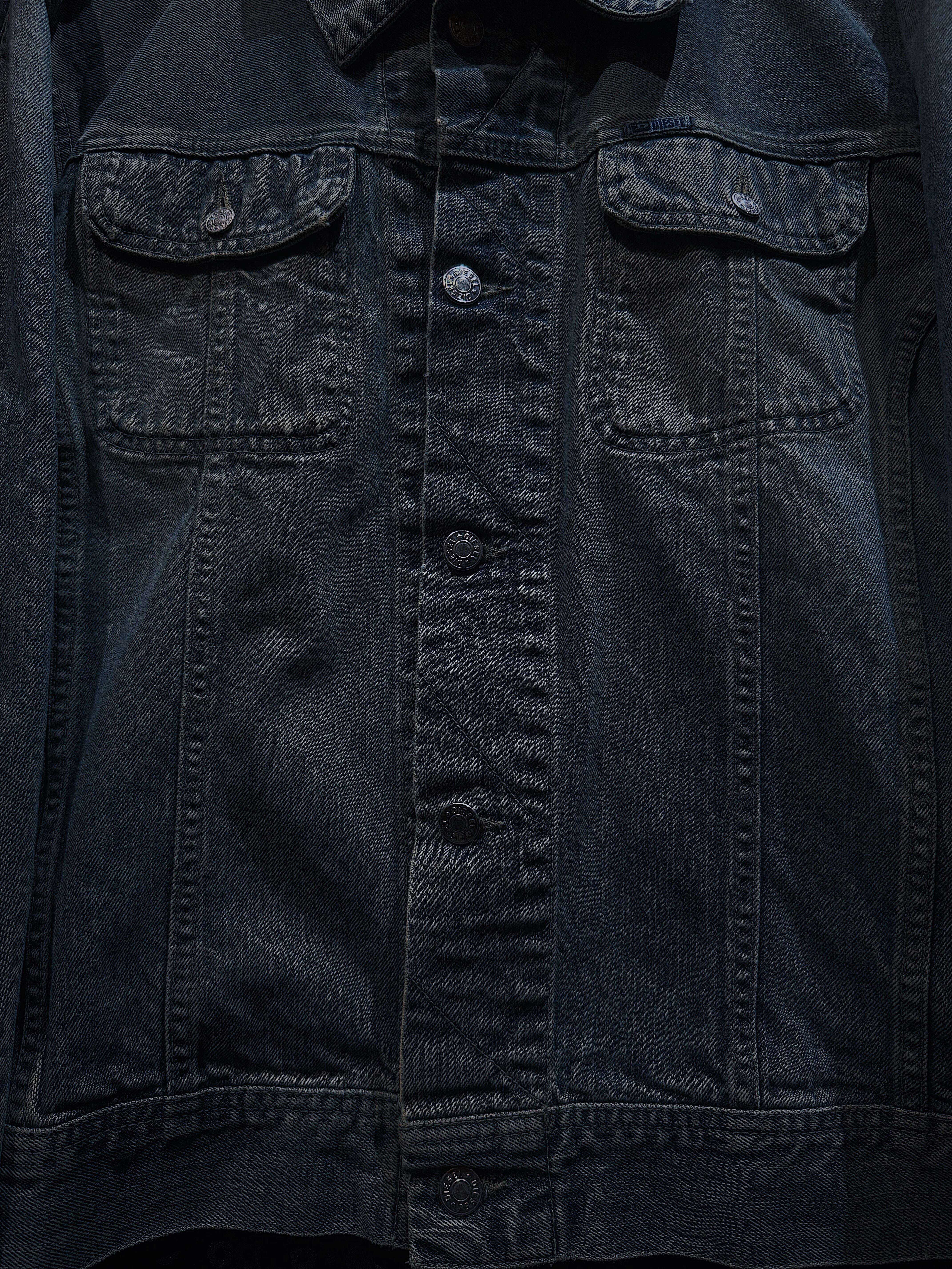 ディーゼル(DIESEL)は、1978年にイタリアで設立されたプレミアムカジュアルブランドで、独創的なデニムスタイルとクオリティの高いアイテムで世界的に知られています。このジャケットはおそらく1990年代後半から2000年代初頭のヴィンテージアイテムで、その時代特有のミニマルなデザインが感じられます。