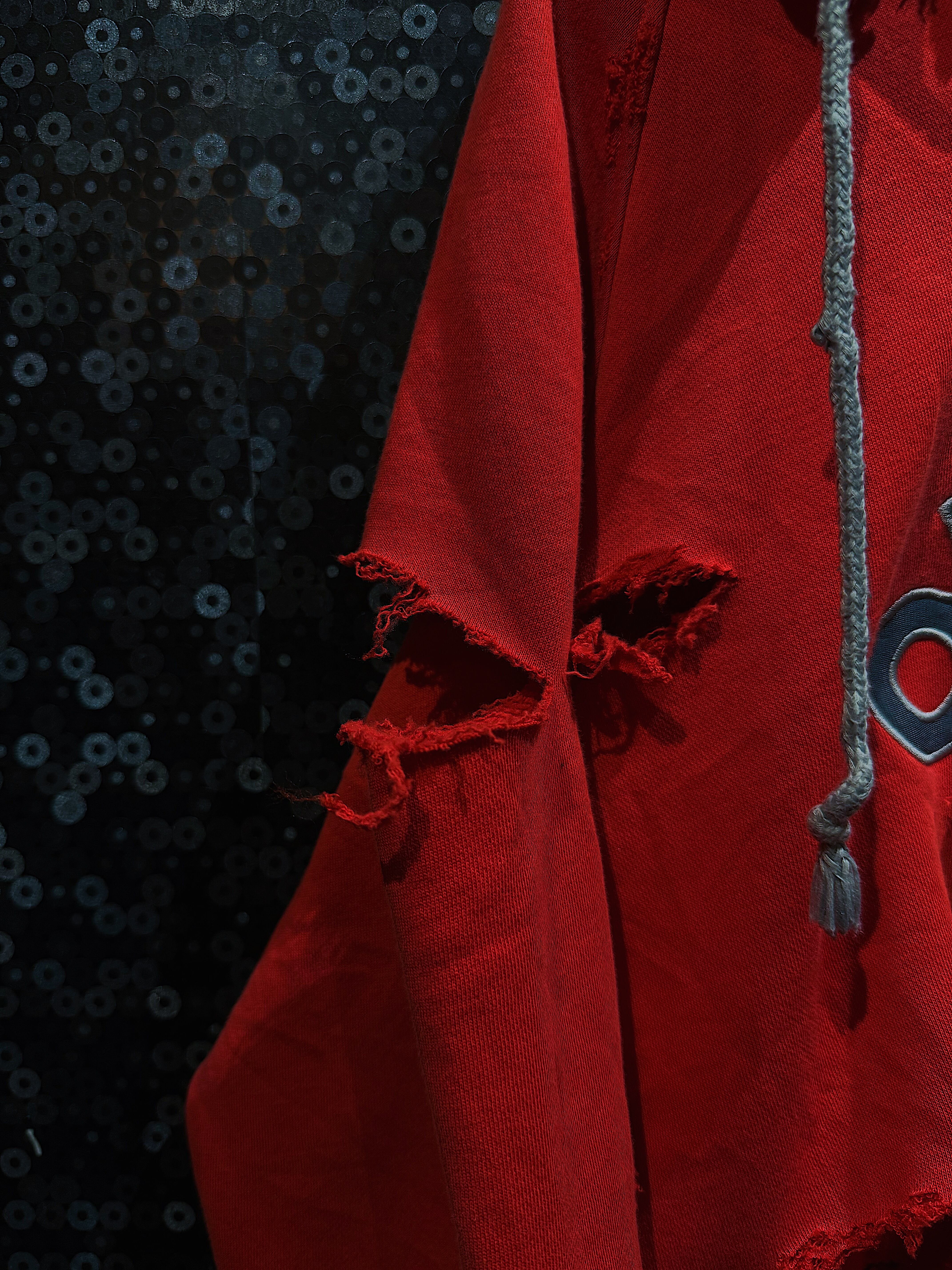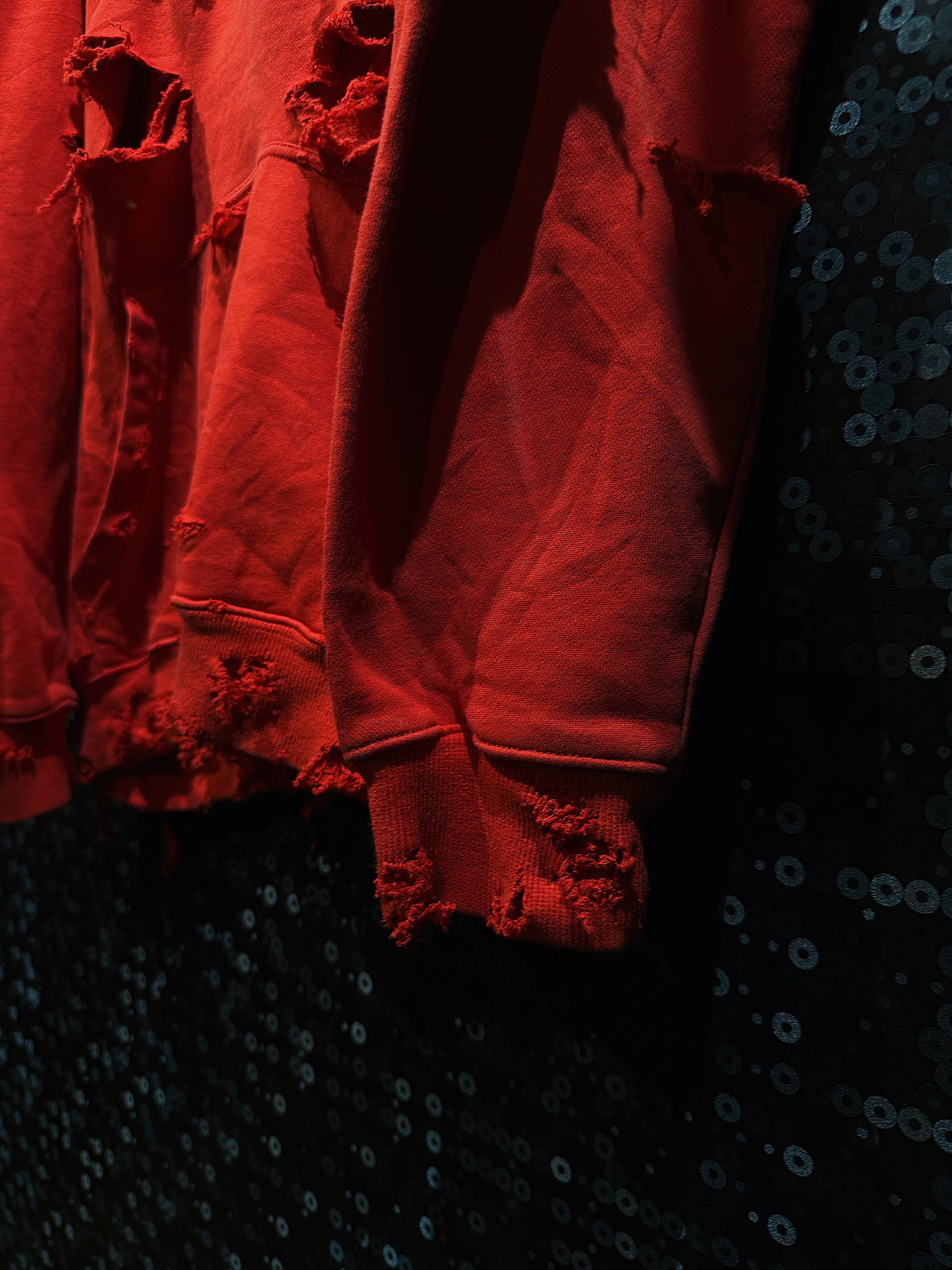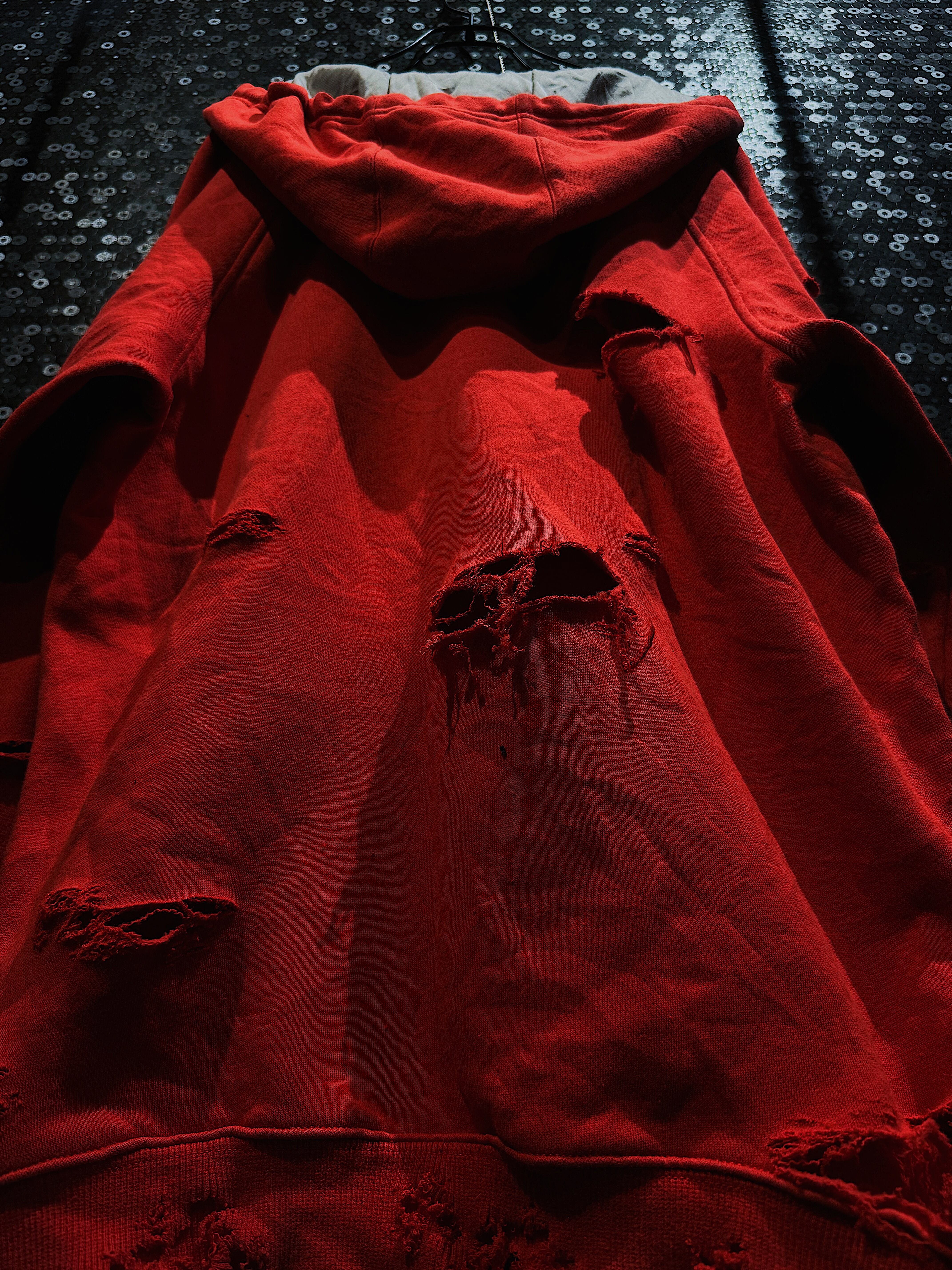 さらに、このパーカーのダメージ加工は、近年のボロスタイルやリメイクファッションのトレンドと見事にマッチしています。着用するだけで個性的な雰囲気を演出できるアイテムとして、ヴィンテージ市場でも高い人気を誇っています。