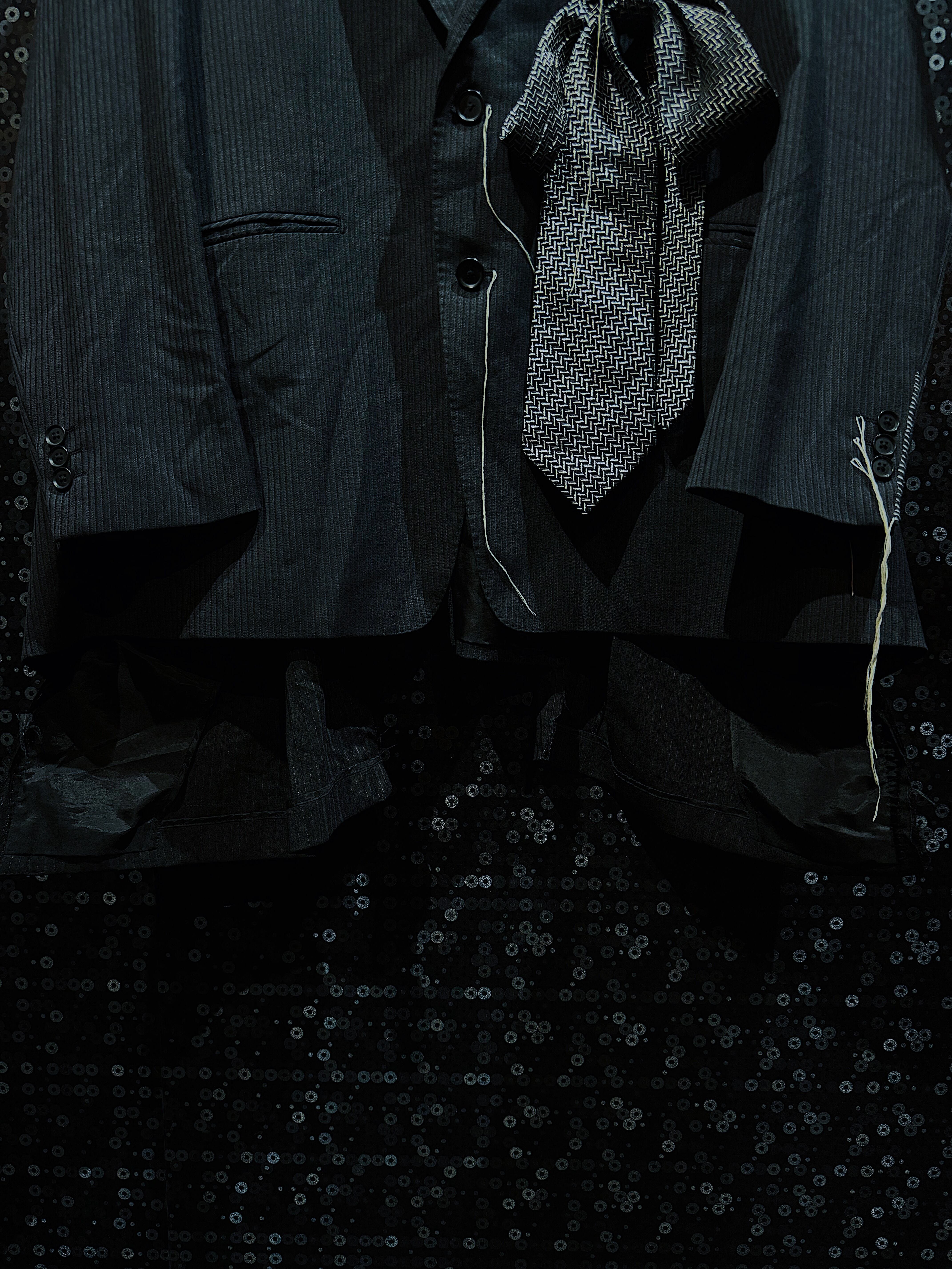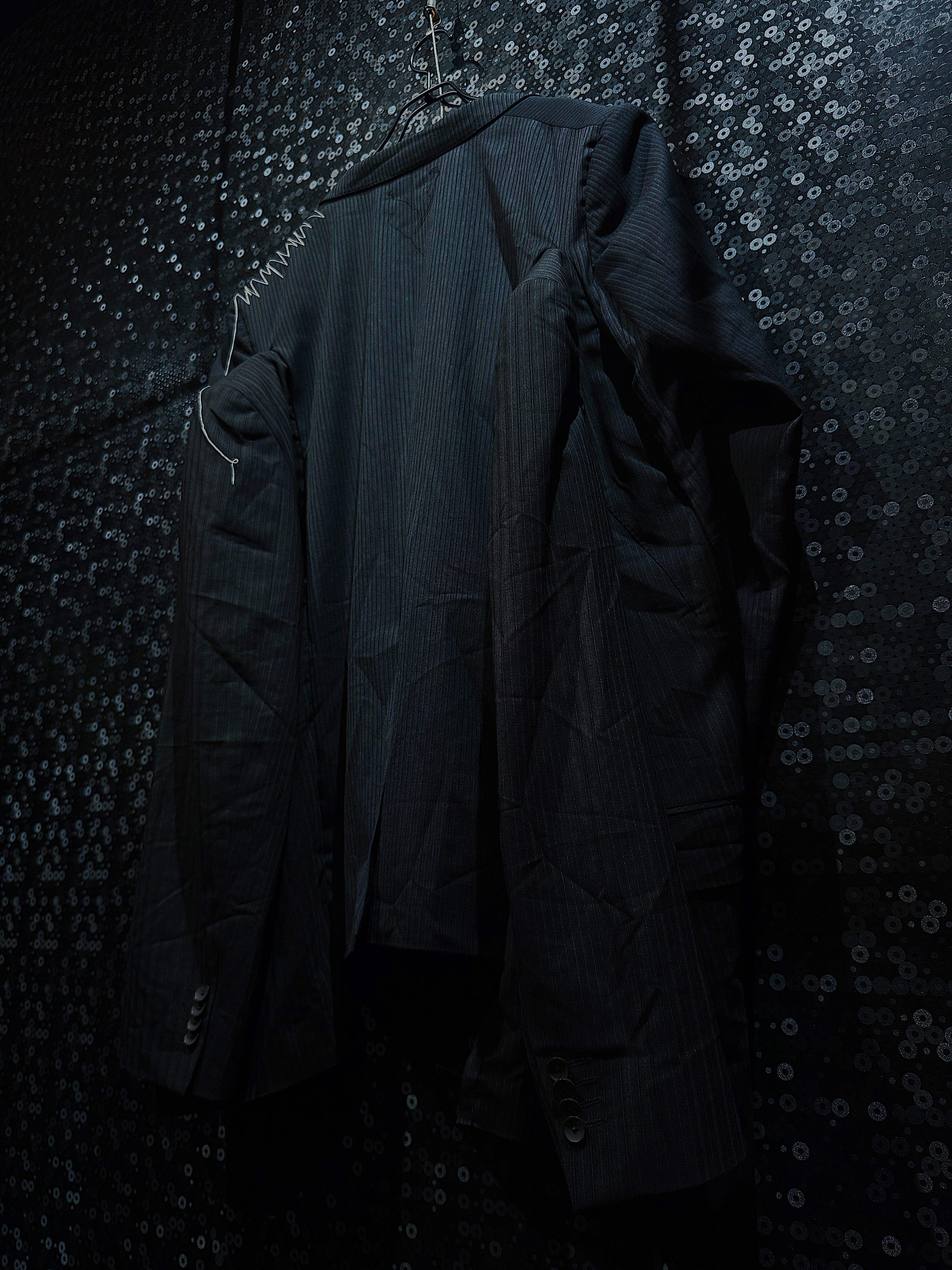 まるで“4本腕の人間専用”かのようなデザインが施されており、ファッションの枠を超えた遊び心が感じられるユニークな一着です。まじめなフォーマルウェアの概念を覆し、ストリートやアヴァンギャルドなスタイルにもマッチするデザインとなっています。