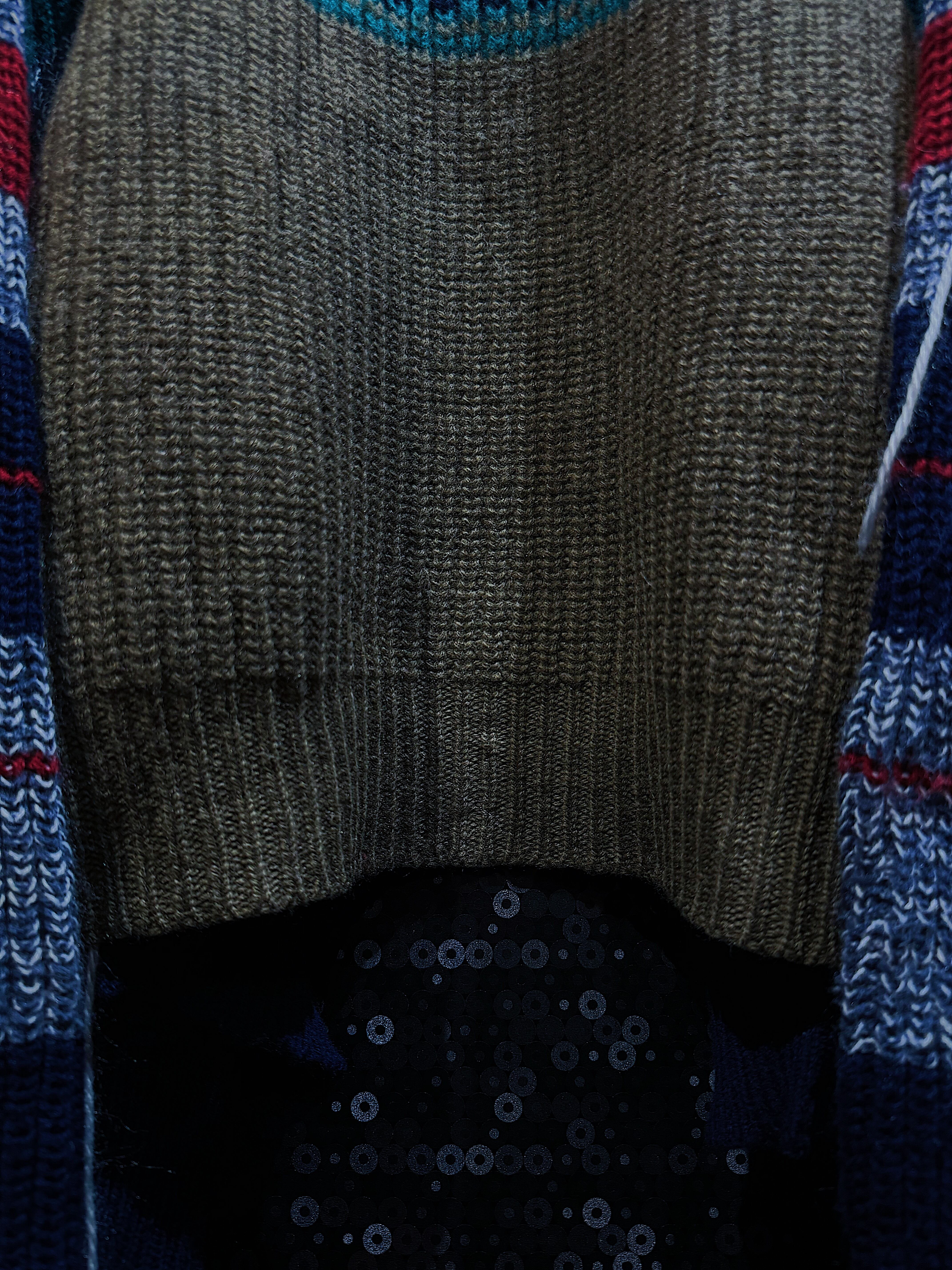 こちらの「再倖築 Vintage Multicolored Docking Stitch Knit」は、ユニークで奇抜なデザインが特徴のリメイクニットです。