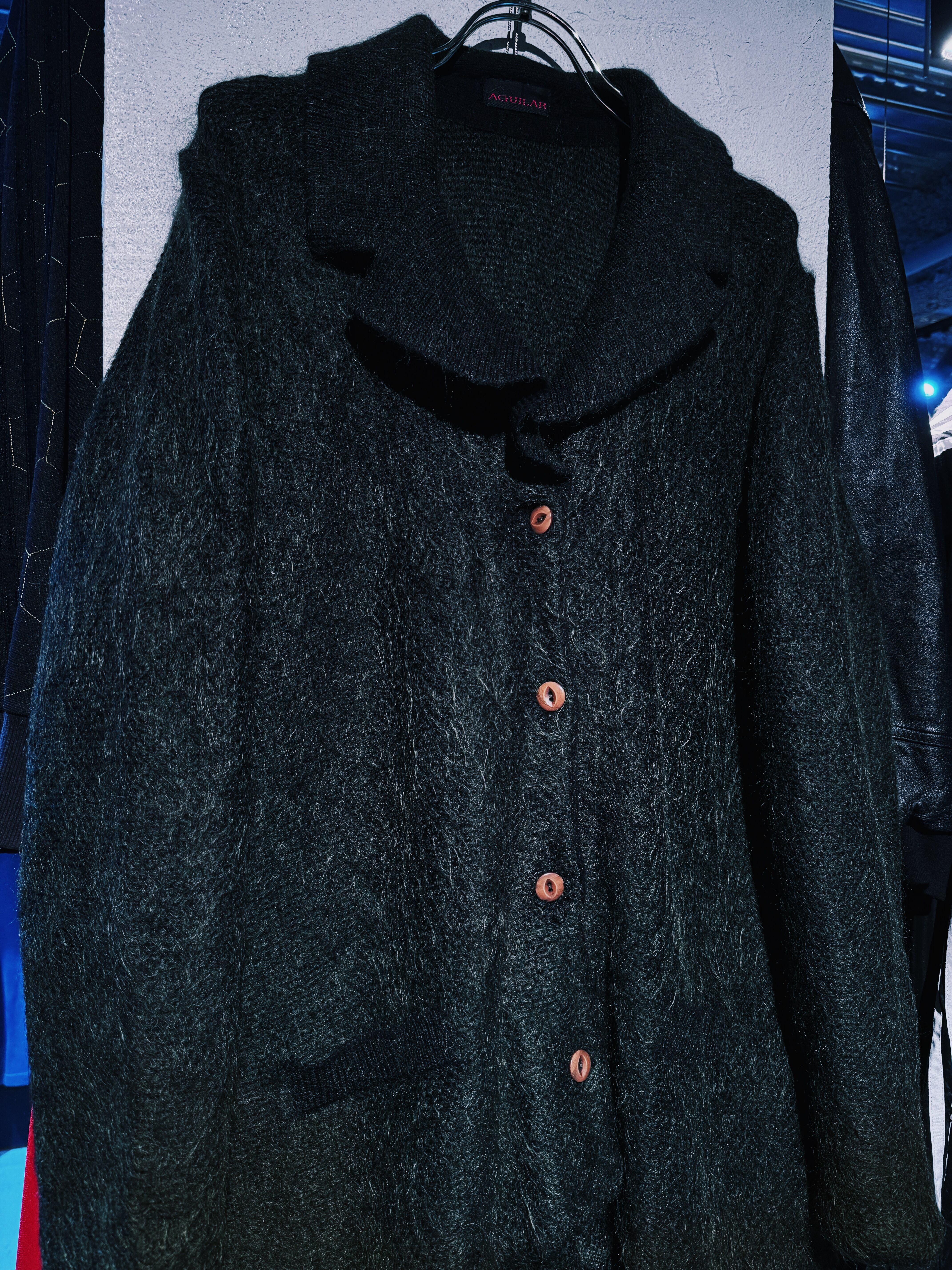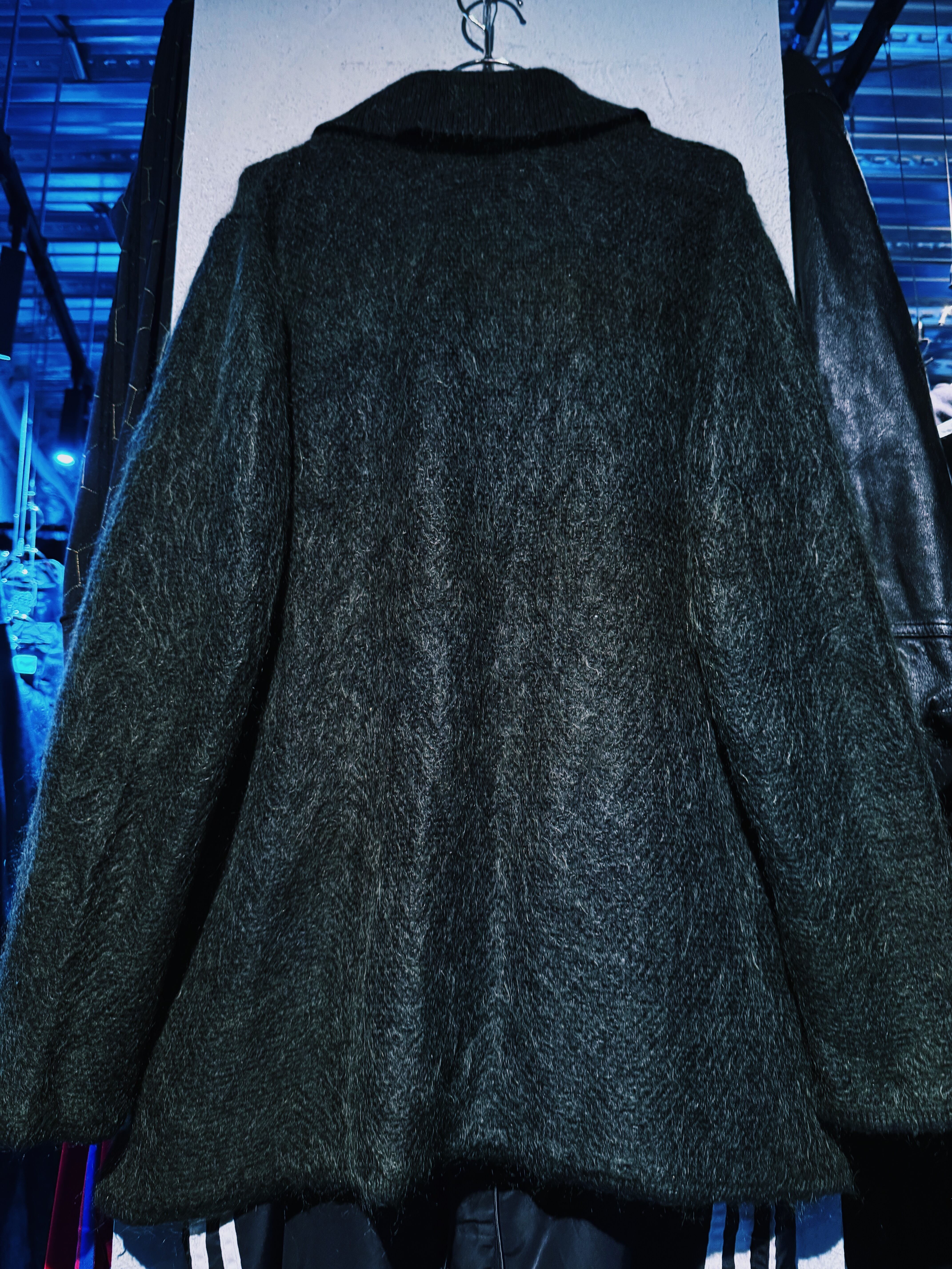 ヴィンテージダークグリーンカラーモヘアシャツカーディガン