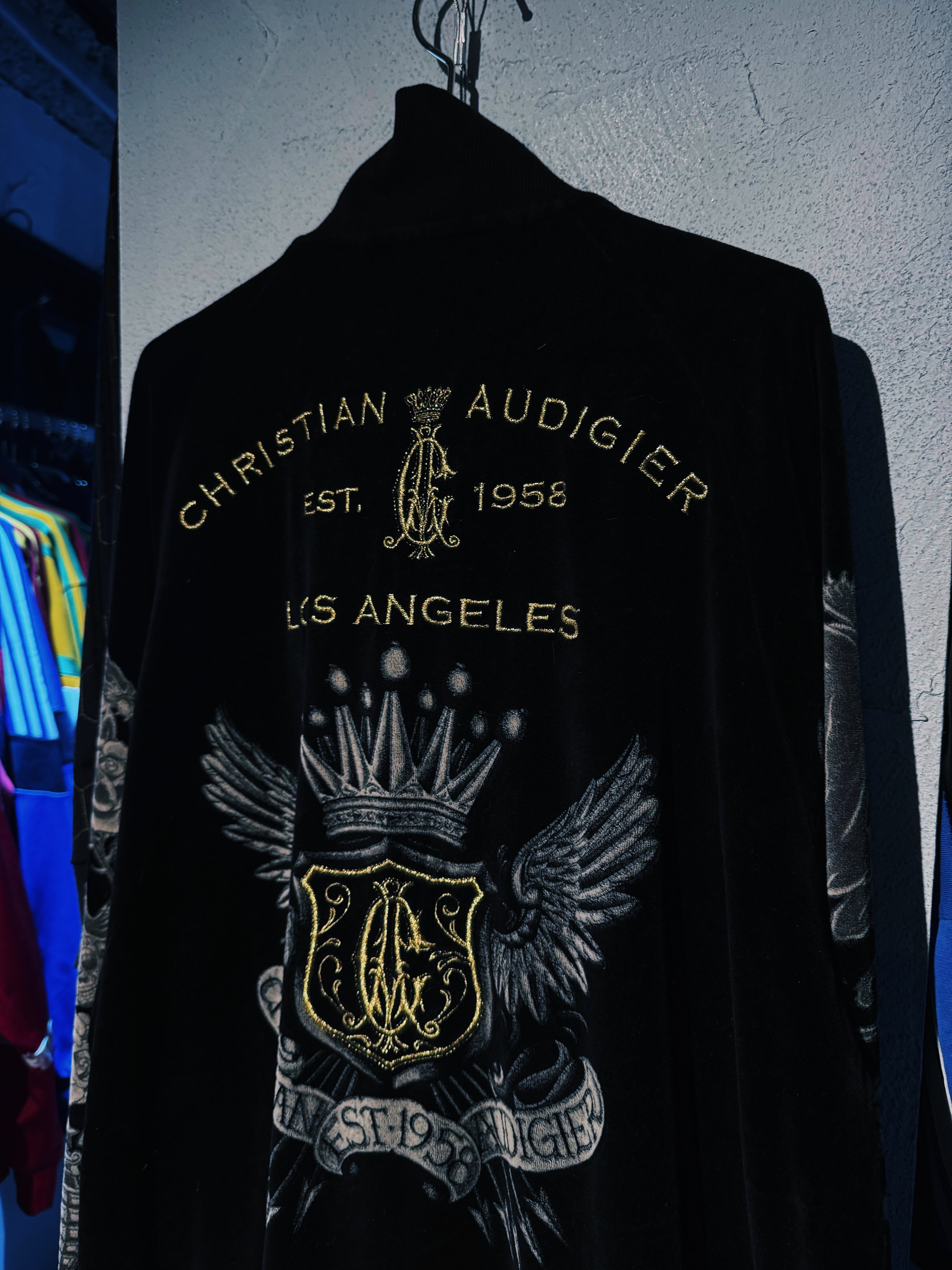 【D4C】90's vintage "Christian Audigier" velour fabric gorgeous design track jacket