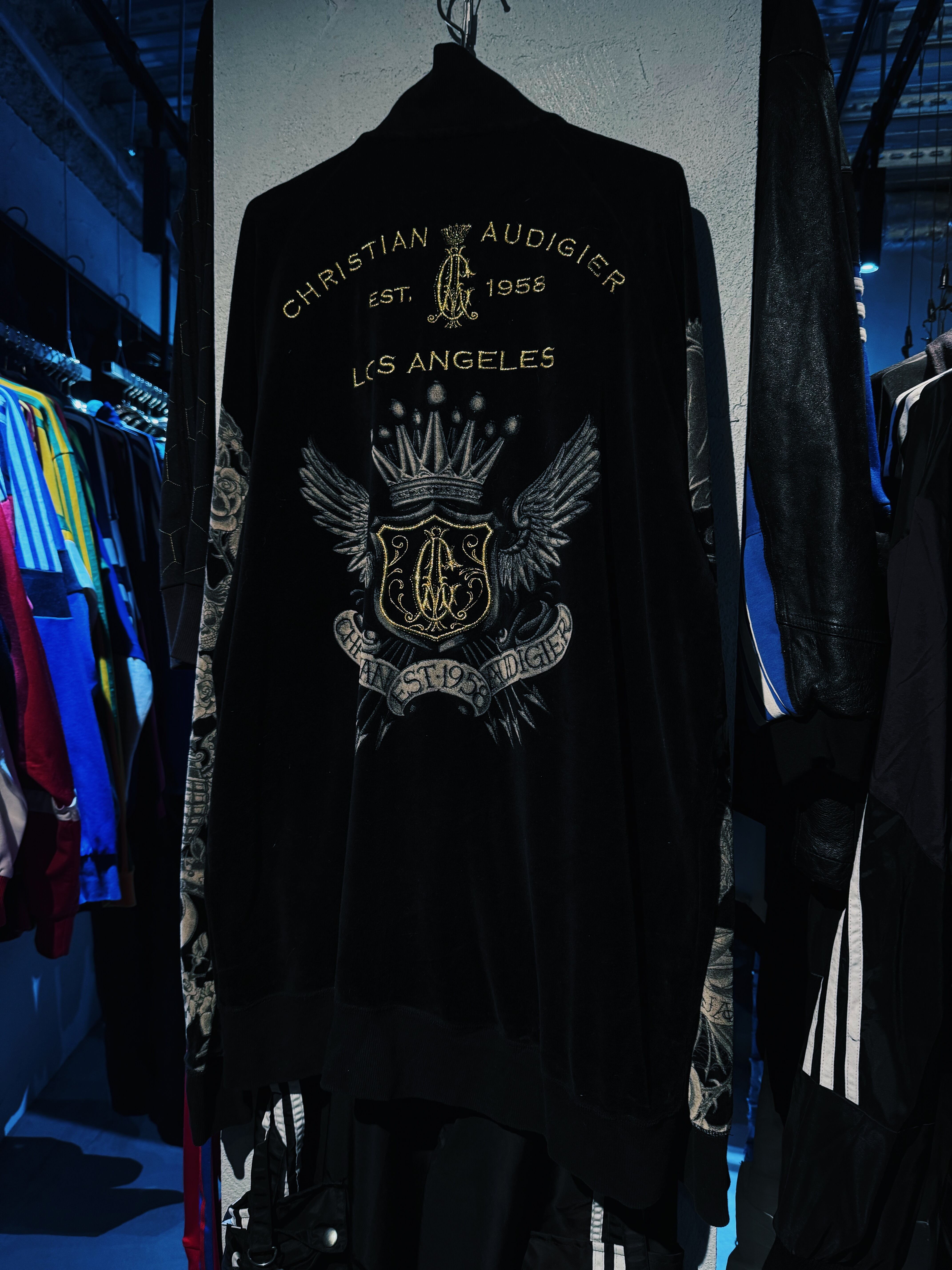90年代ヴィンテージ"Christian Audigier" ベロアファブリックゴージャスデザイントラックジャケット