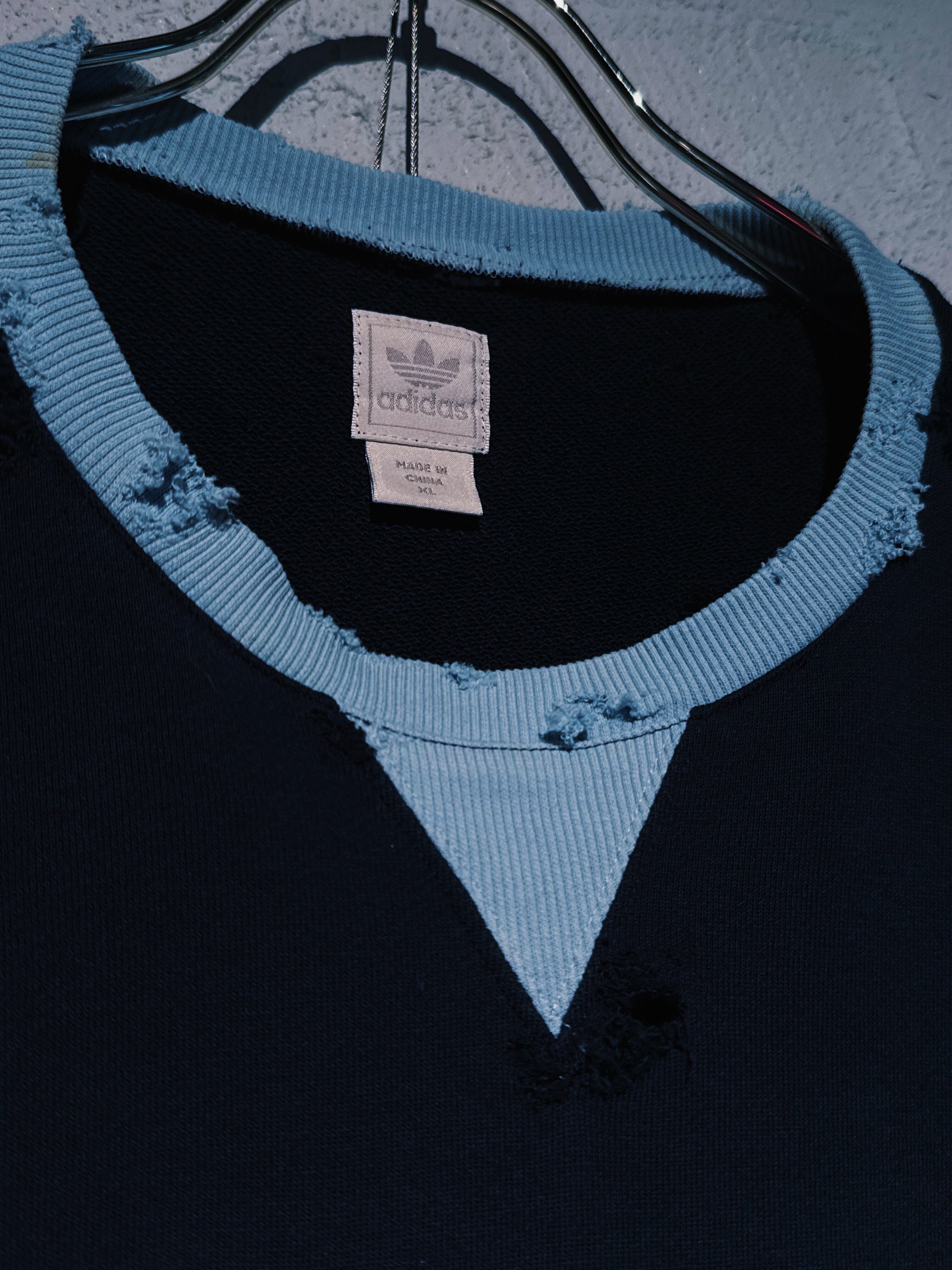 【D4C】vintage "ADIDAS" trefoil logo design switching color boro custom sweat pullover