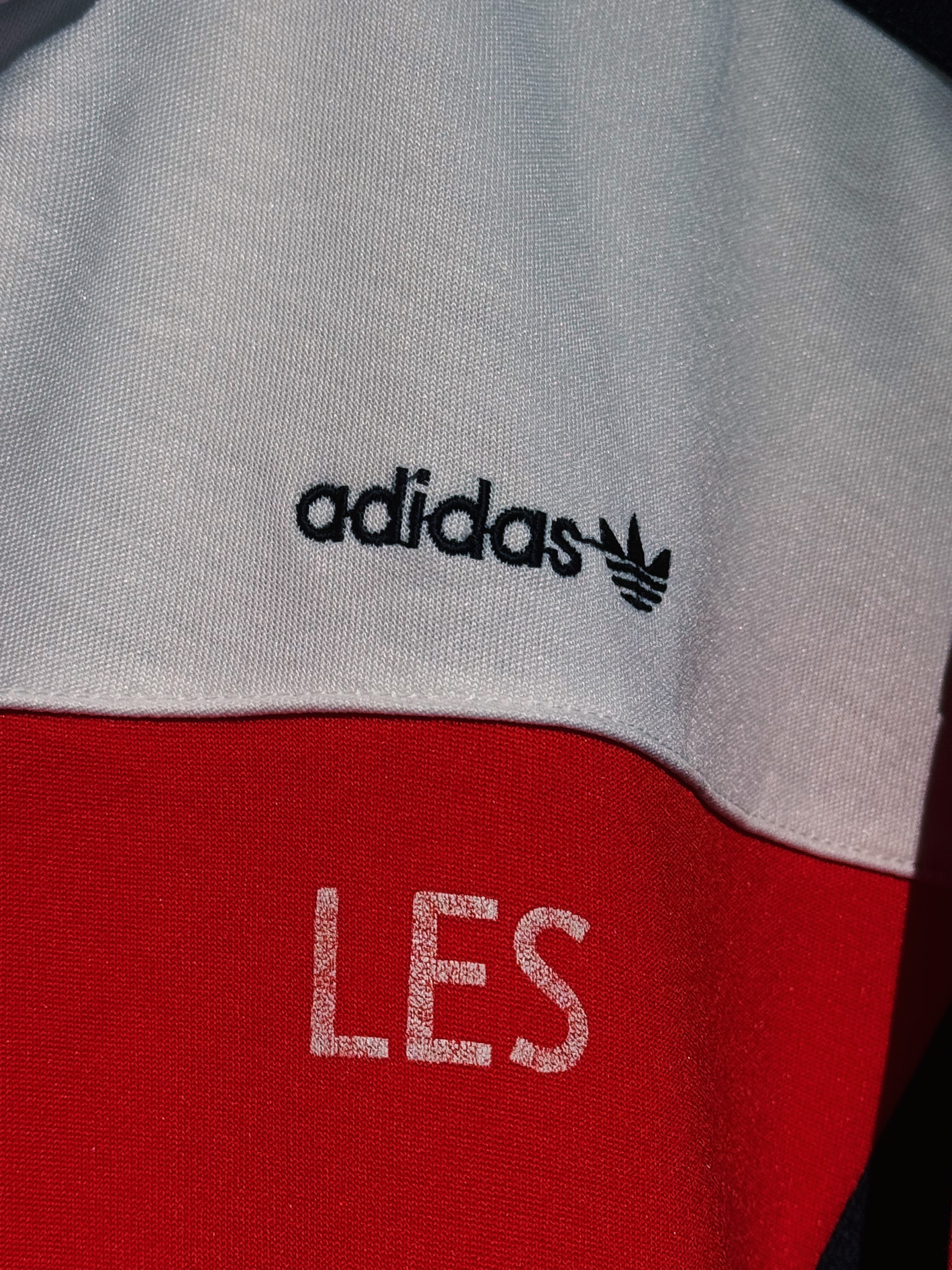 肩からadidasの代名詞である3ストライプが施されているが途中で切り替わっており、その異質なデザインが他に類を見ないモノへと。