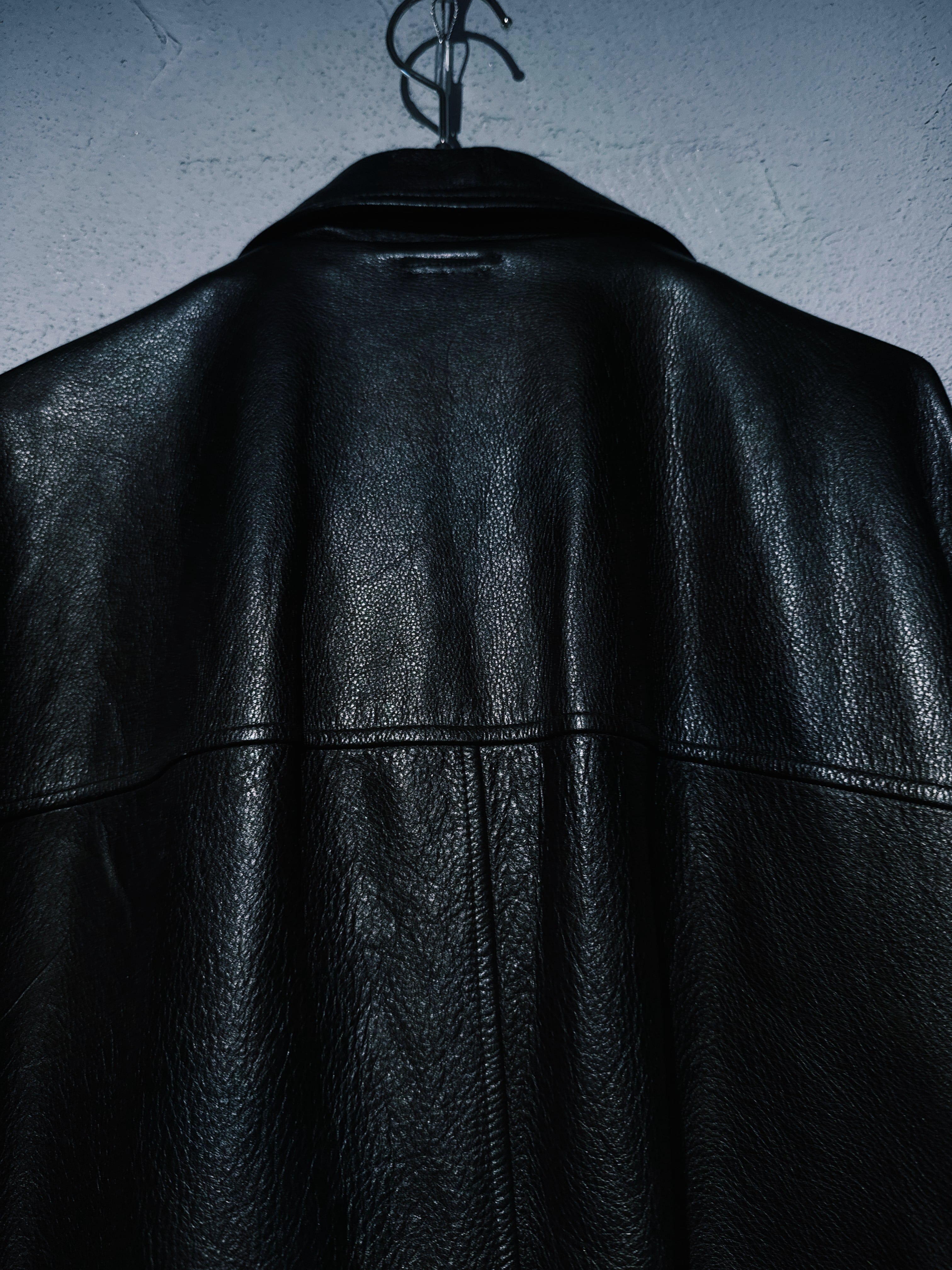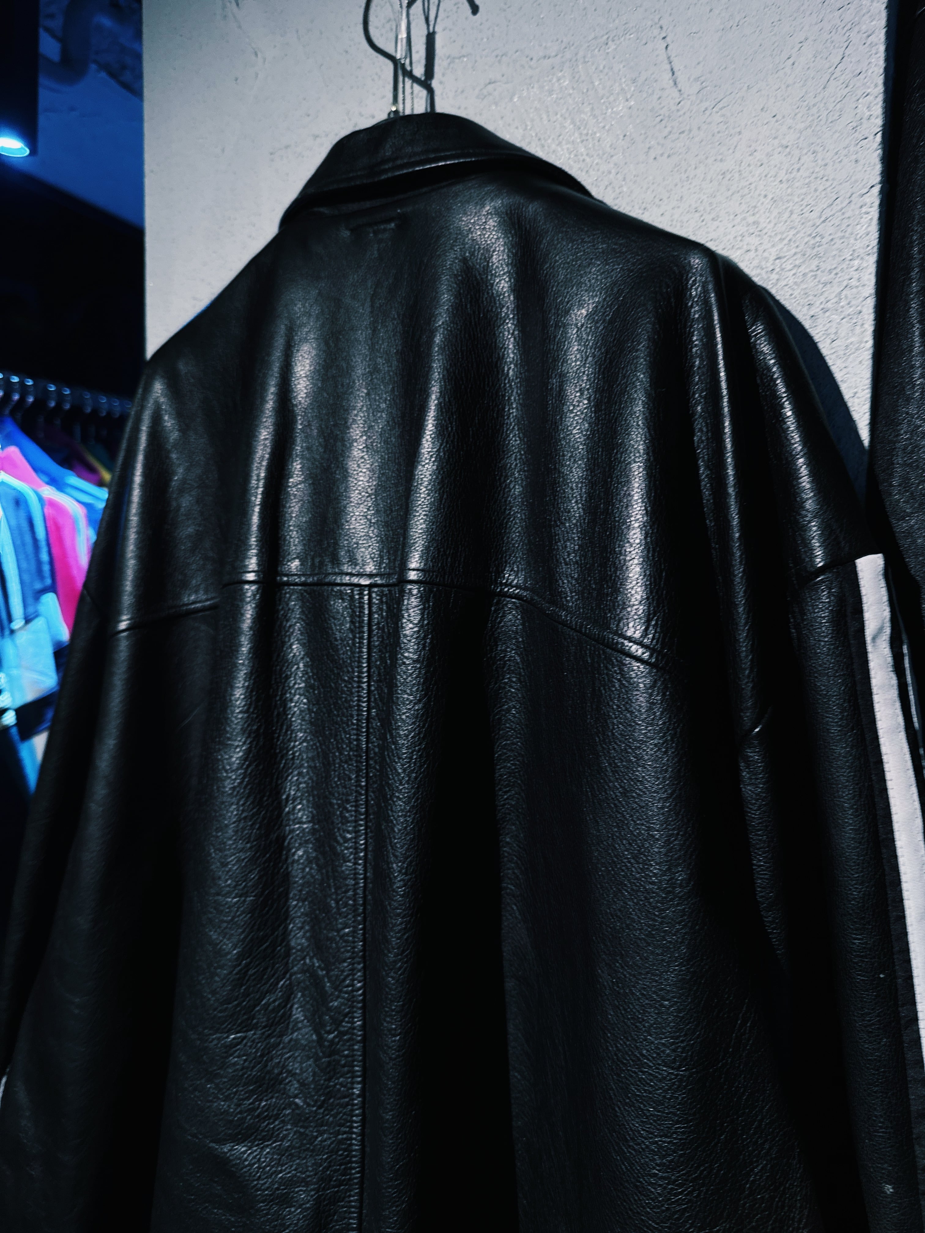 オールブラックで合わせてもよし、ルーズなシルエット感なので90'sポップスタイルなヴィンテージライクなファッションに落とし込んでだりロックな雰囲気をそのまま活かしクールなスタイルなんて最高にかっこいいこと間違いなしの全てのジャンルにもハマる事のできる史上最高のレザージャケット。