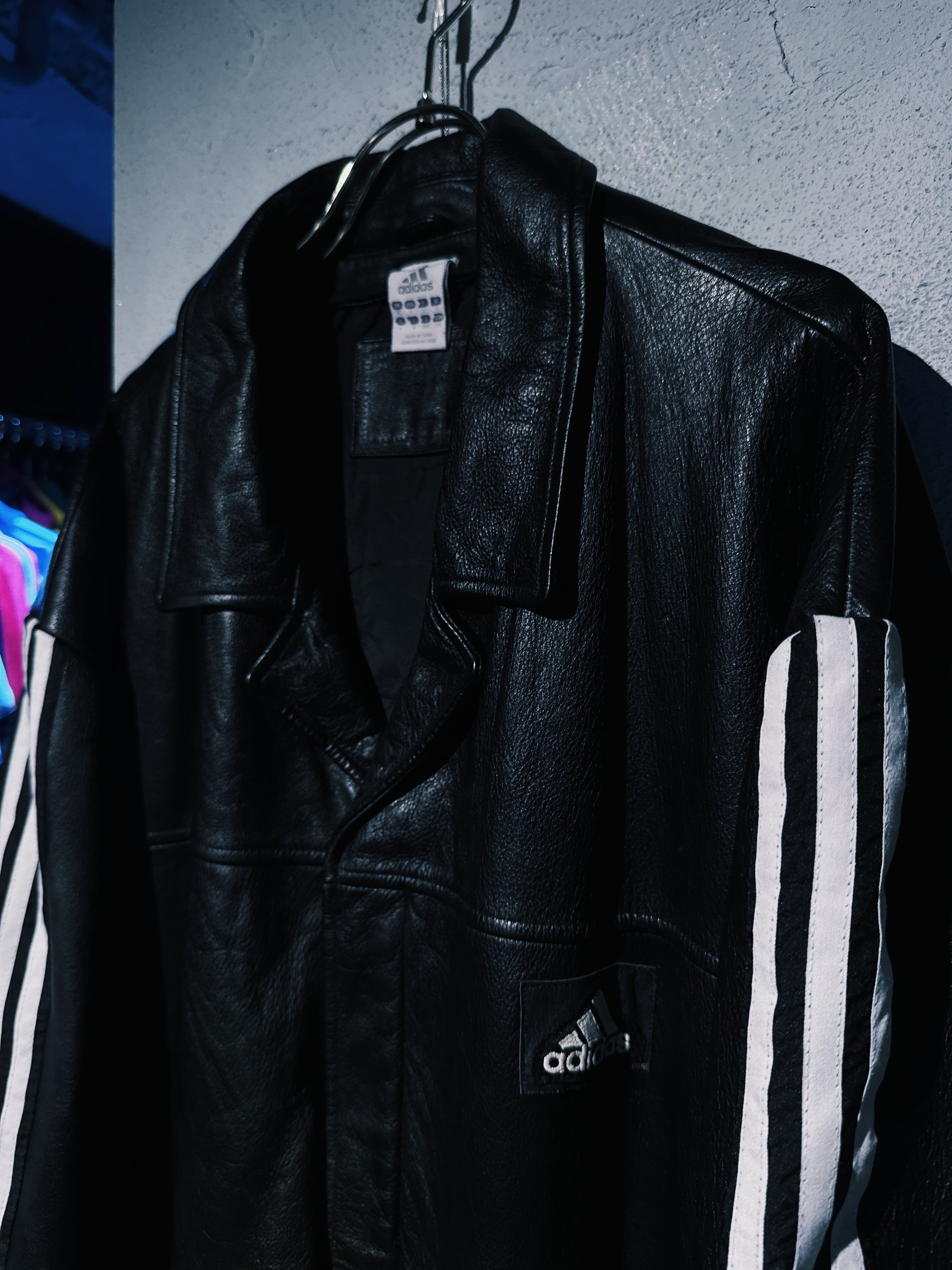 special "original re:make" three stripe design vintage leather coat three stripe edition