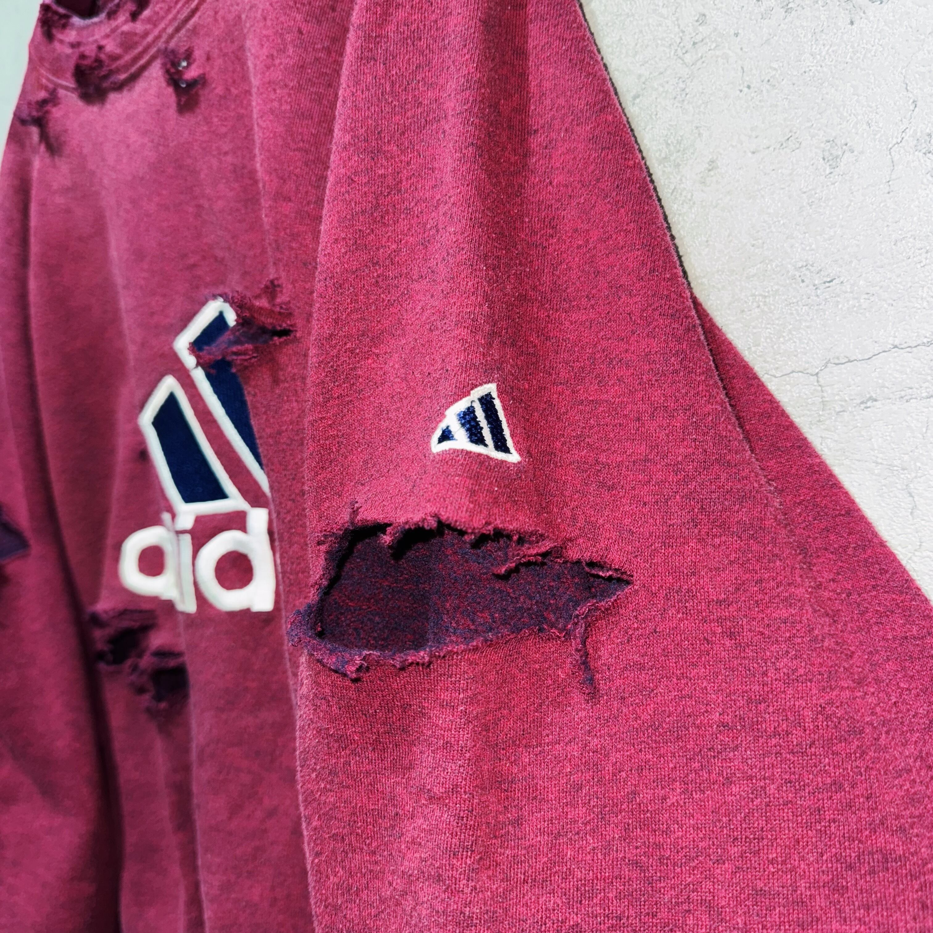 "ADIDAS"のボディを贅沢に採用したボロスウェット。デザイナーズブランドでもダメージアイテムが近年増えてきていますが、それに引けを取らない精密なダメージ技術は間違いなく一流。