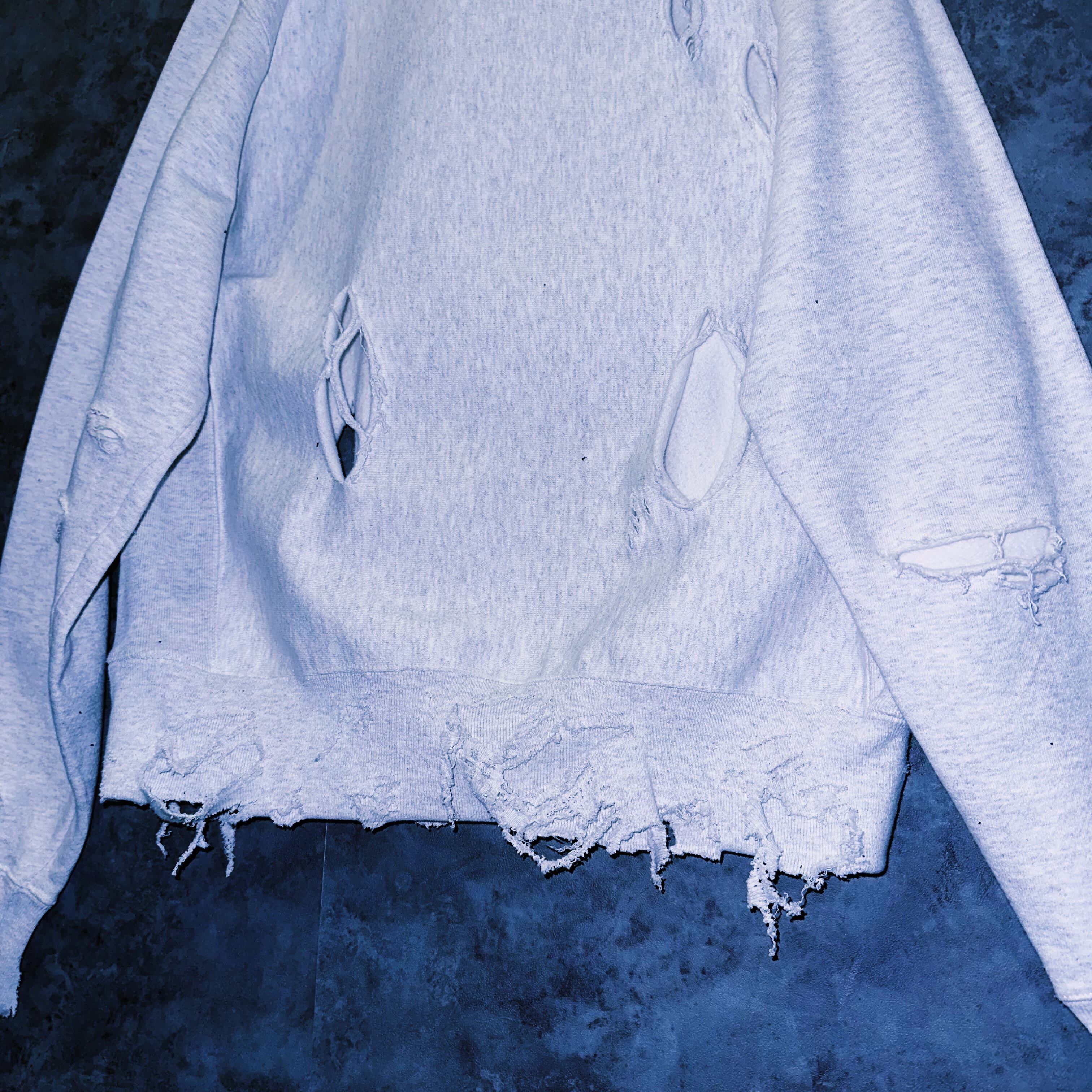 グランジ感のあるダメージ加工のボロカスタム。凄まじいダメージ具合には圧倒的存在を表していますね。インナーでも遊ぶこともでに、かなりファッションに大きな幅を与えてくれること間違いなしのハイクオリティーな1着。