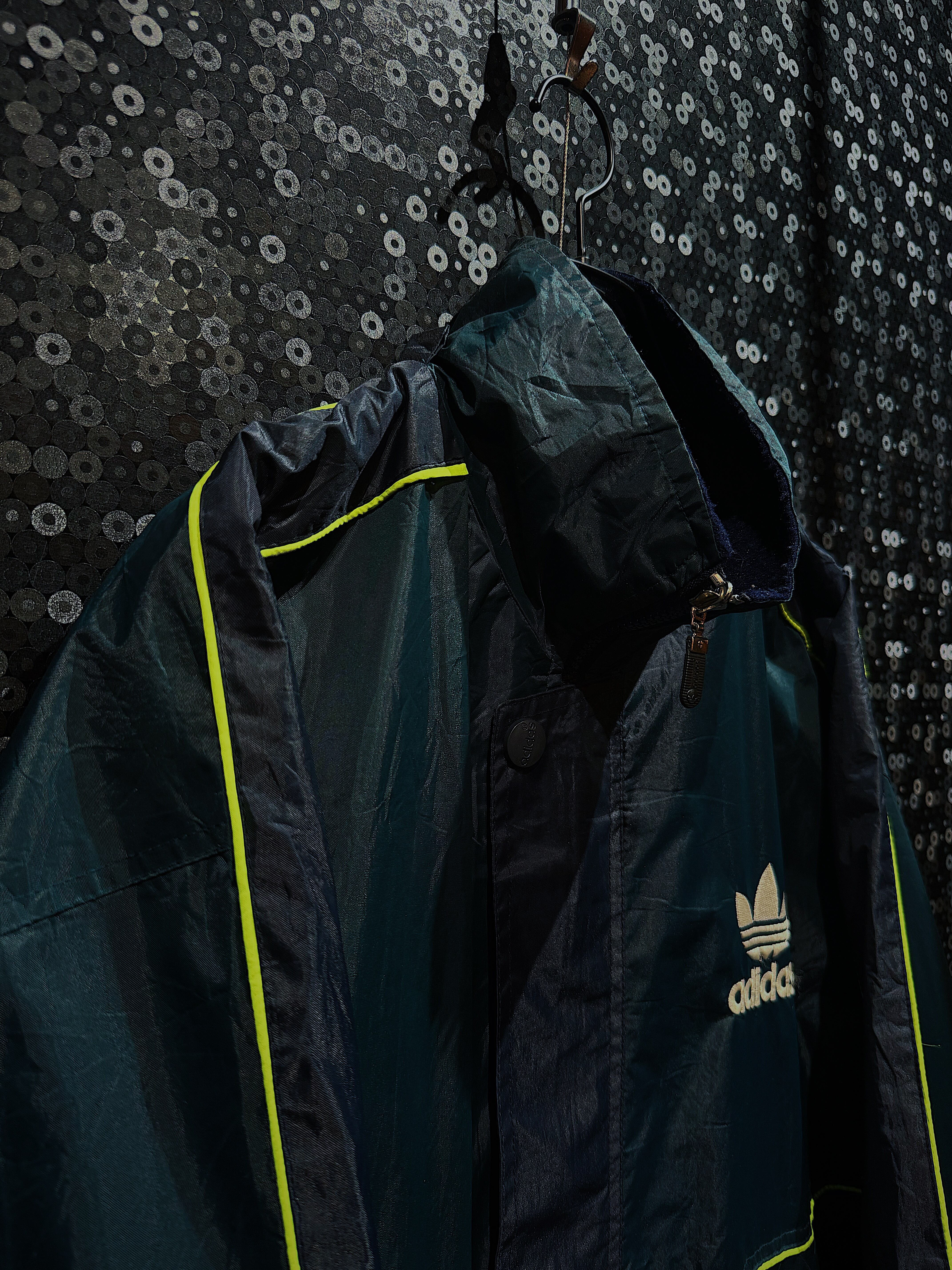 こちらはadidasのヴィンテージリバーシブルジャケット。表面は深みのあるダークグリーンとブラックを基調に、イエローのパイピングがアクセントとなったスポーティなデザイン。