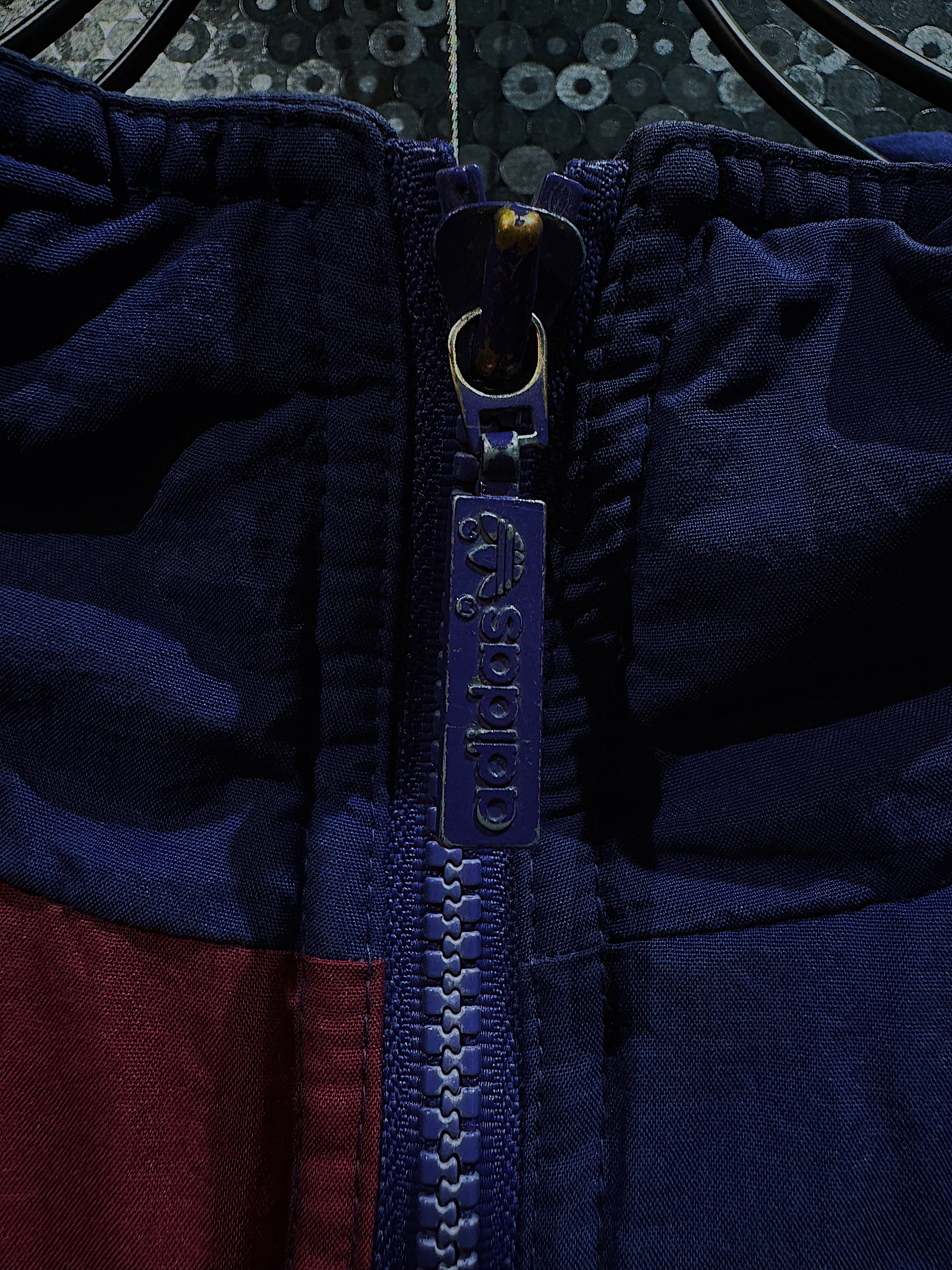 こちらはadidasのヴィンテージトラックジャケットで、アメリカ国旗を彷彿とさせる鮮やかなレッドとブルーのカラーリングが特徴的な一着です。通常のナイロンジャケットよりも厚手の素材感で、しっかりとした防寒性があり、秋冬シーズンにも活躍するアイテムです。