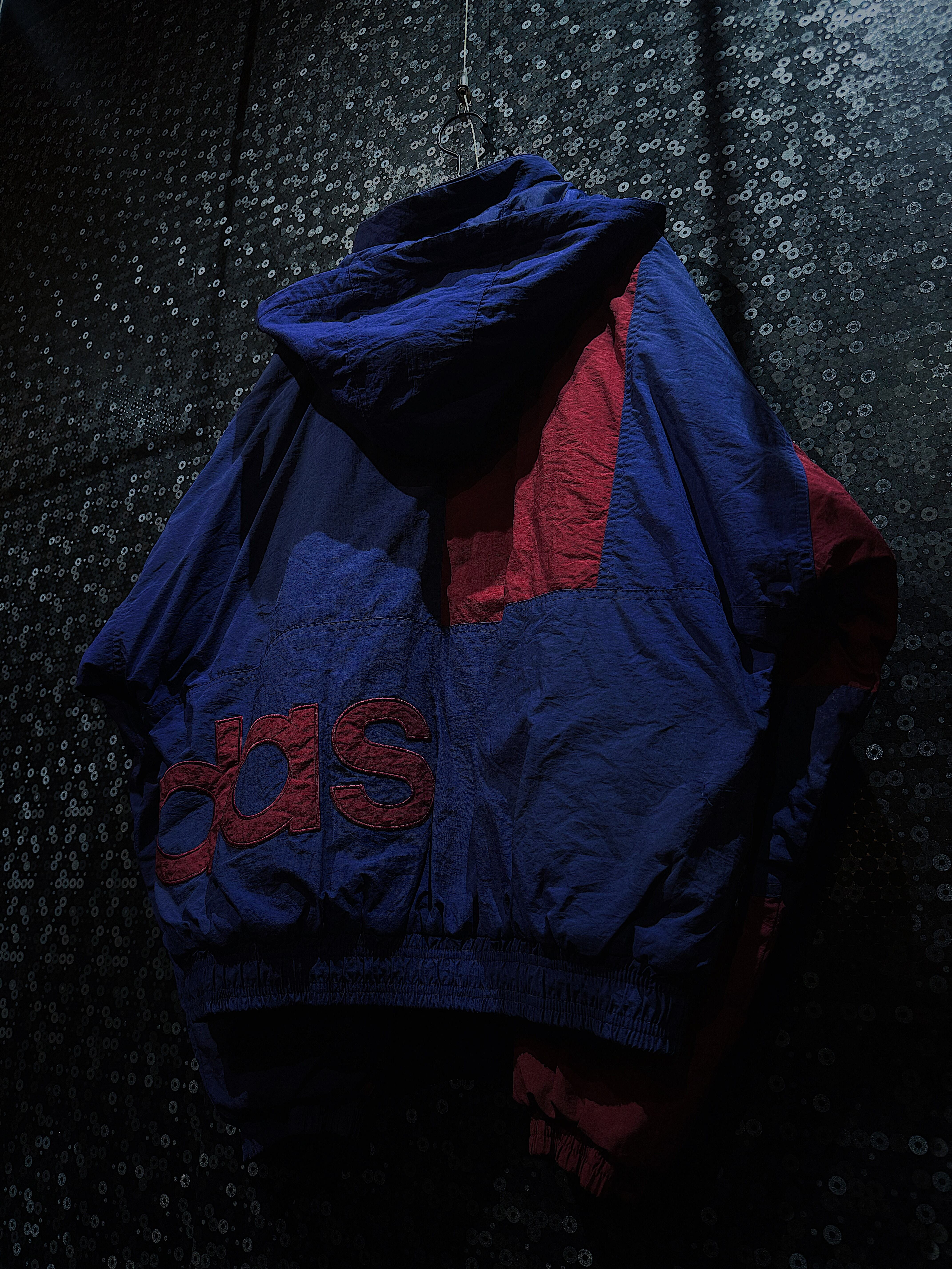"90's vintage" adidas original Blue and led color patternnylon jacket