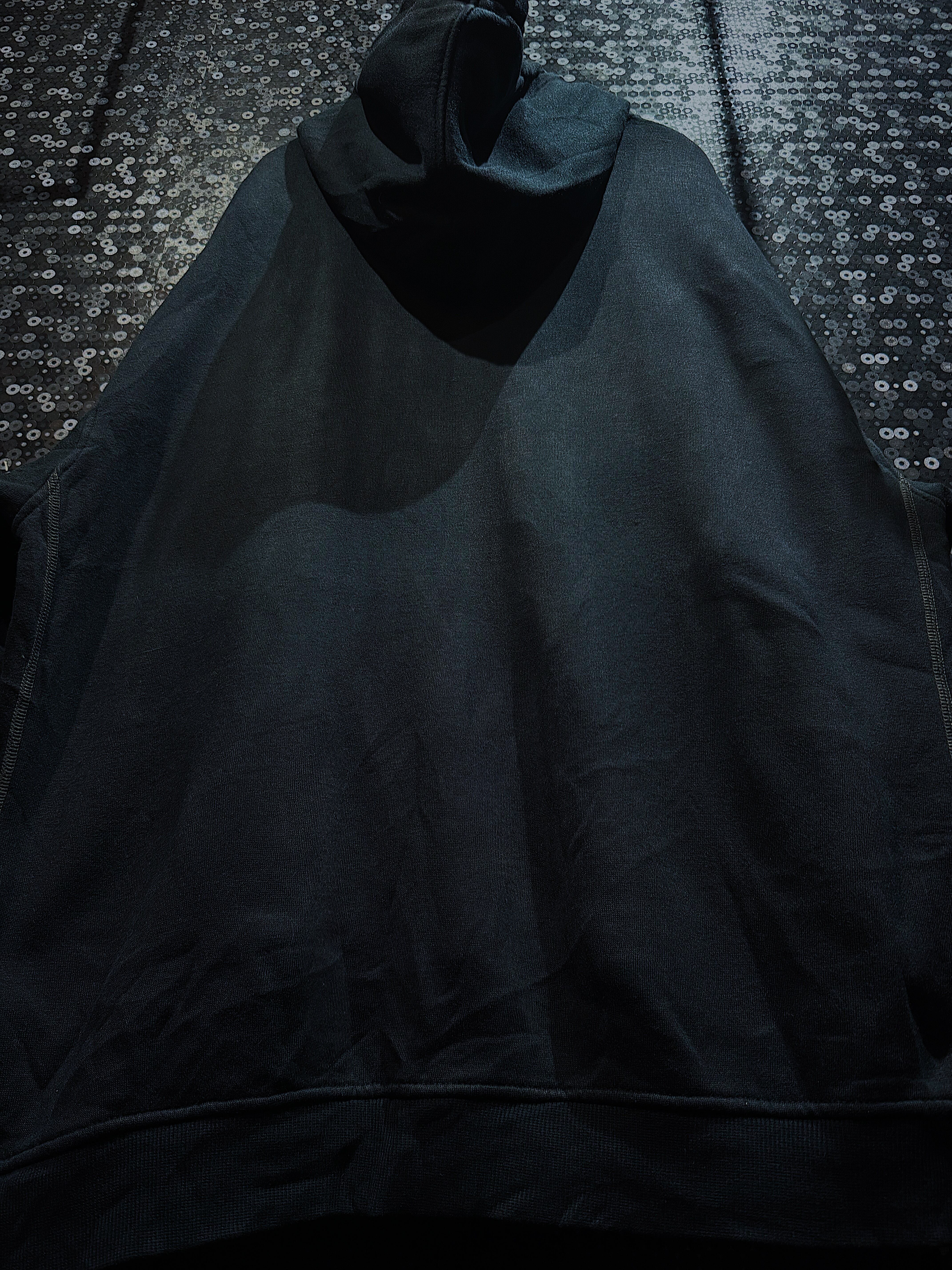 フロントには立体感のある刺繍ロゴが施され、トーン・オン・トーンのカラーリングで控えめながらもしっかりとした主張が光ります。オーバーサイズシルエットで、ドロップショルダーがリラックスした雰囲気を演出し、着るだけでトレンド感のあるコーディネートが完成。