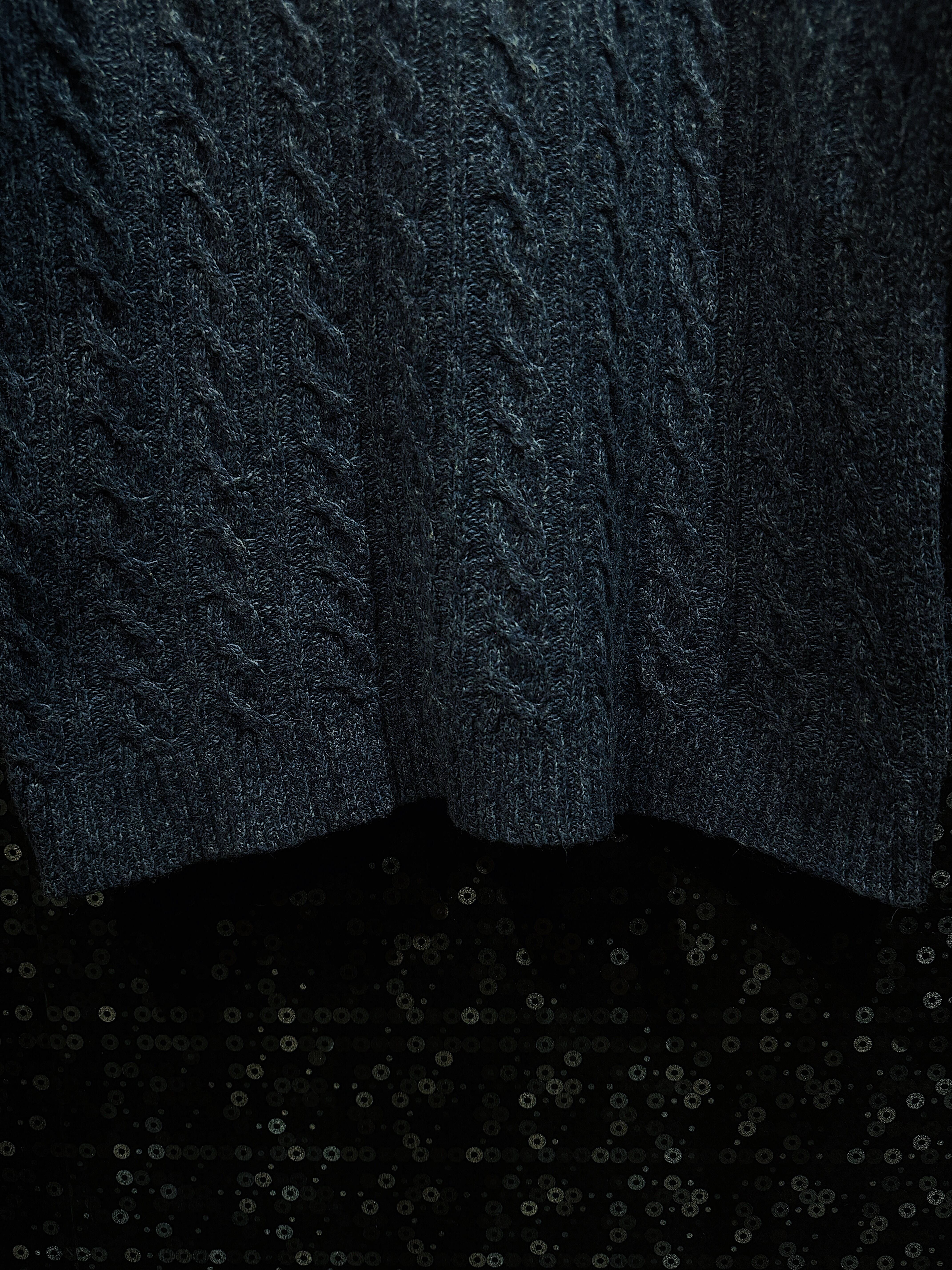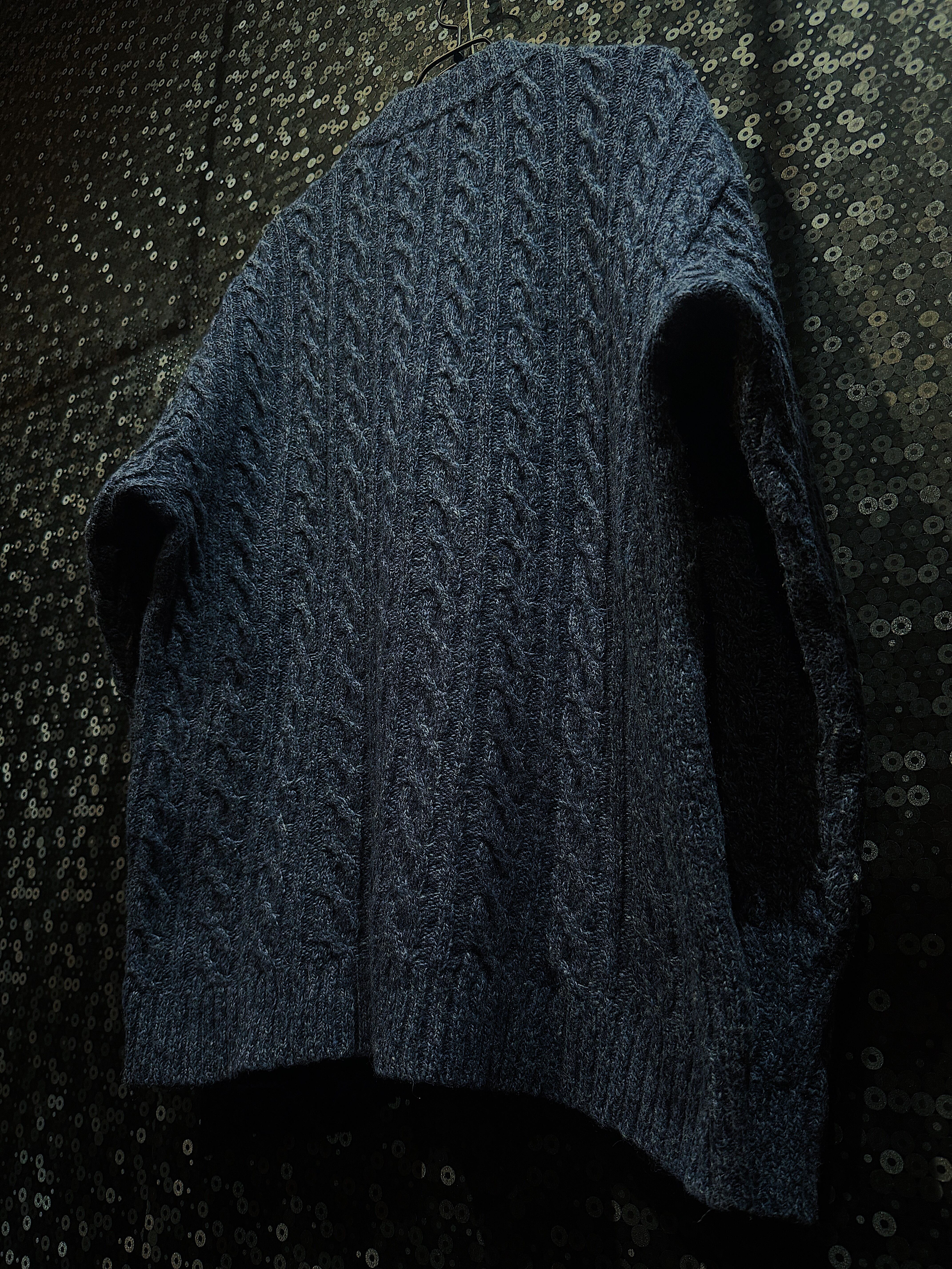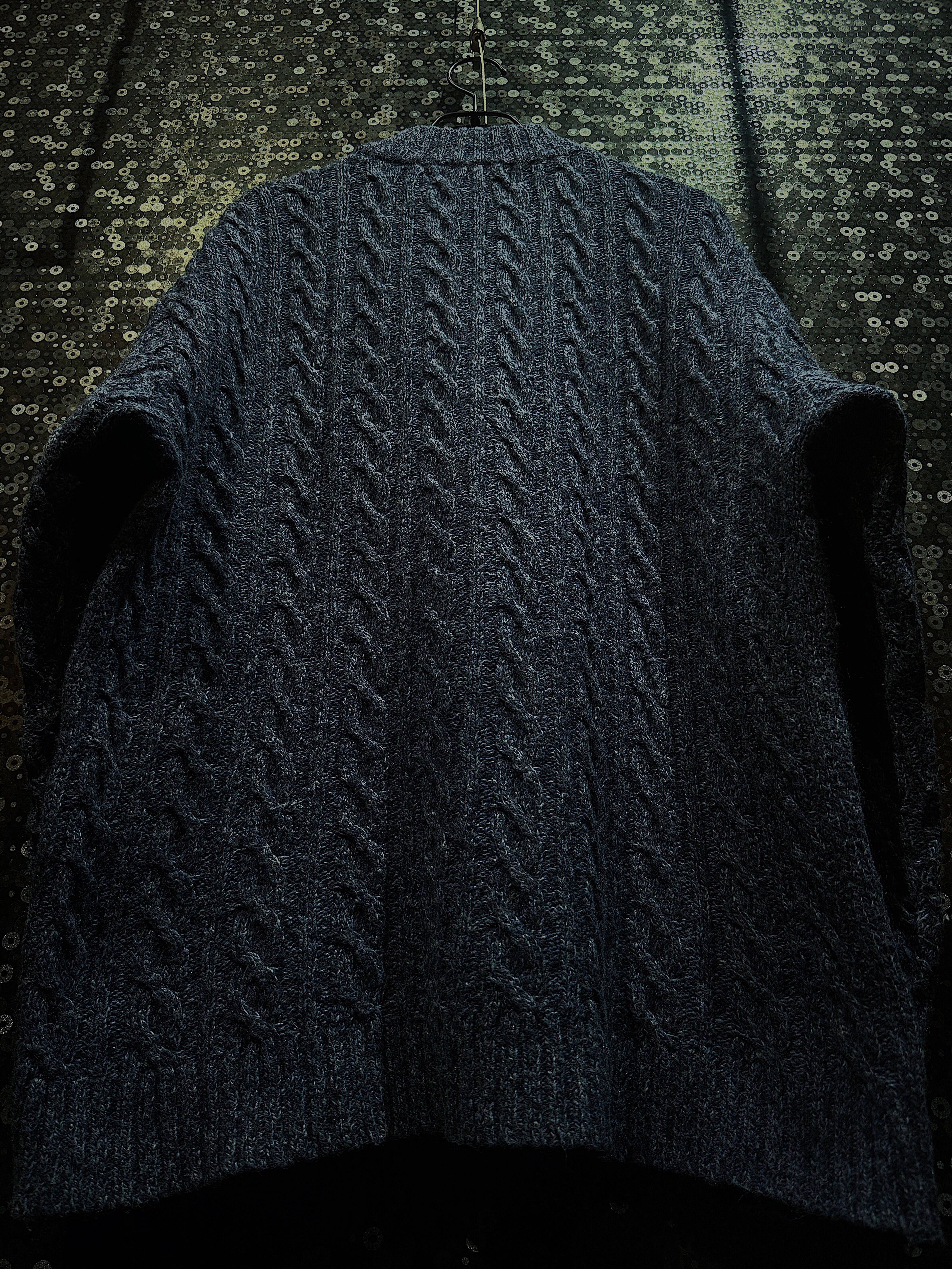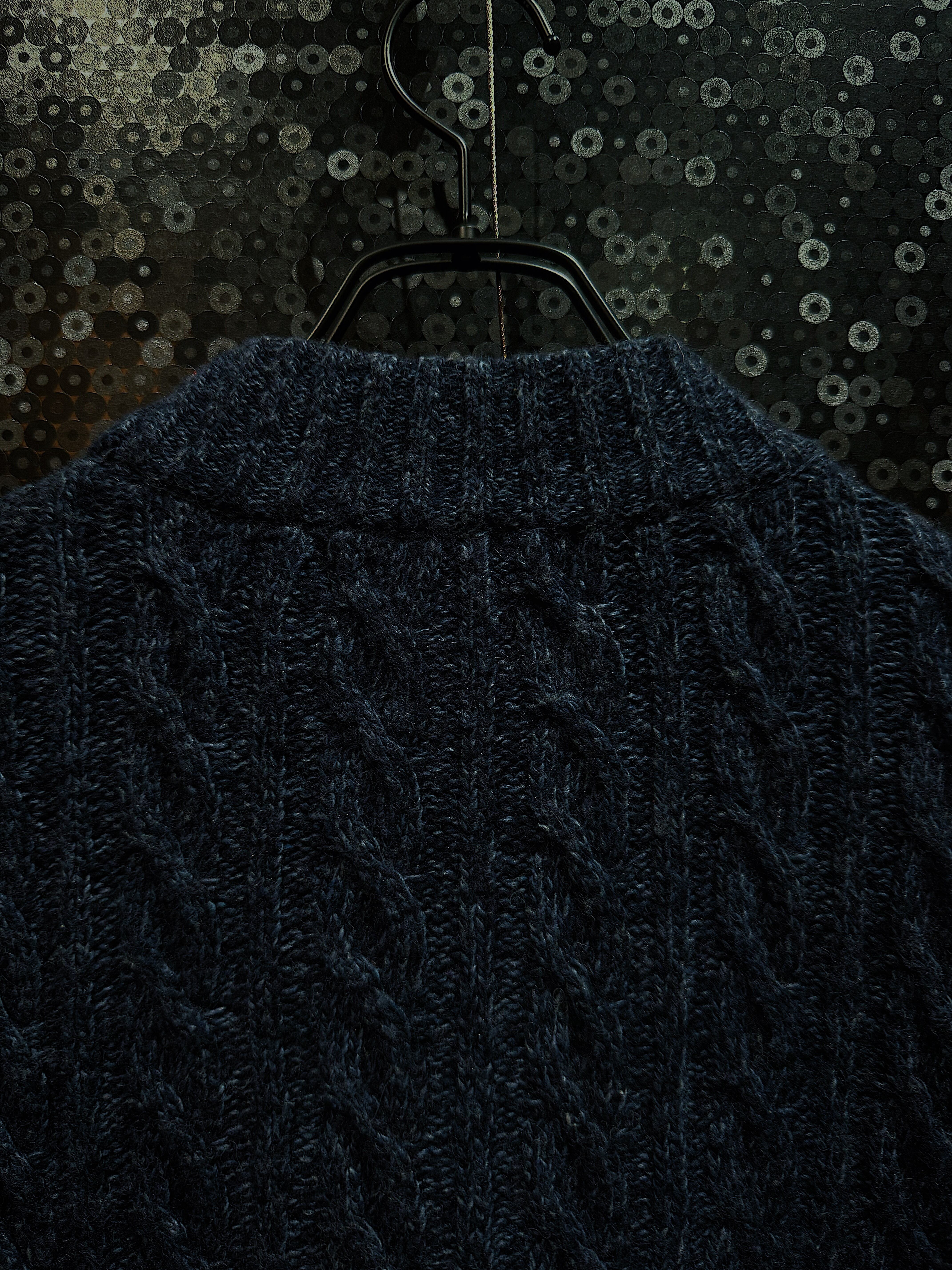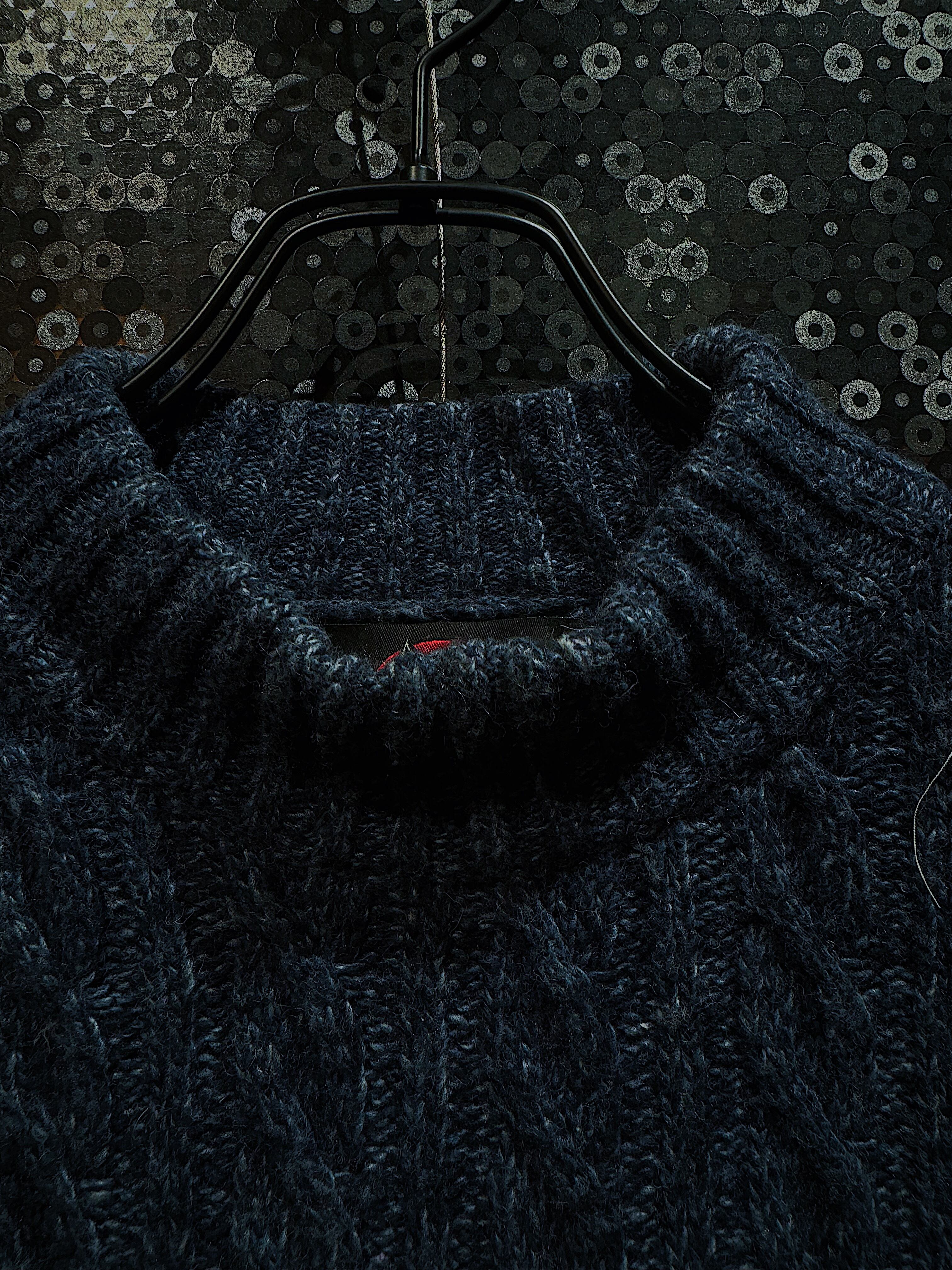 こちらはユニークなデザインが光る、ヴィンテージ感あふれるケーブルニットセーター。