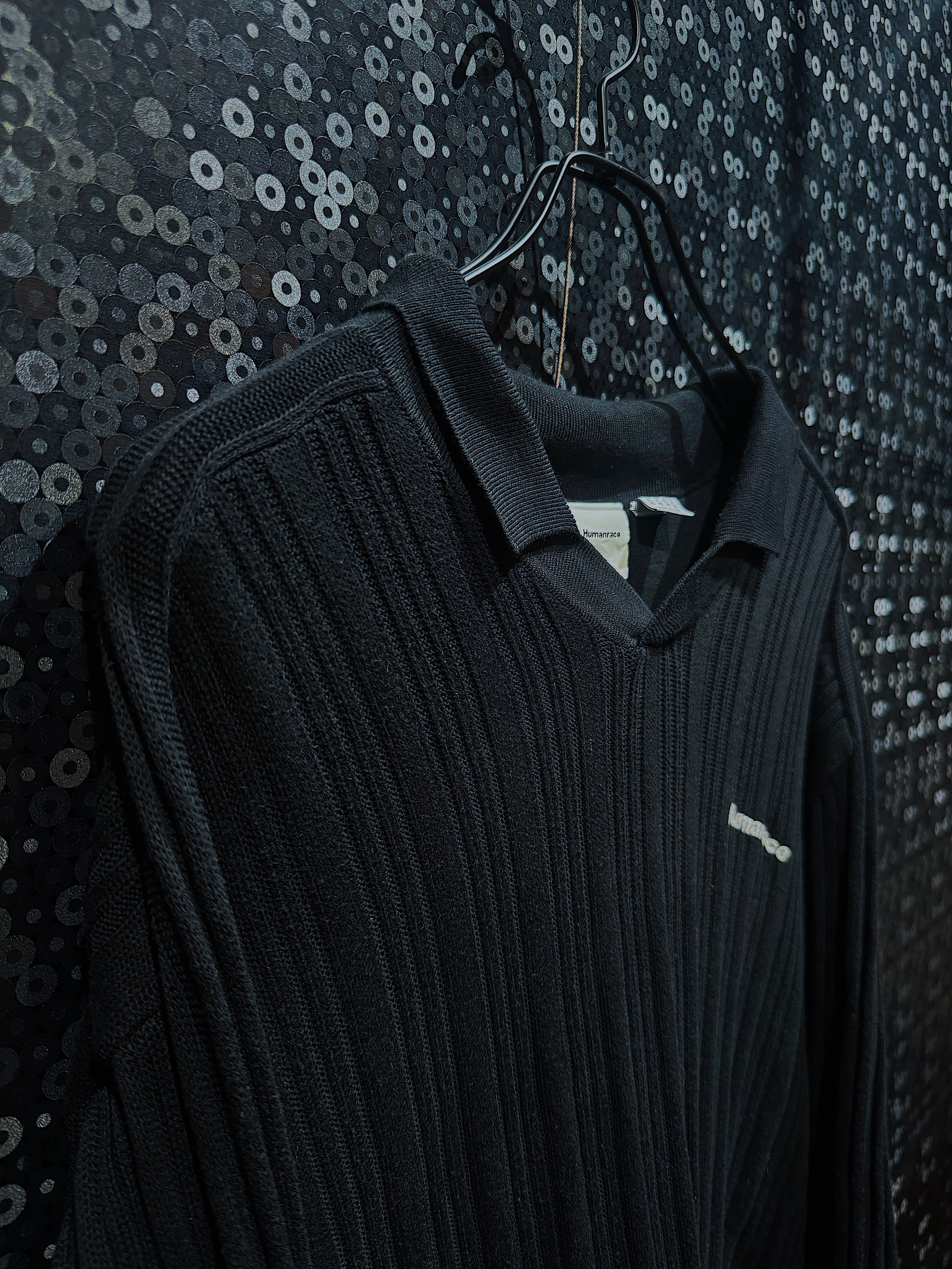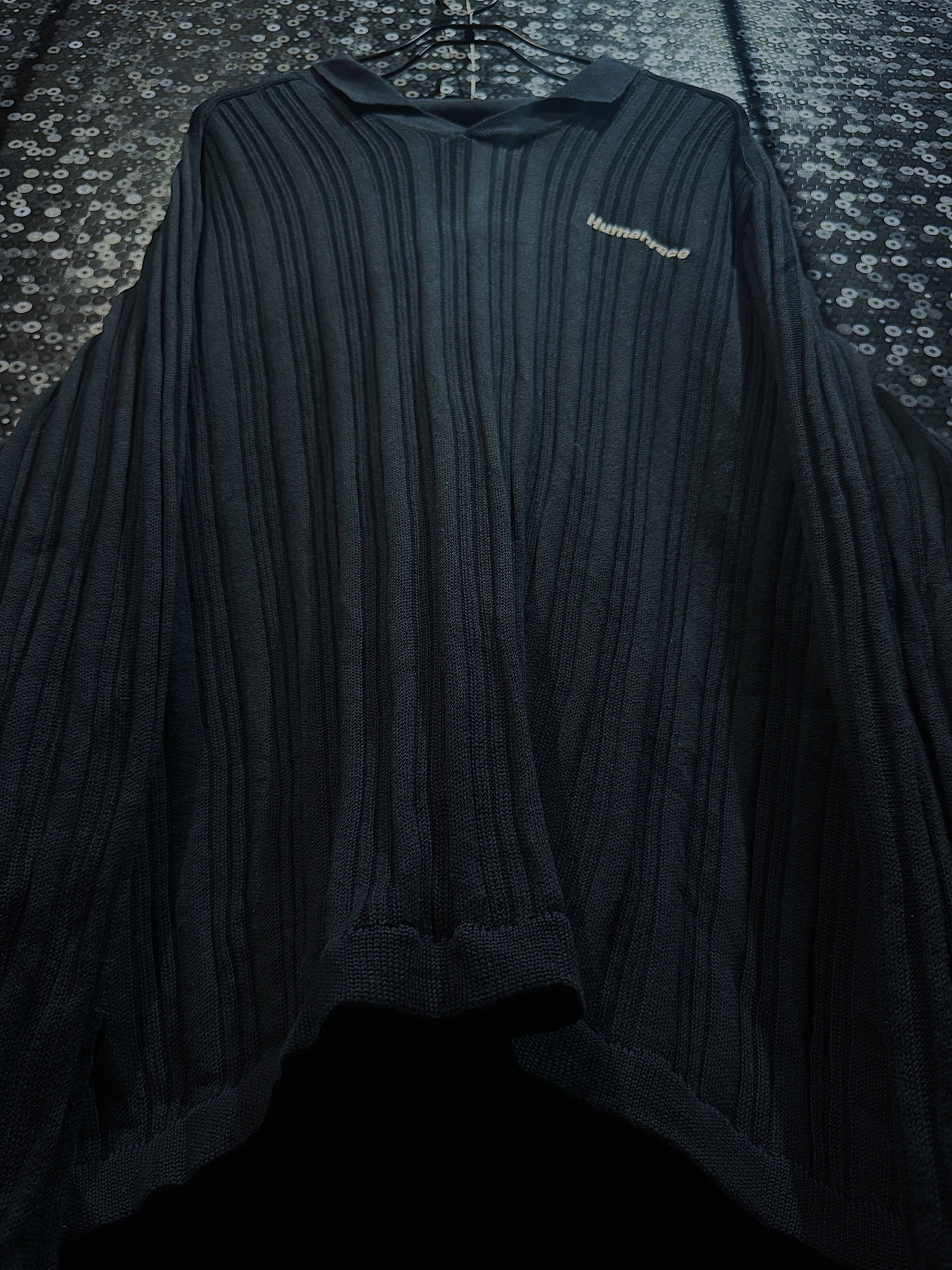 こちらは、adidasとPharrell Williamsが手掛ける「Humanrace(ヒューマンレース)」のコラボレーションニットプルオーバーです。リブ編みの立体的なデザインが特徴で、シンプルながらも存在感のある一着に仕上がっています。