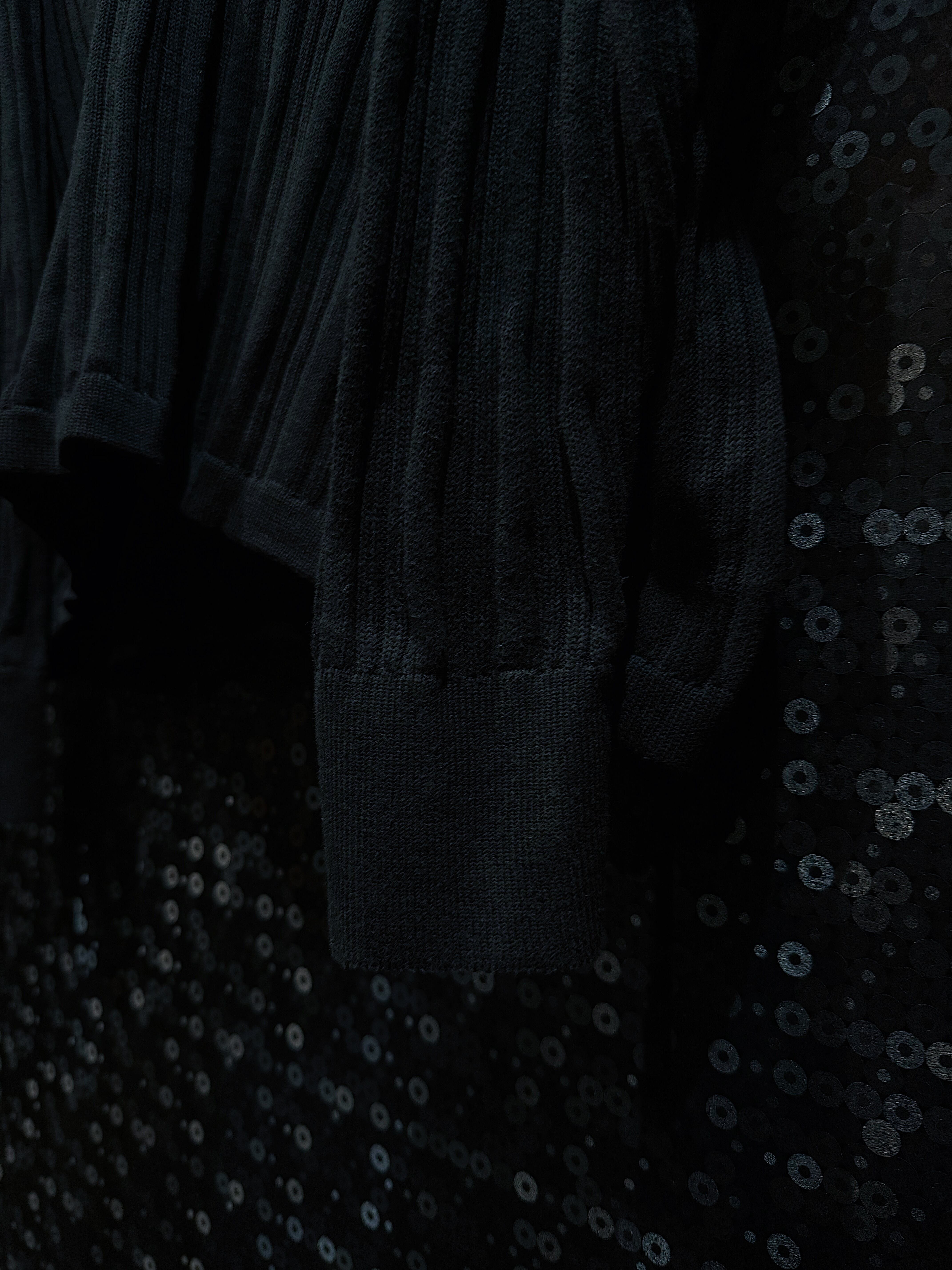 素材感は柔らかく、程よい厚みがあり、秋冬のレイヤードスタイルに最適。ドロップショルダーとゆったりとしたシルエットが、リラックスした着心地を提供しつつもモードな雰囲気を演出します。