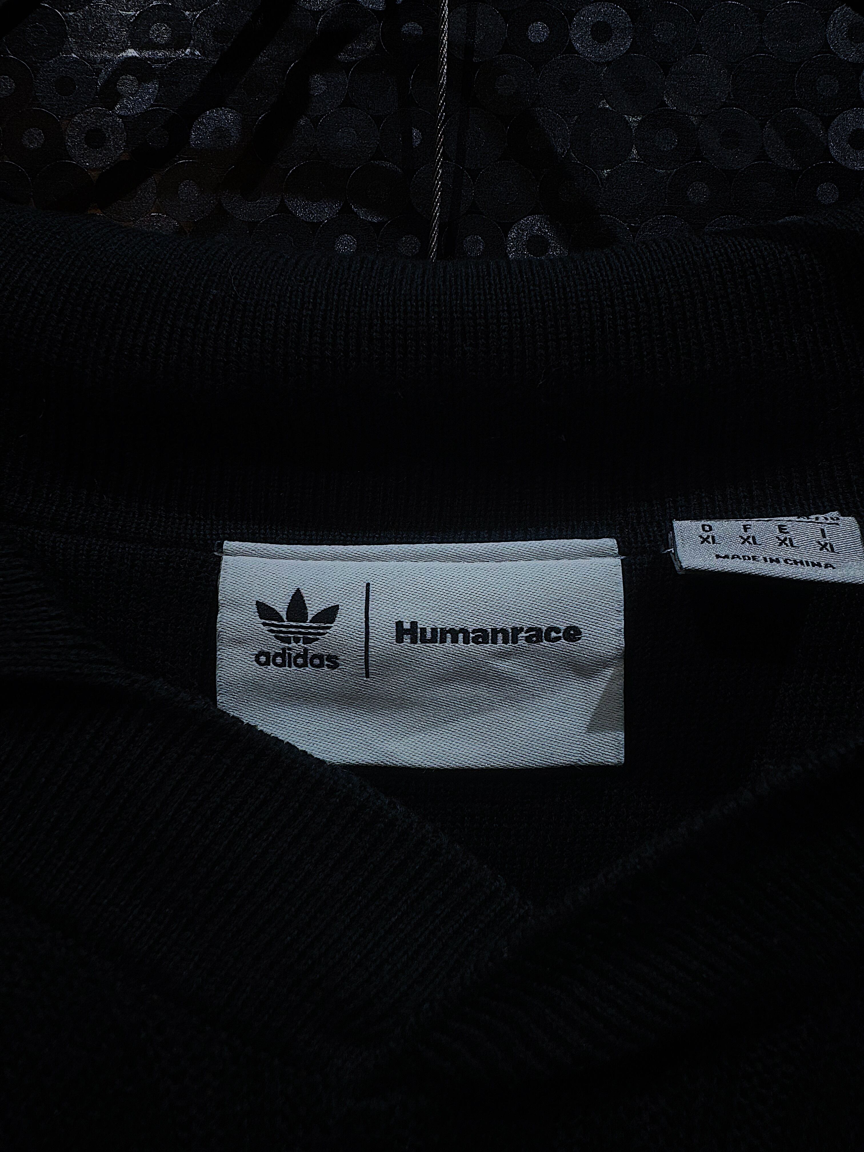 胸元には「Humanrace」のロゴがさりげなく刺繍され、背面にはadidasのトレフォイルロゴが配置されており、ブランドの個性をしっかりと表現しています。