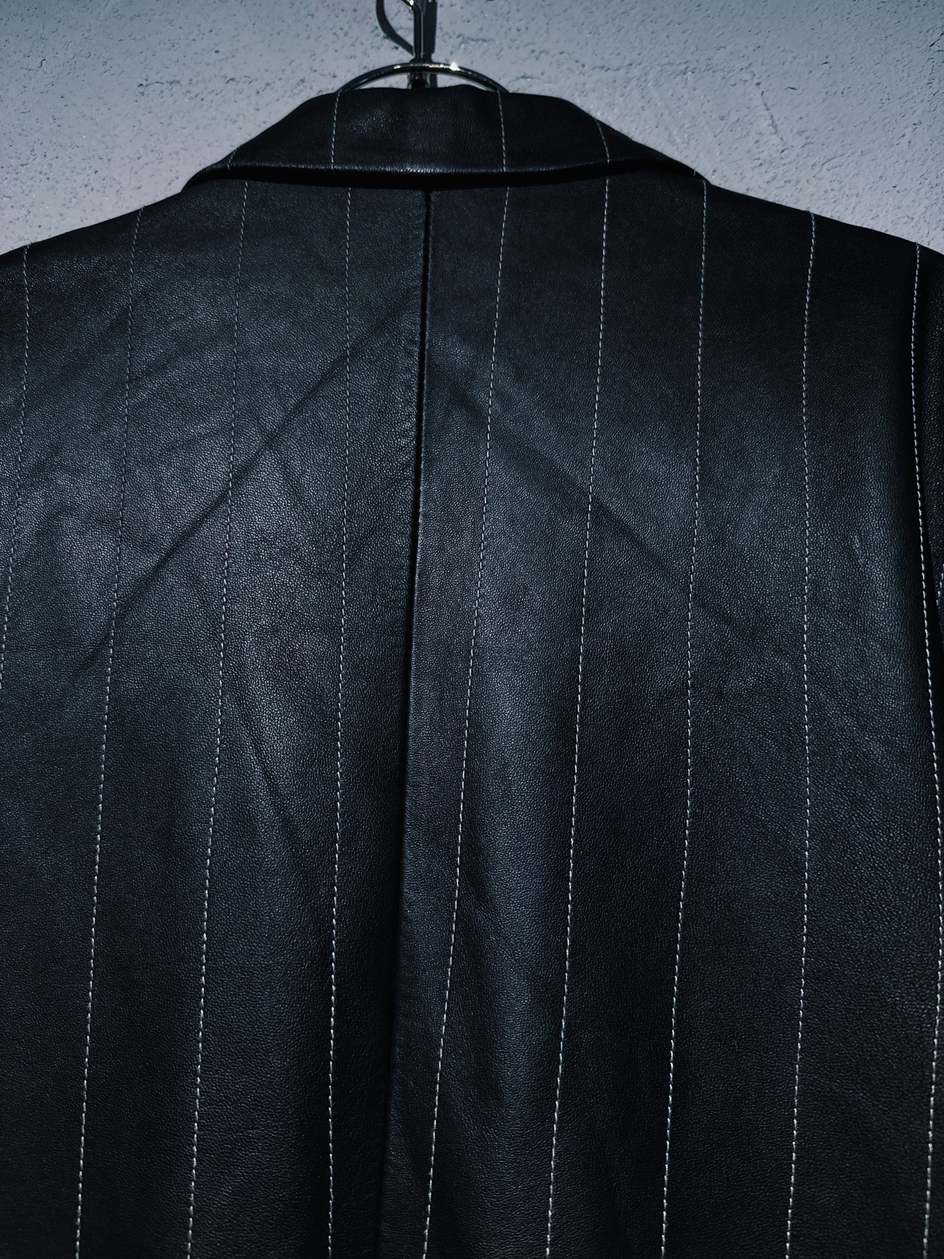 90's vintage fake leather material stripes design tailored jacket
