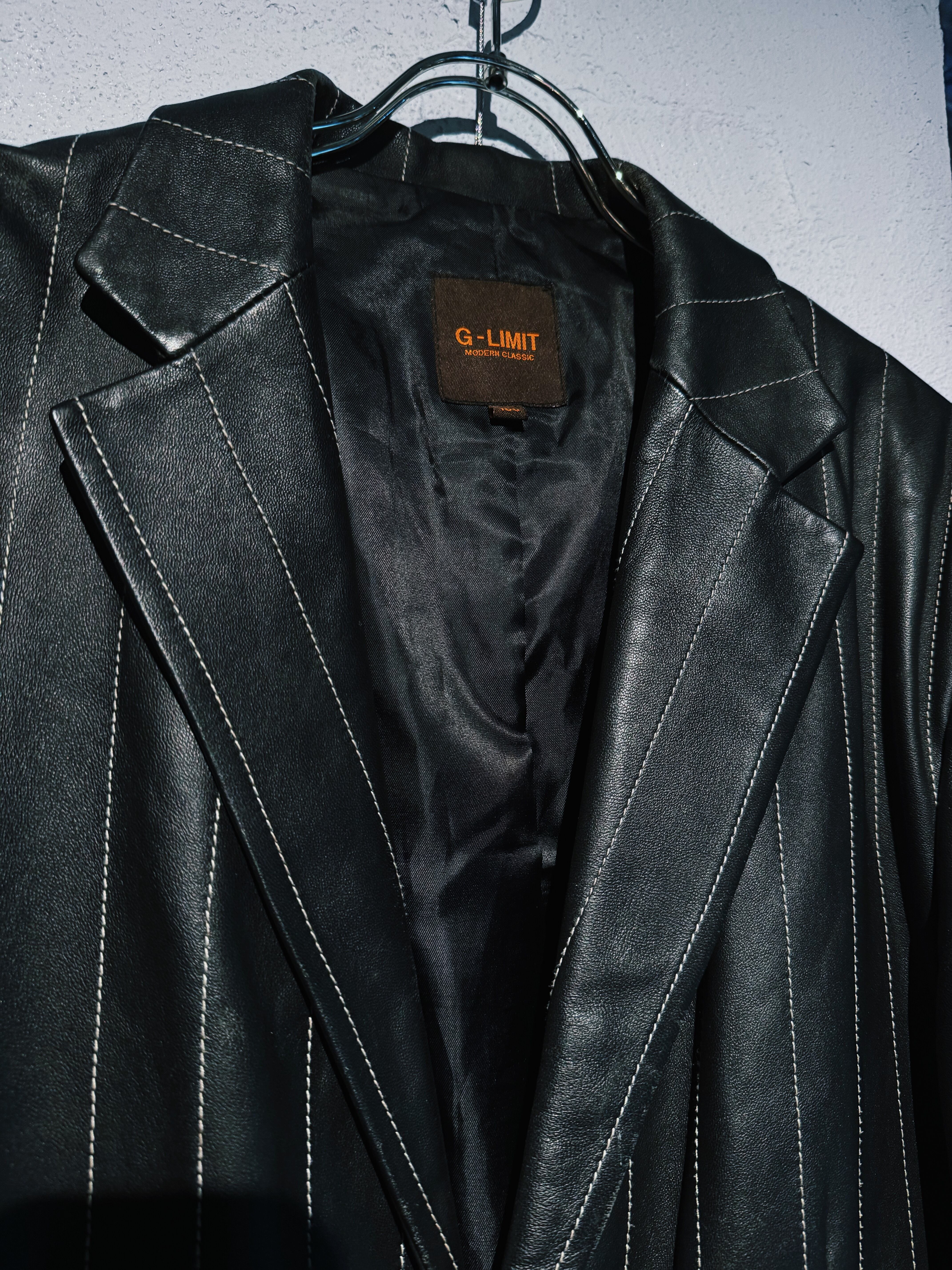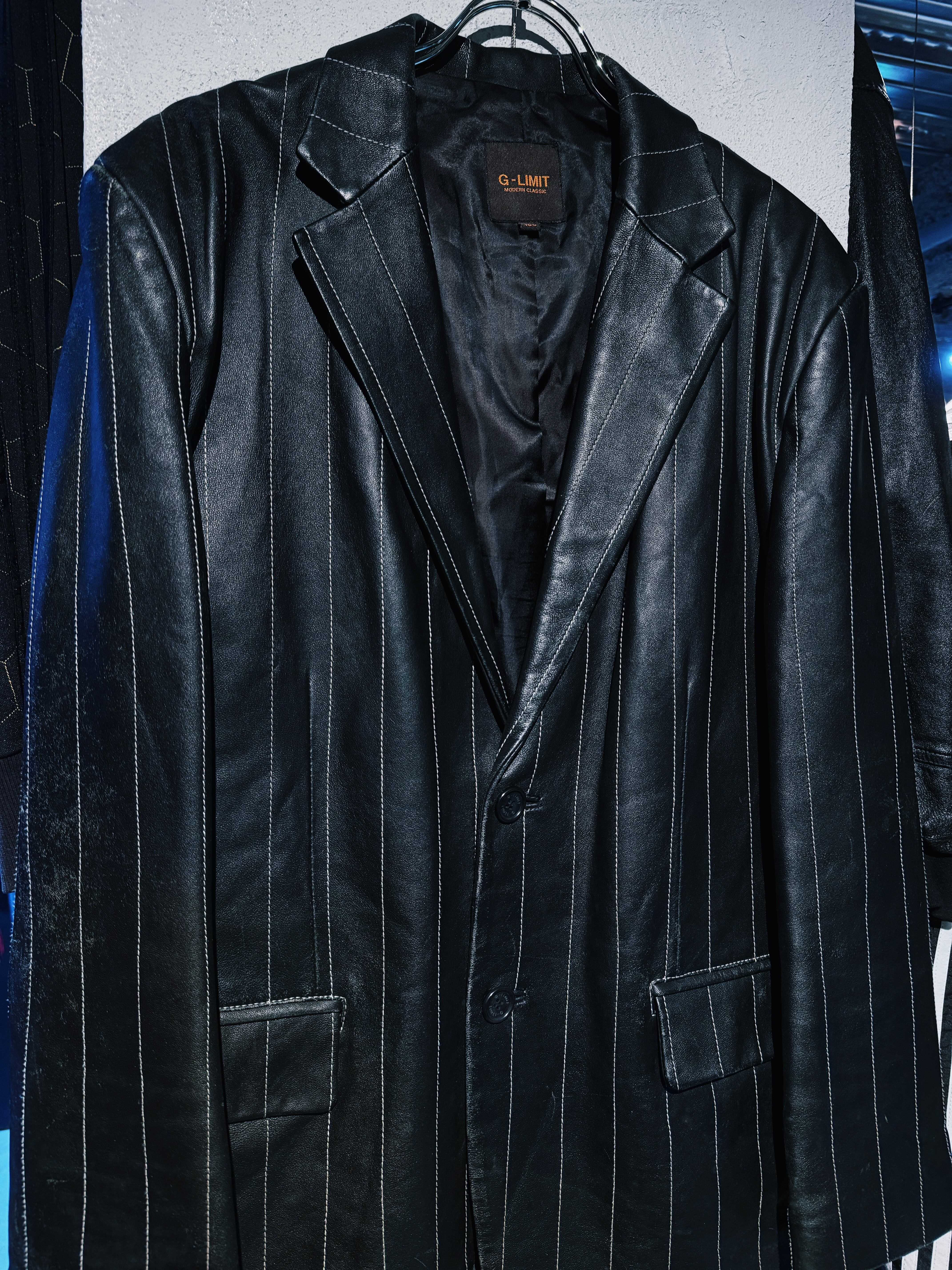 【D4C】90's vintage fake leather material stripes design tailored jacket