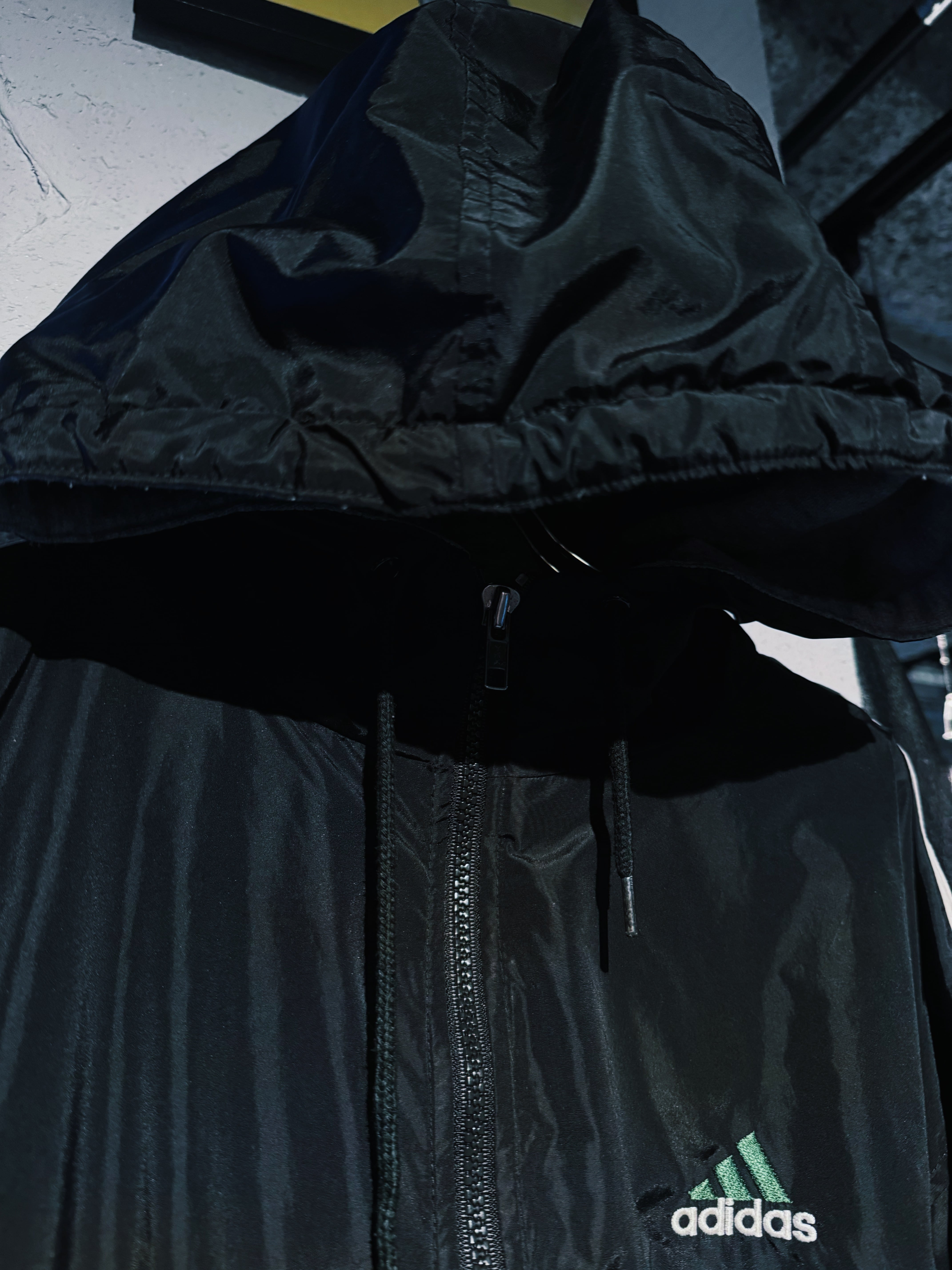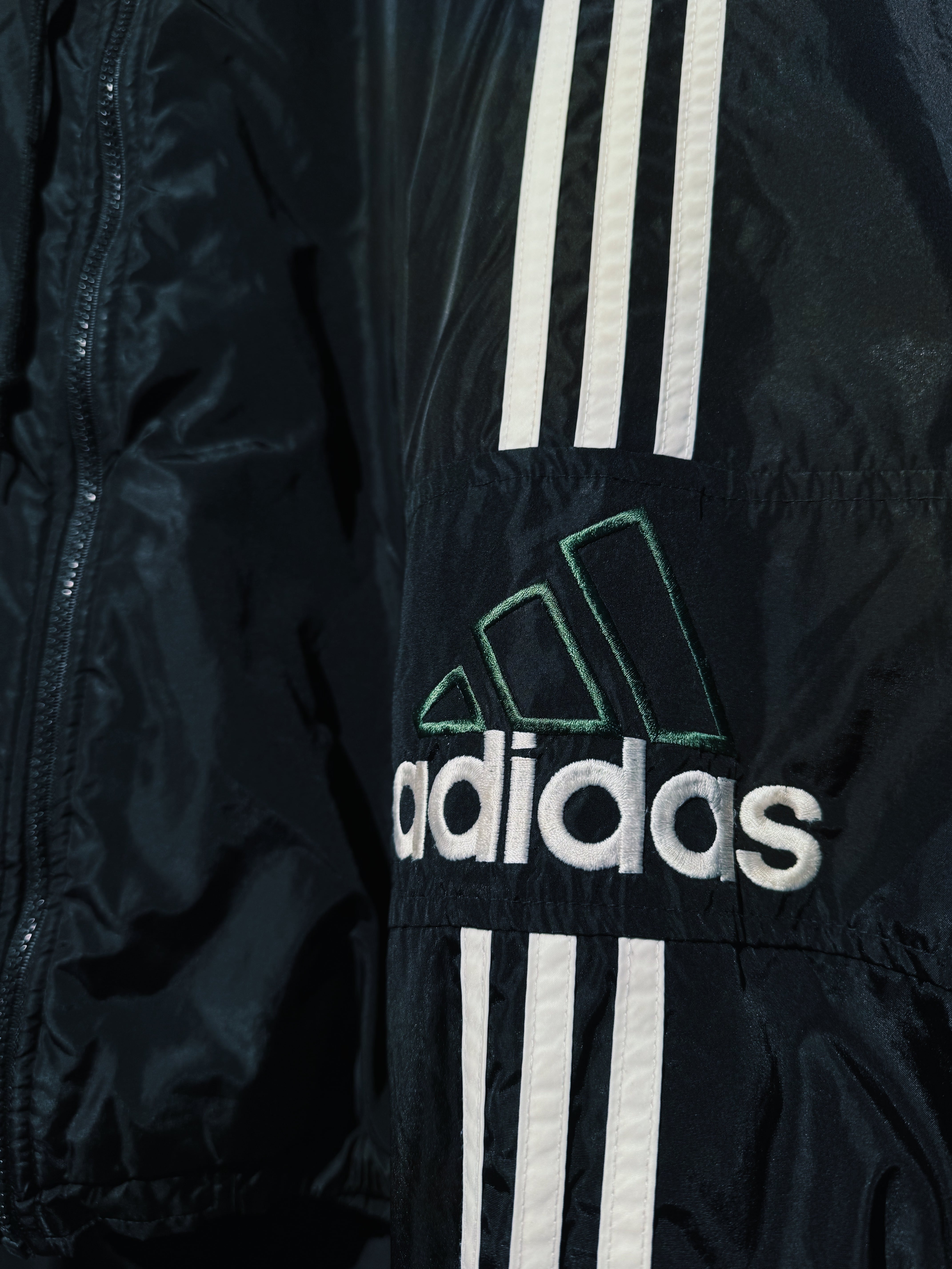 90's vintage "adidas" performance logo embroidery design three stripe foodie jacket