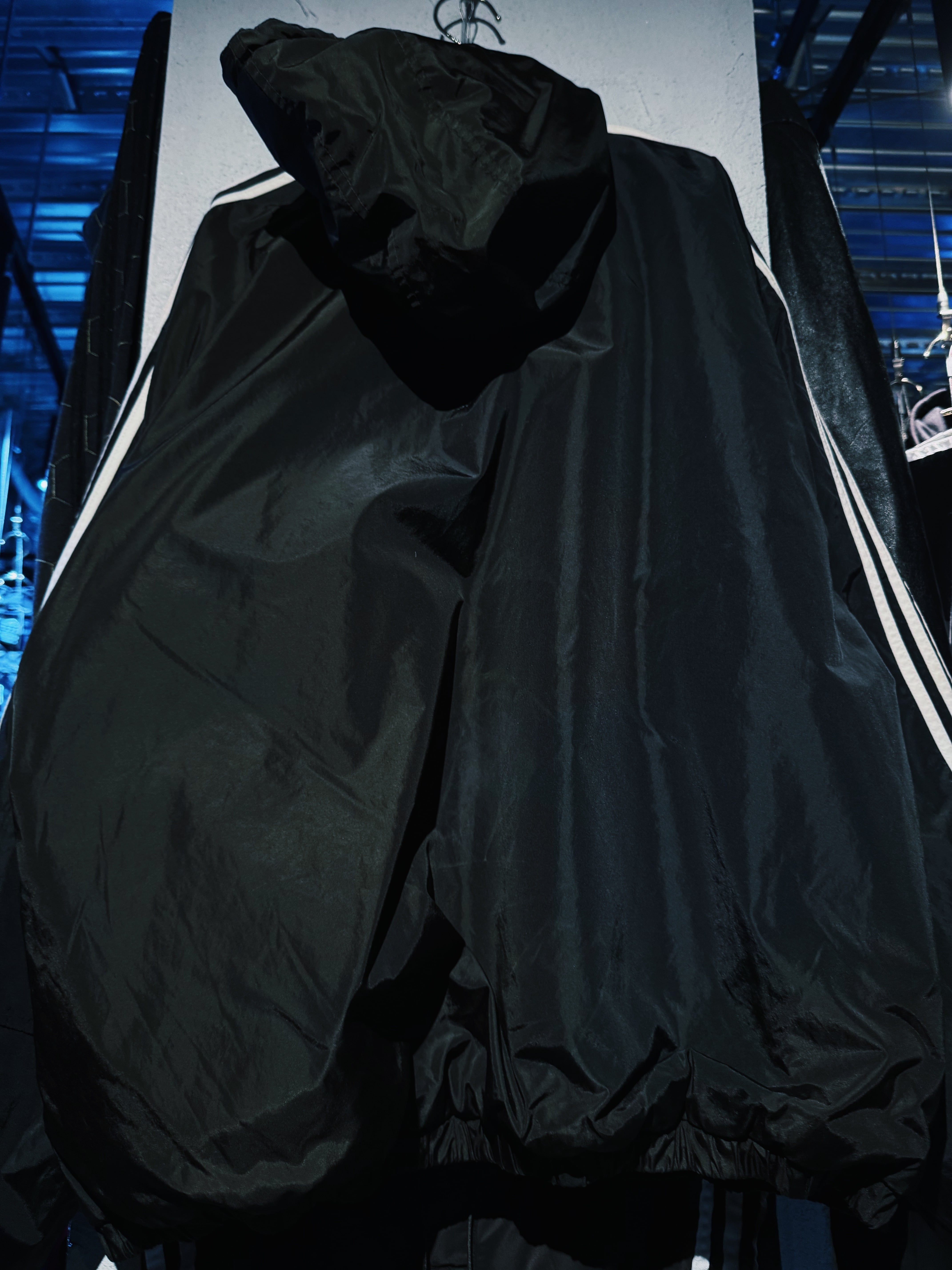 毎度即完が相次ぐフーディータイプのトラックジャケット。今回は中々お目にかかれないジップデザインで、さらに胸元にも3ストライプが施されているデザインとかなり稀有な一着です。