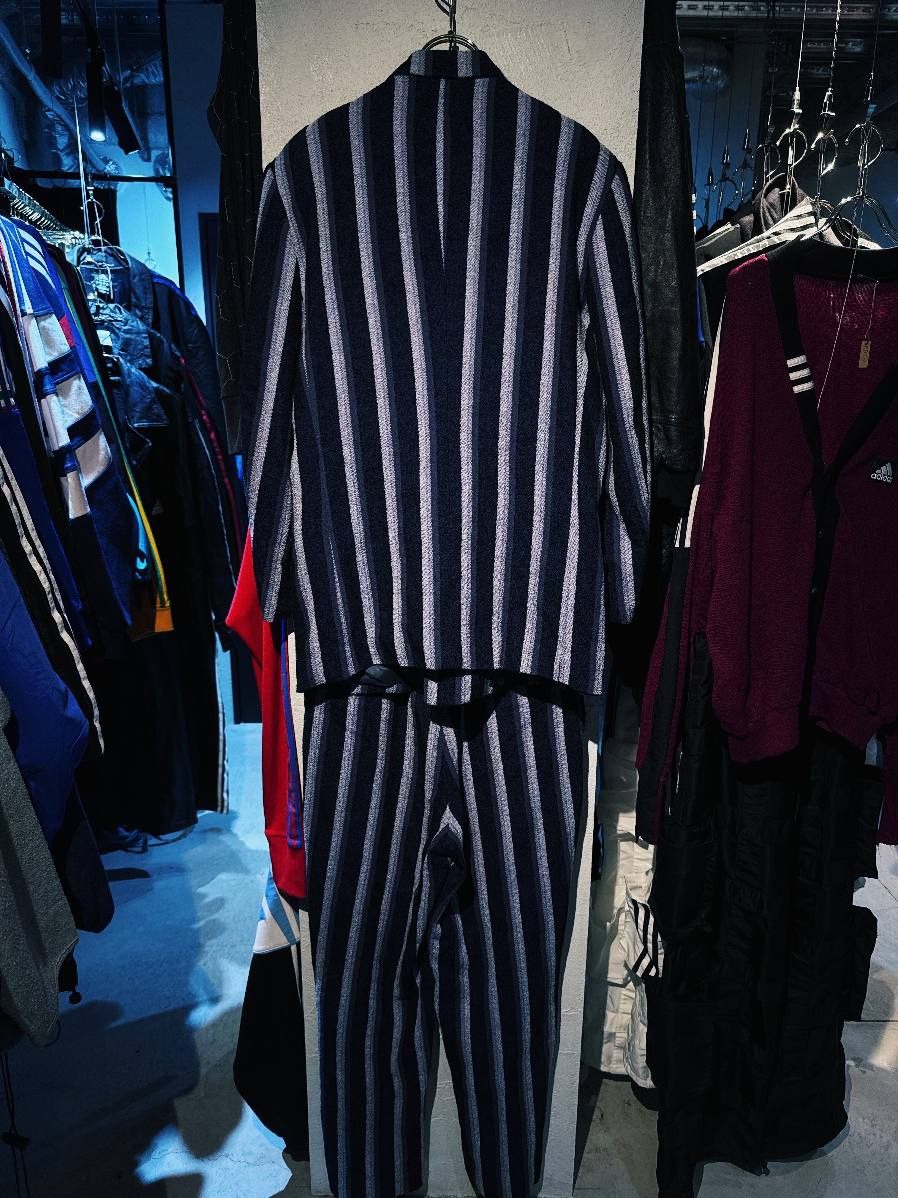 【D4C】90's vintage blue tone color pile fabric stripes design double breast set up