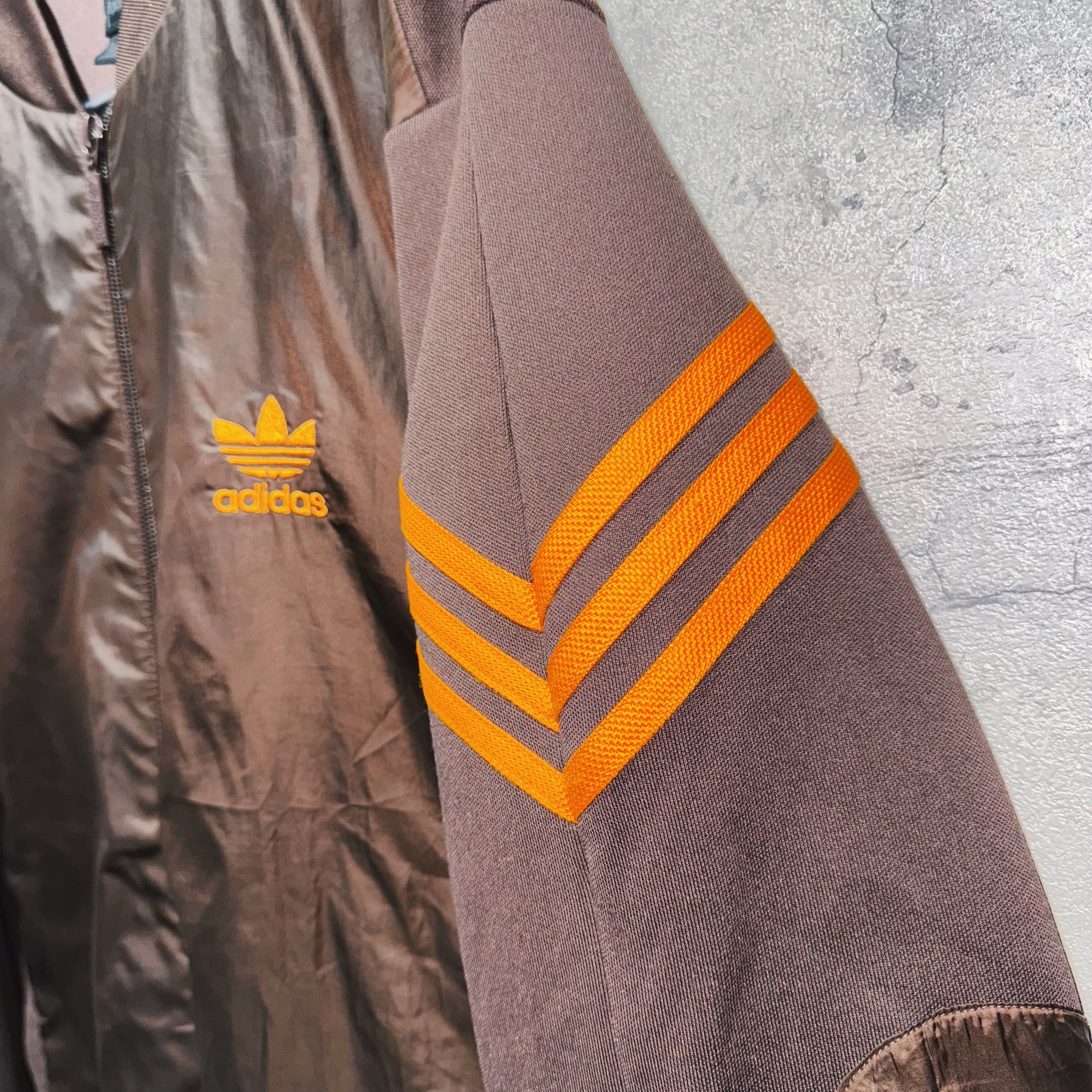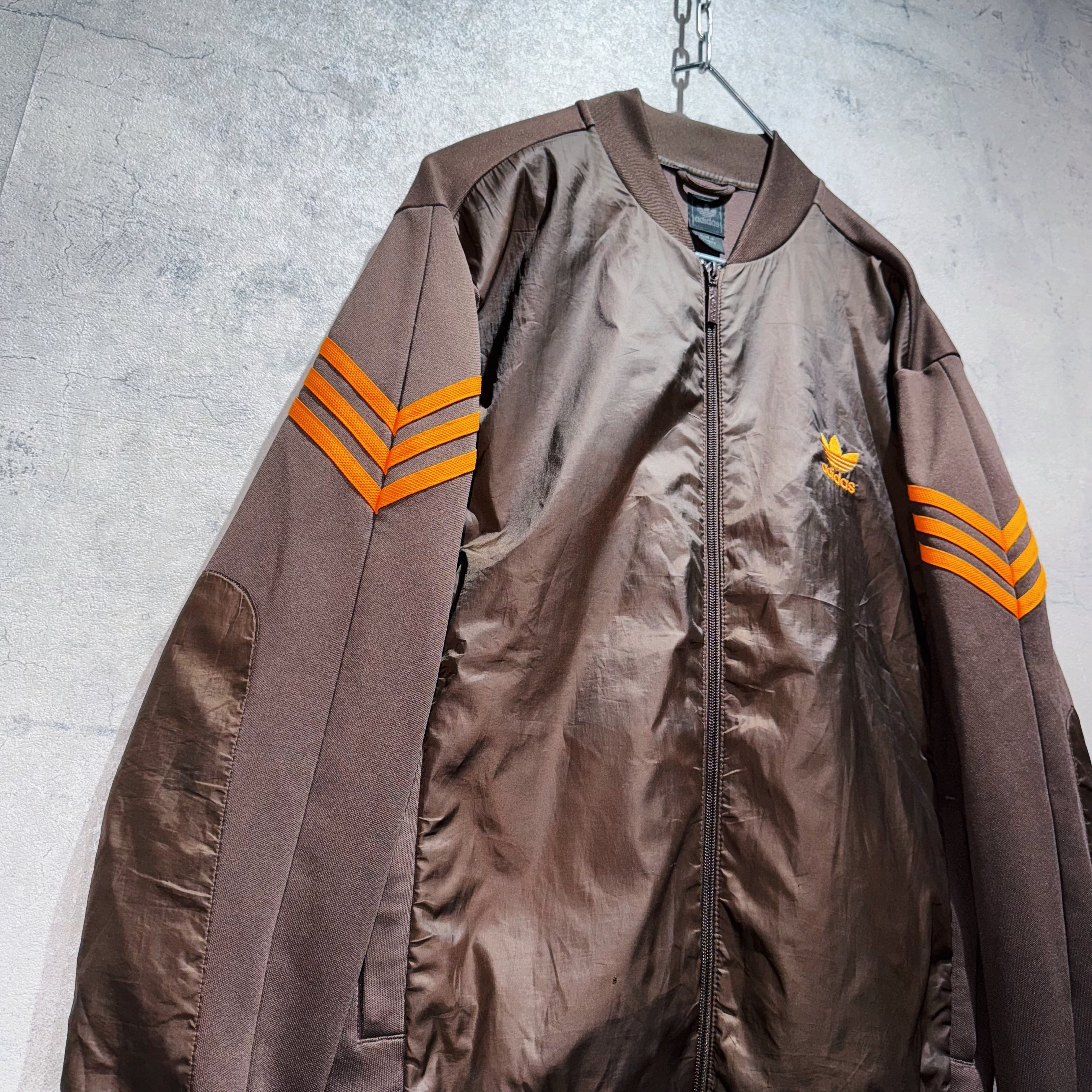 "アディダスオリジナルス"ブラウン×オレンジスイッチングカラーデザイントラックジャケット