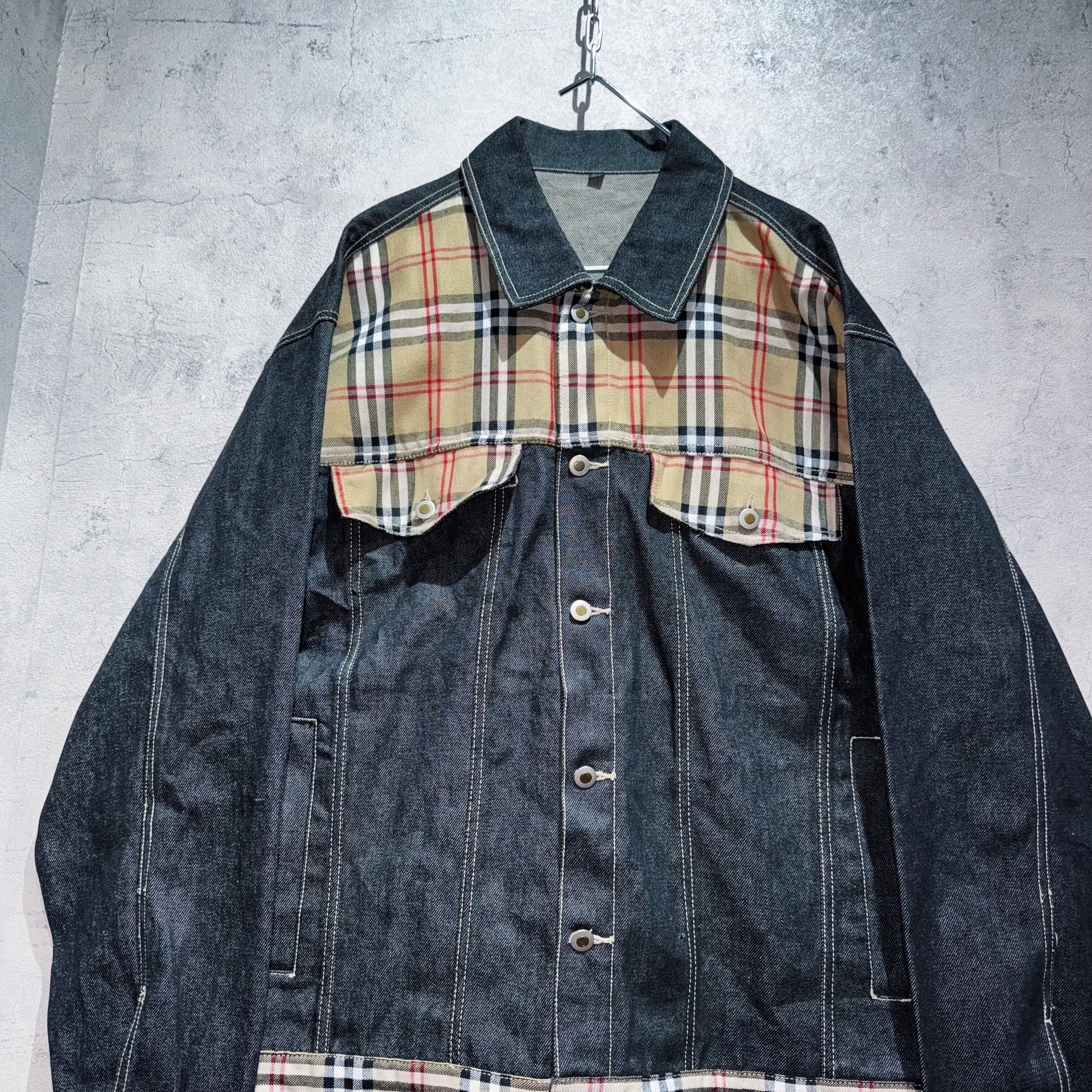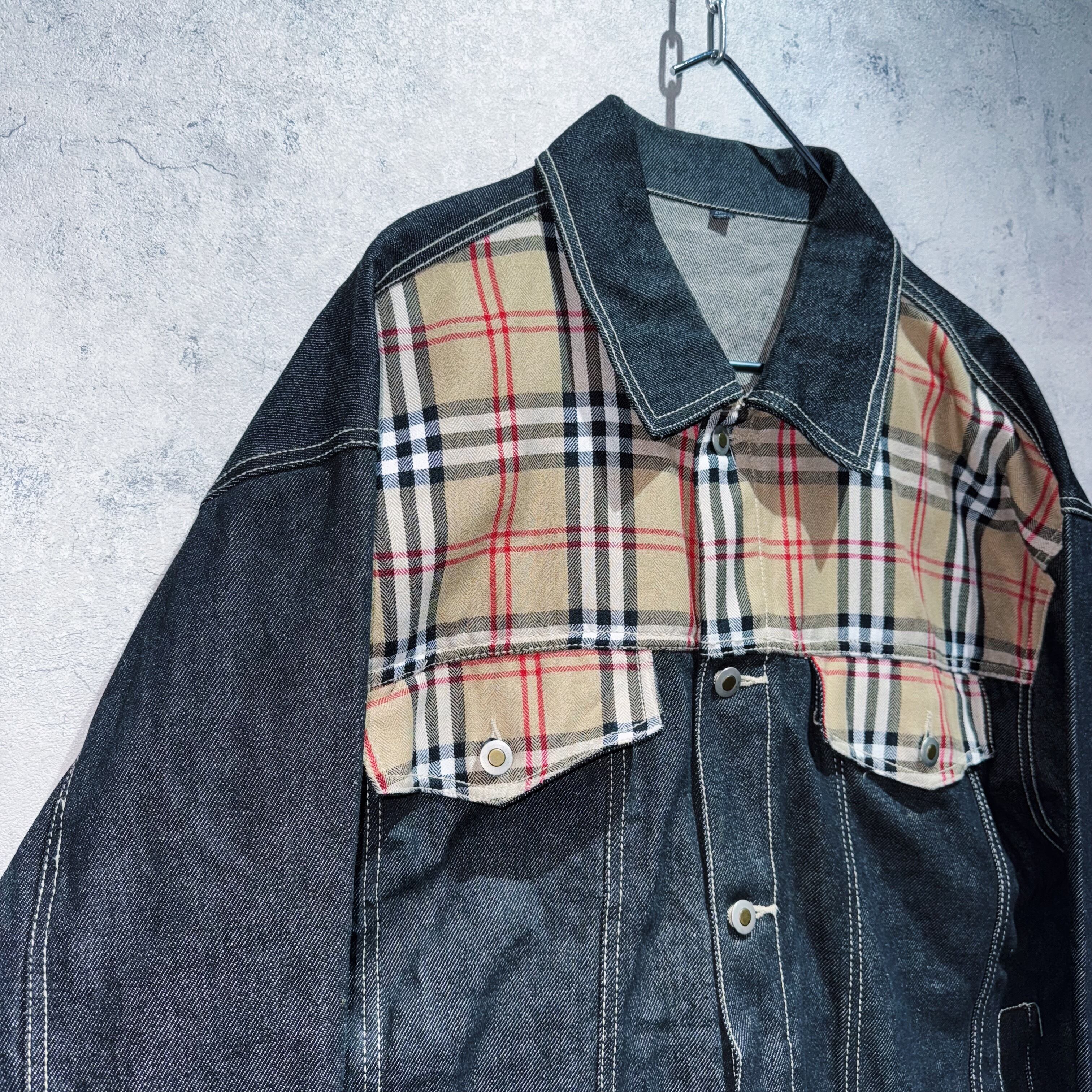 ヴィンテージノバチェックパターンスイッチングデザインデニムジャケット