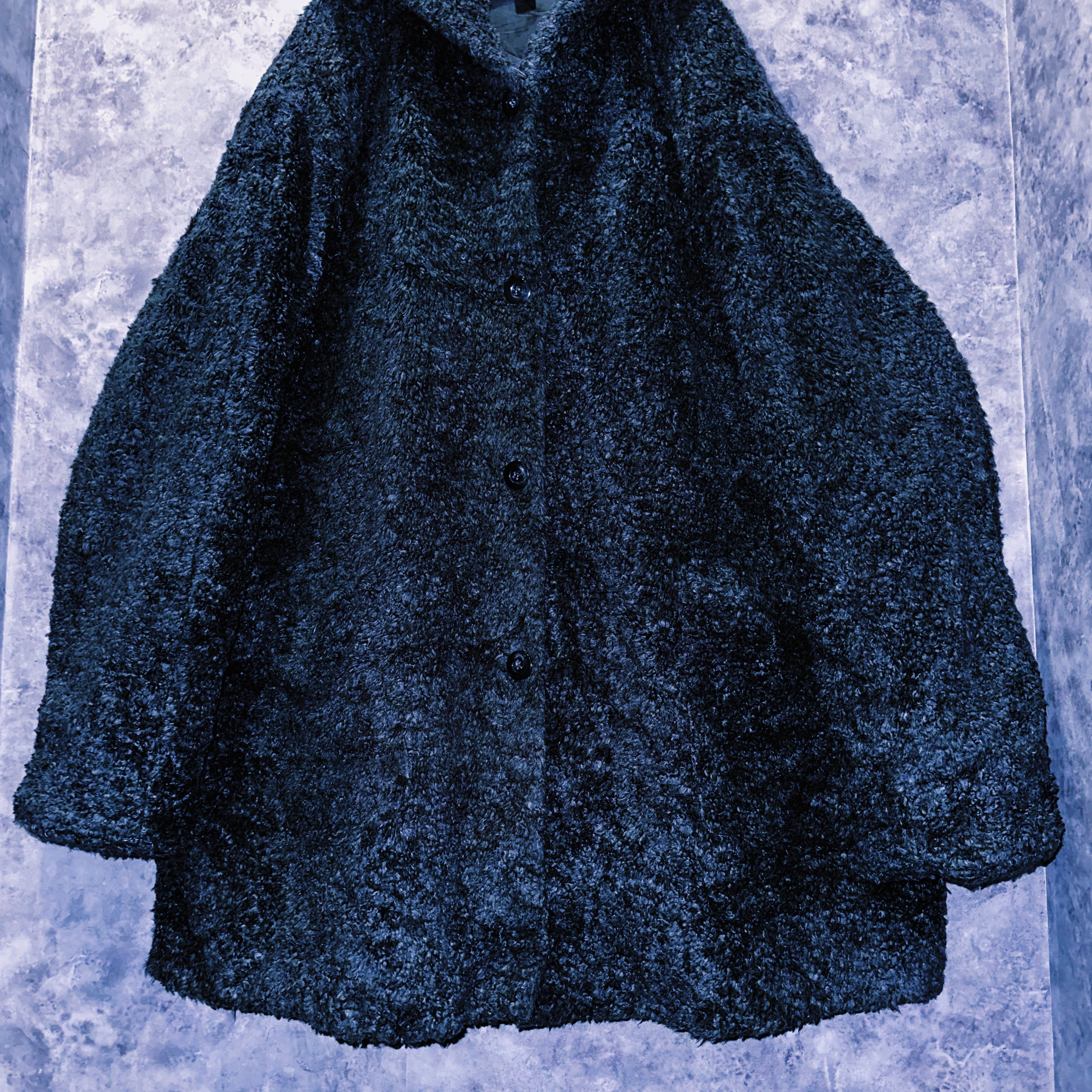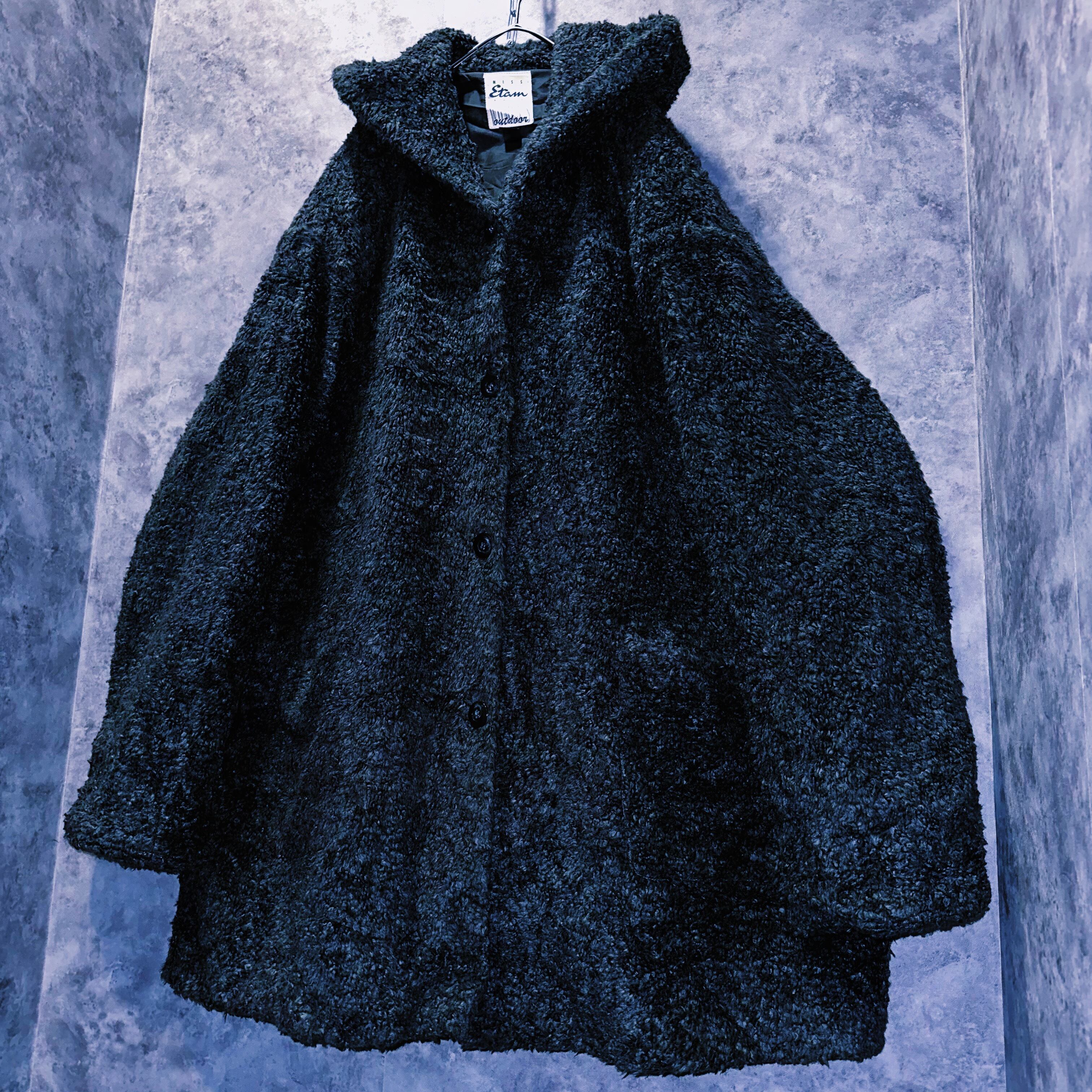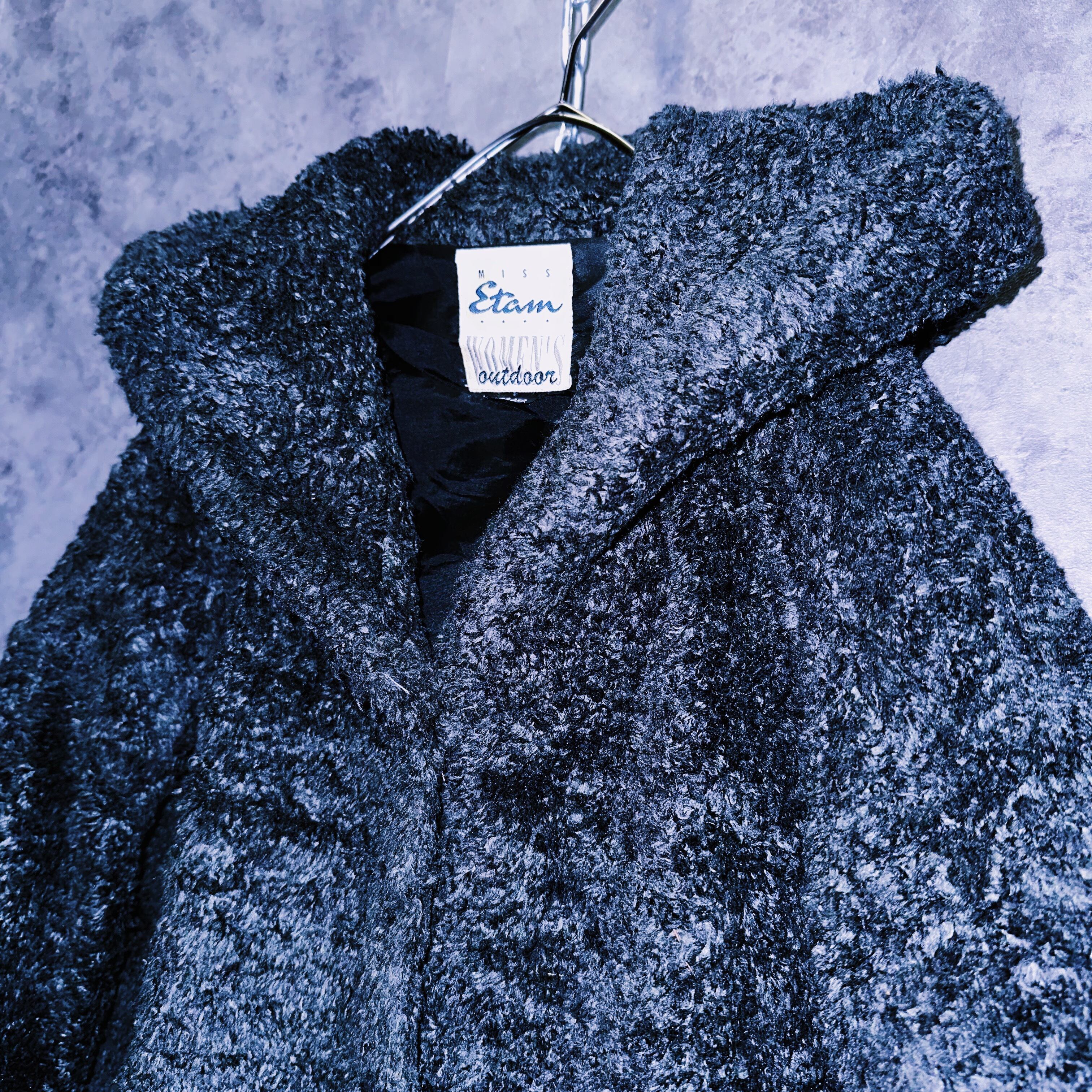 ヴィンテージダークチャコールボアデザインルーズフーディージャケット