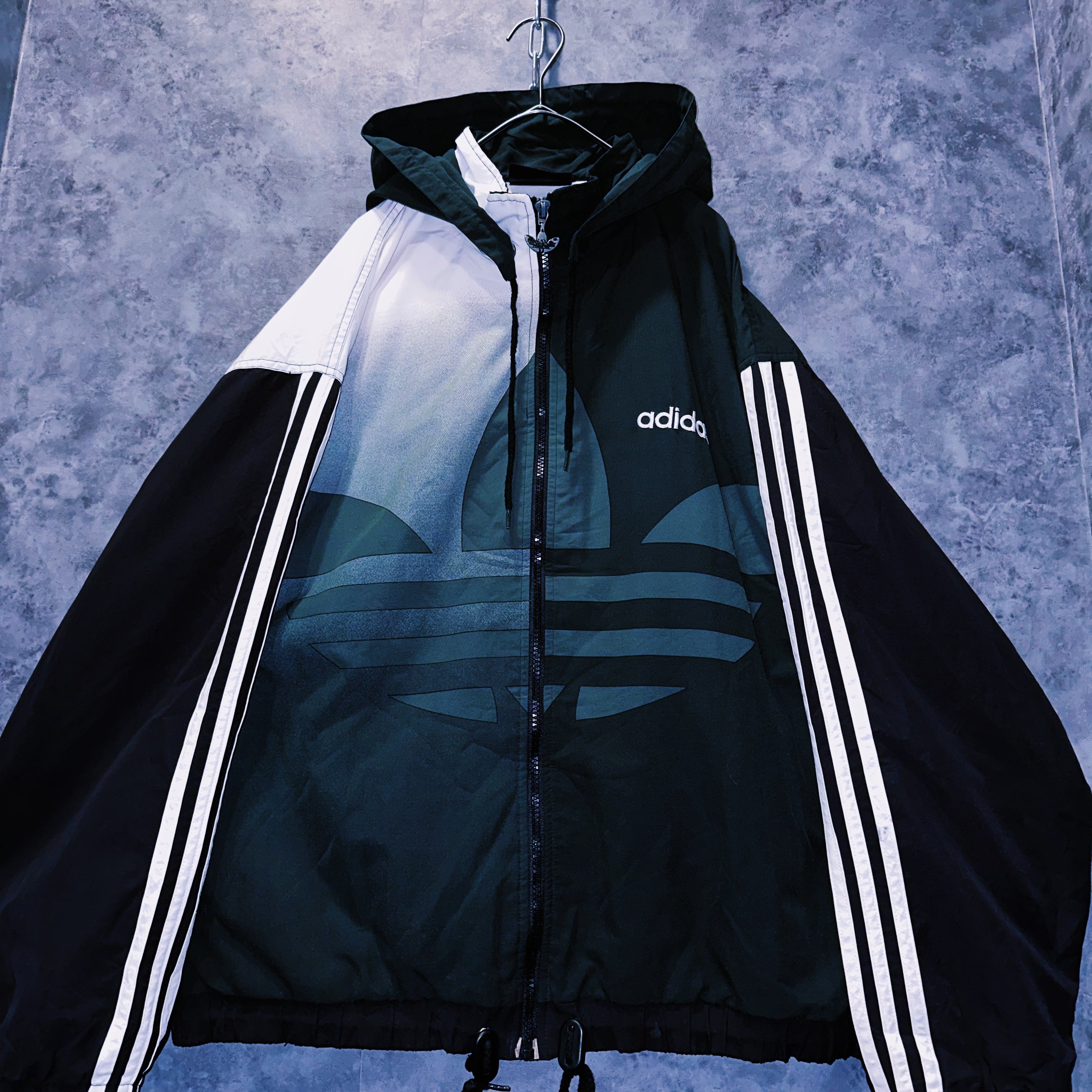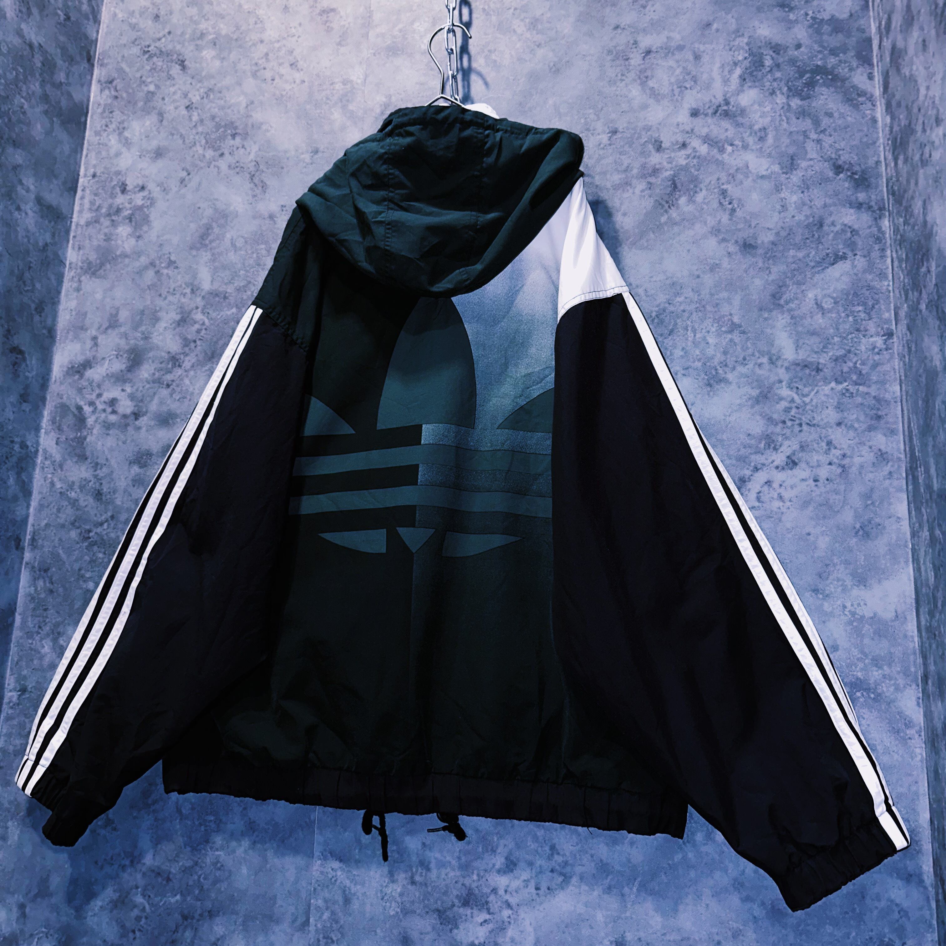 圧巻の光沢感を感じるブラックとホワイトベースのトラックジャケット。近年ではなかなか無いレアカラーでさらには程よいスリーストライプやスウィッチングが目に行く鮮やかなディテールの1着。