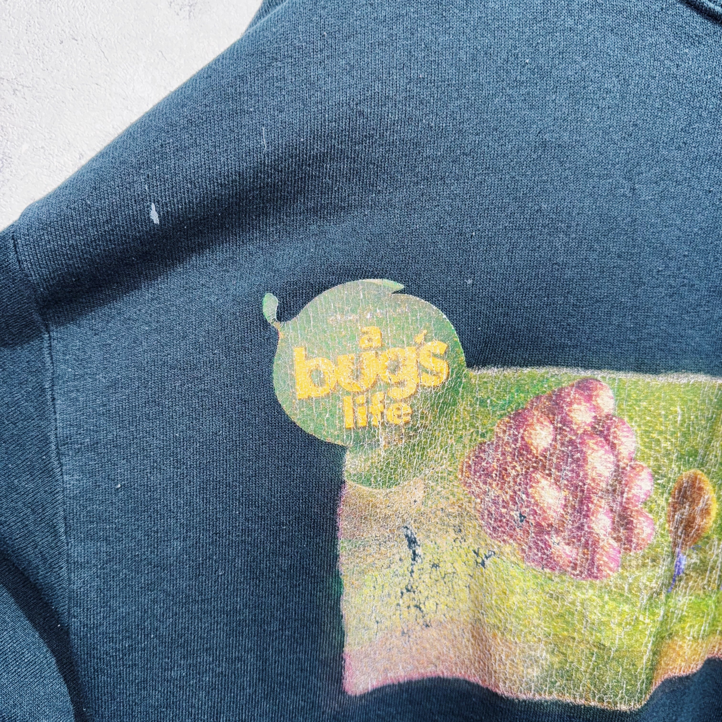 ピクサーの中でも人気の高いバグズライフからのプリントデザインスウェット。1998年に公開された物で今回はバグズライフタグの公開直後に販売されていた物です。