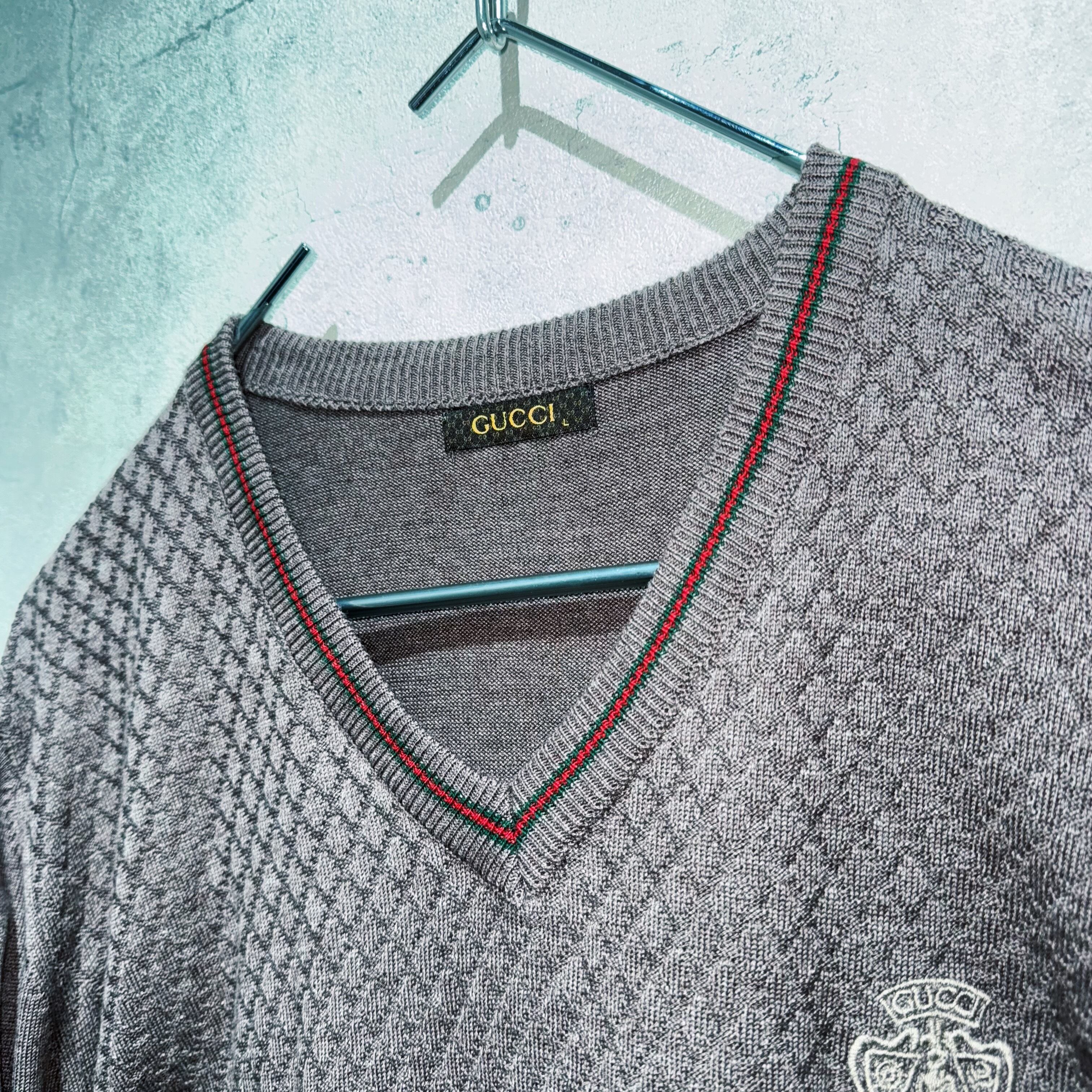 "グッチ"ロゴエンブロイダリーデザインシェリーラインVネックニット