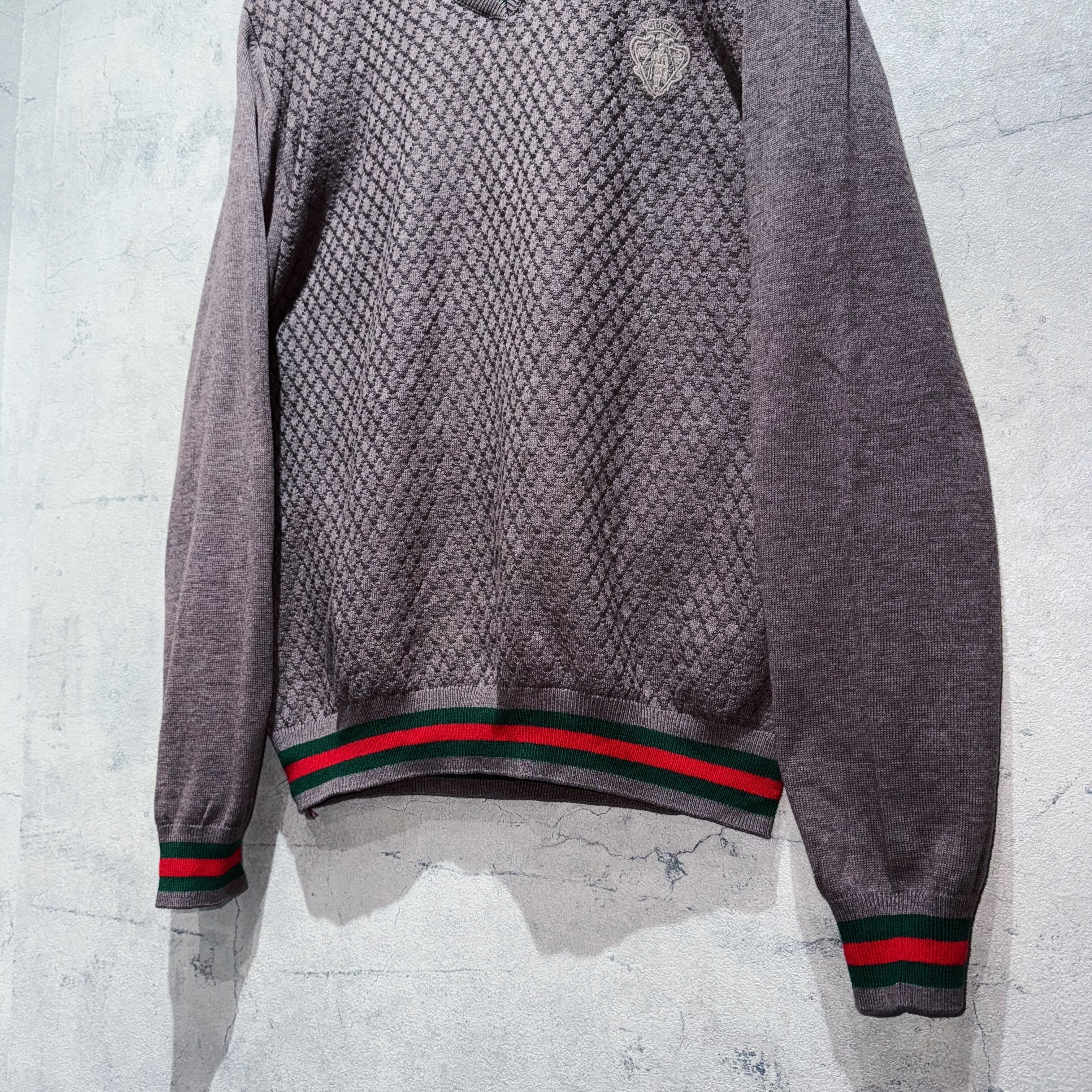 "GUCCI"logo embroidery design sherry line V-neck knit