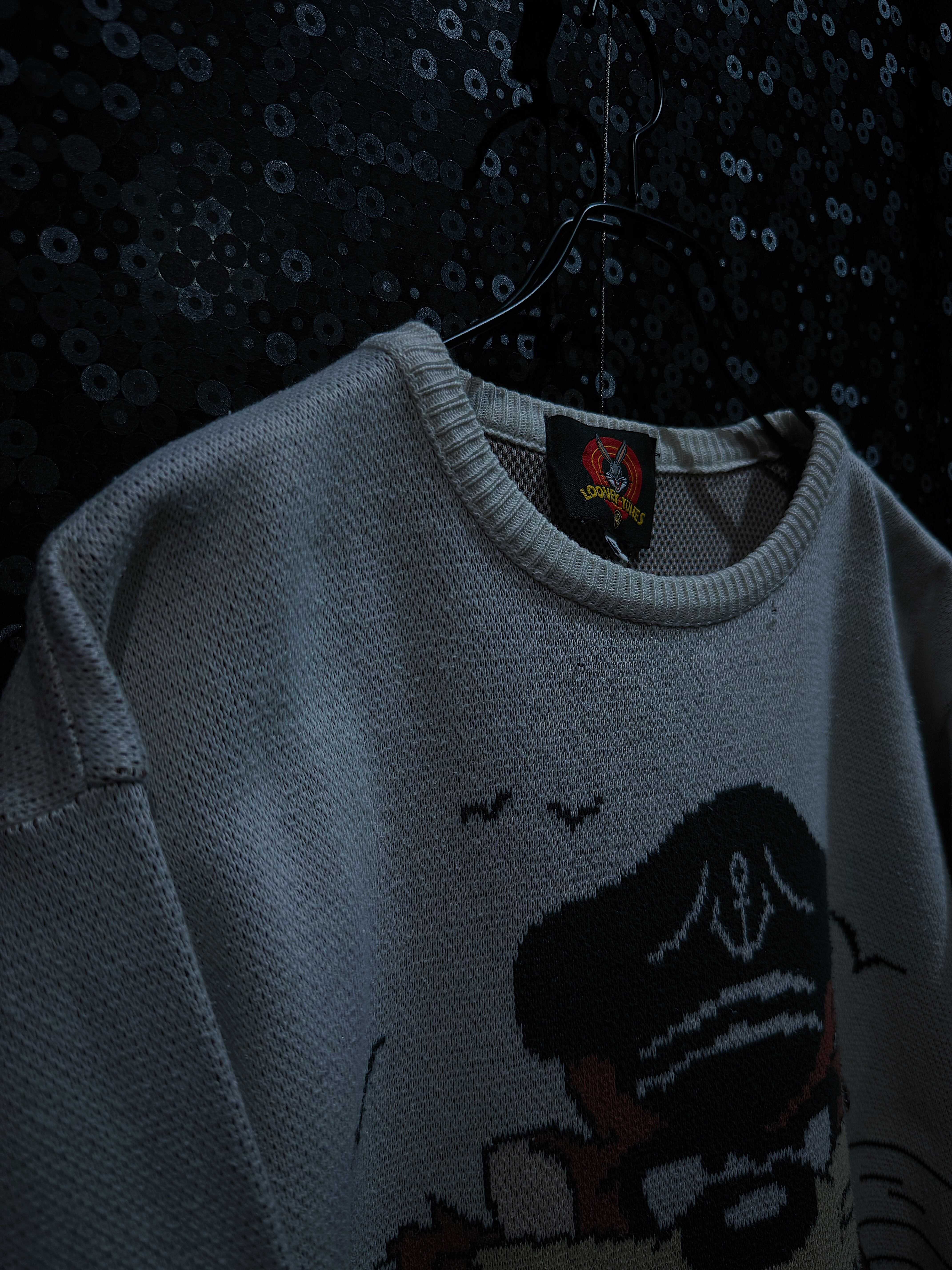 このようなキャラクターもののニットスウェットは、ストリートウェアやアメカジスタイルに取り入れやすく、デザイン性の高さからもコレクターズアイテムとしての価値も十分にあります。ルーニー・テューンズのキャラアイテムは特にアメリカの古着市場で人気が高く、ユニークなデザインのものは年々希少価値が上がっています。