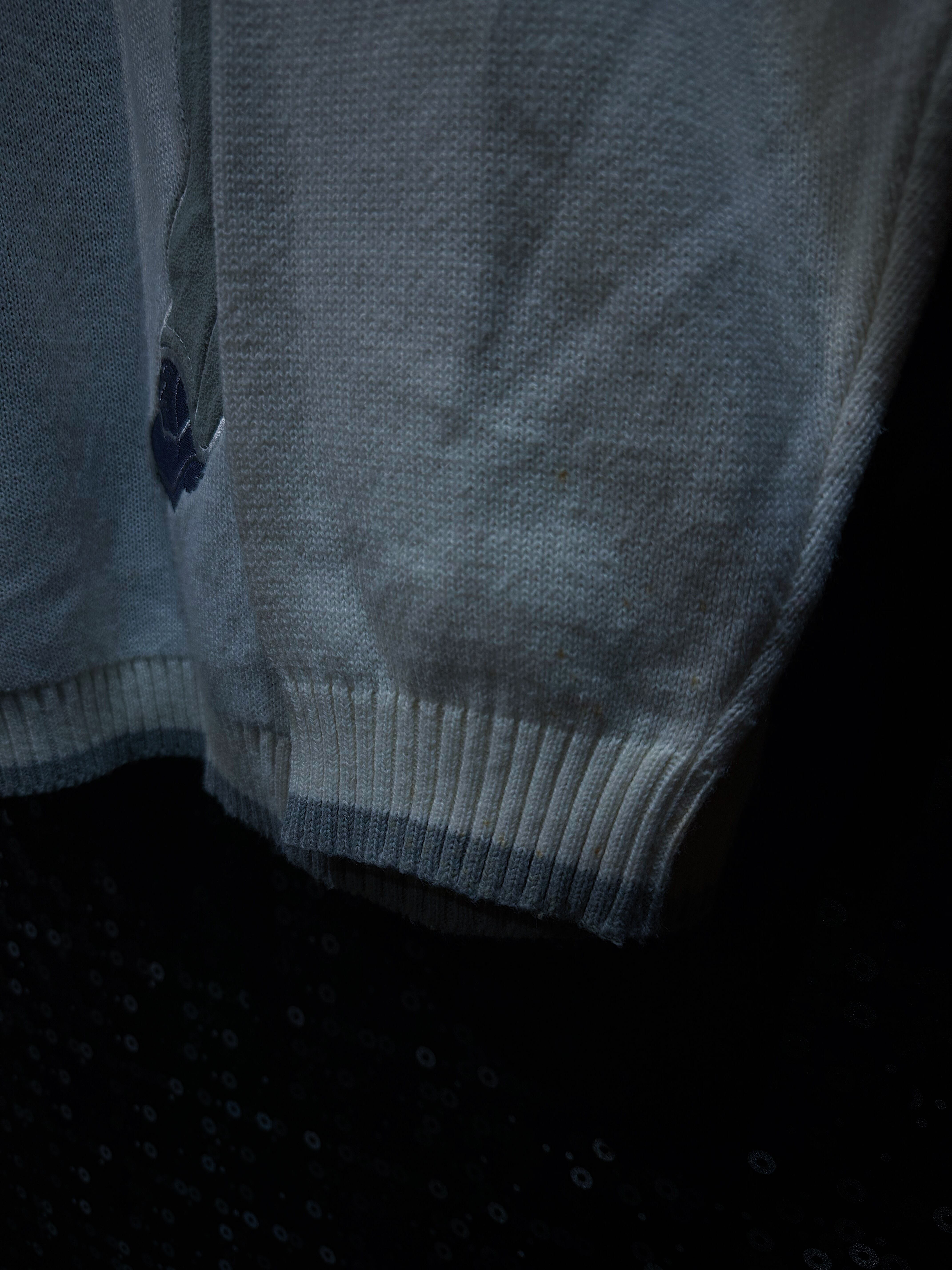 材質は、アクリルやコットンの混紡が主流の可能性が高く、厚手のニット生地が特徴。寒い季節に適した暖かみのある作りとなっています。