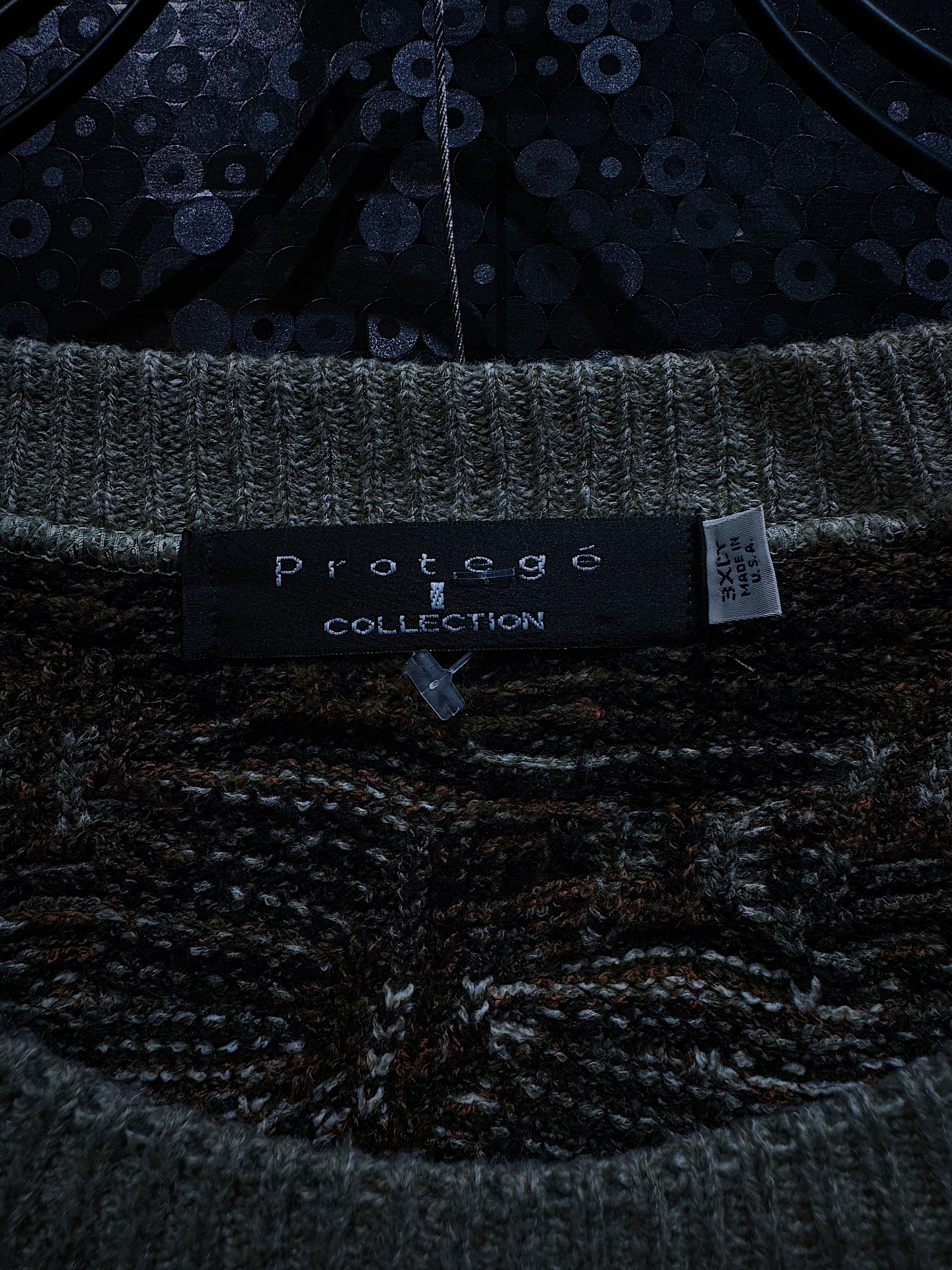 ProtegeCollectionのニットは主にアクリル、コットン、ウールの混紡で作られていることが多く、軽量ながらも暖かく、型崩れしにくいのが特徴です。特に、厚手のアクリルニットは、コージーな雰囲気と耐久性を兼ね備えており、ヴィンテージ市場でも人気があります。