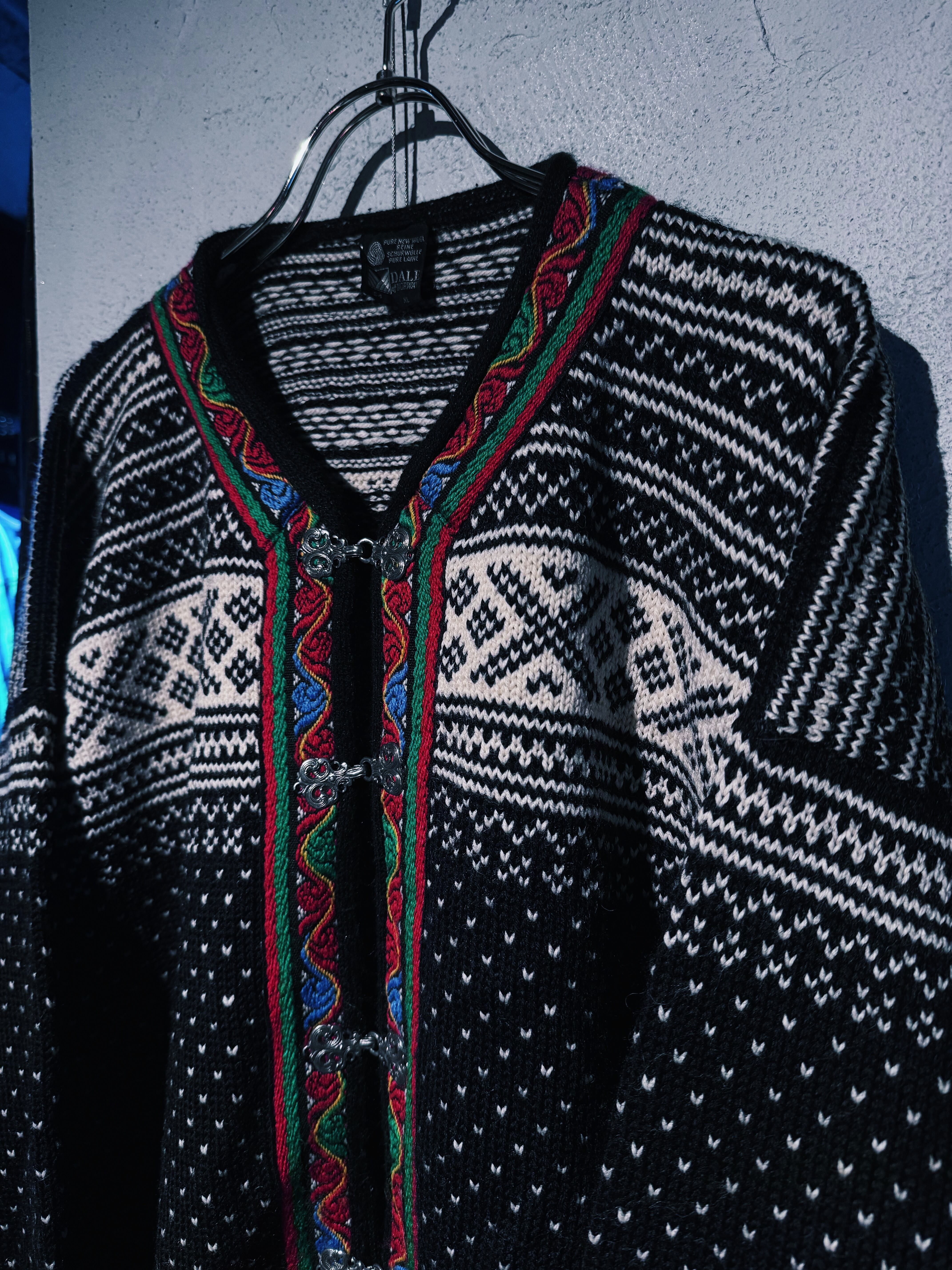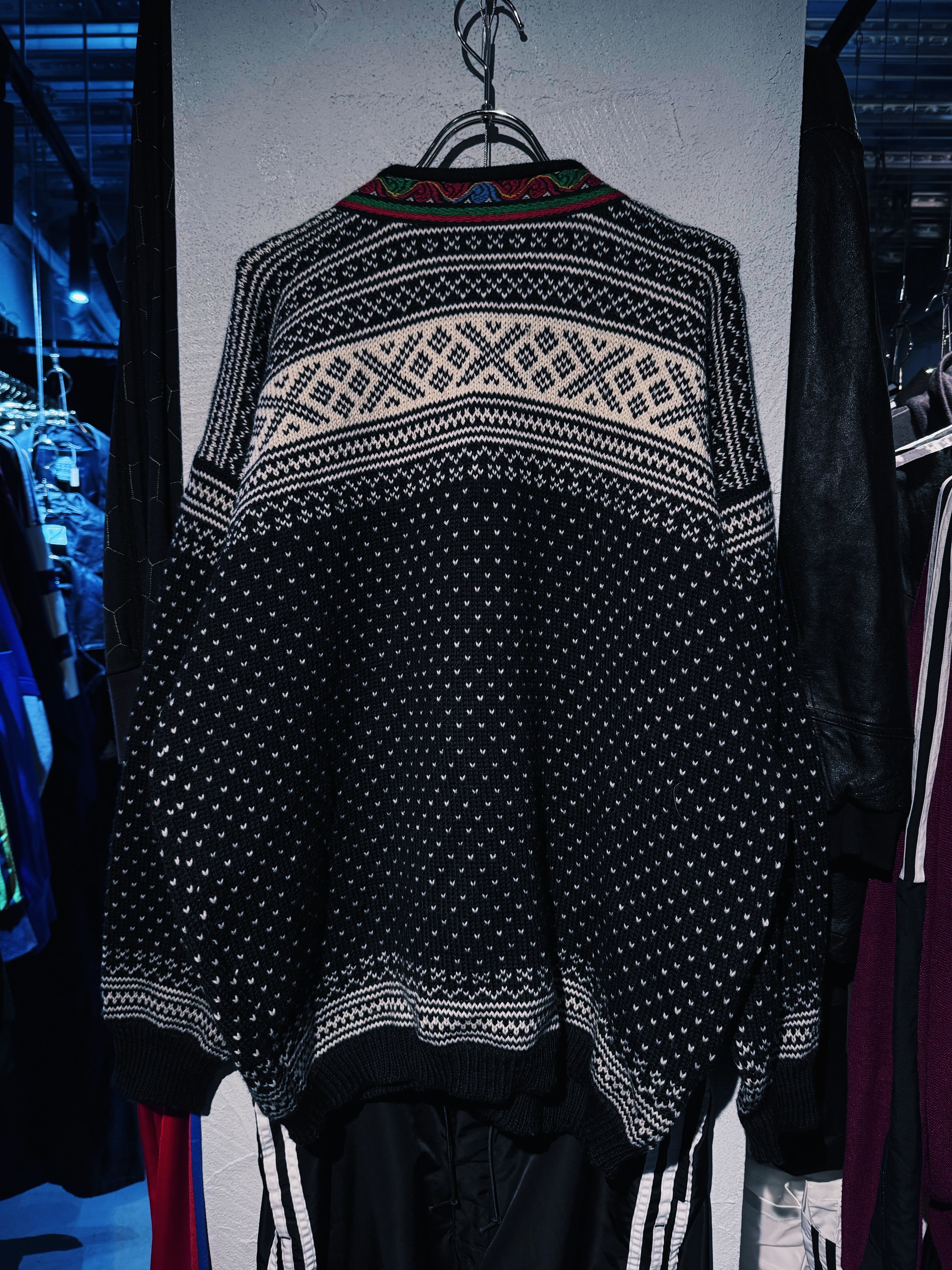 90's vintage made in Nolway traditional pattern design knit cardigan