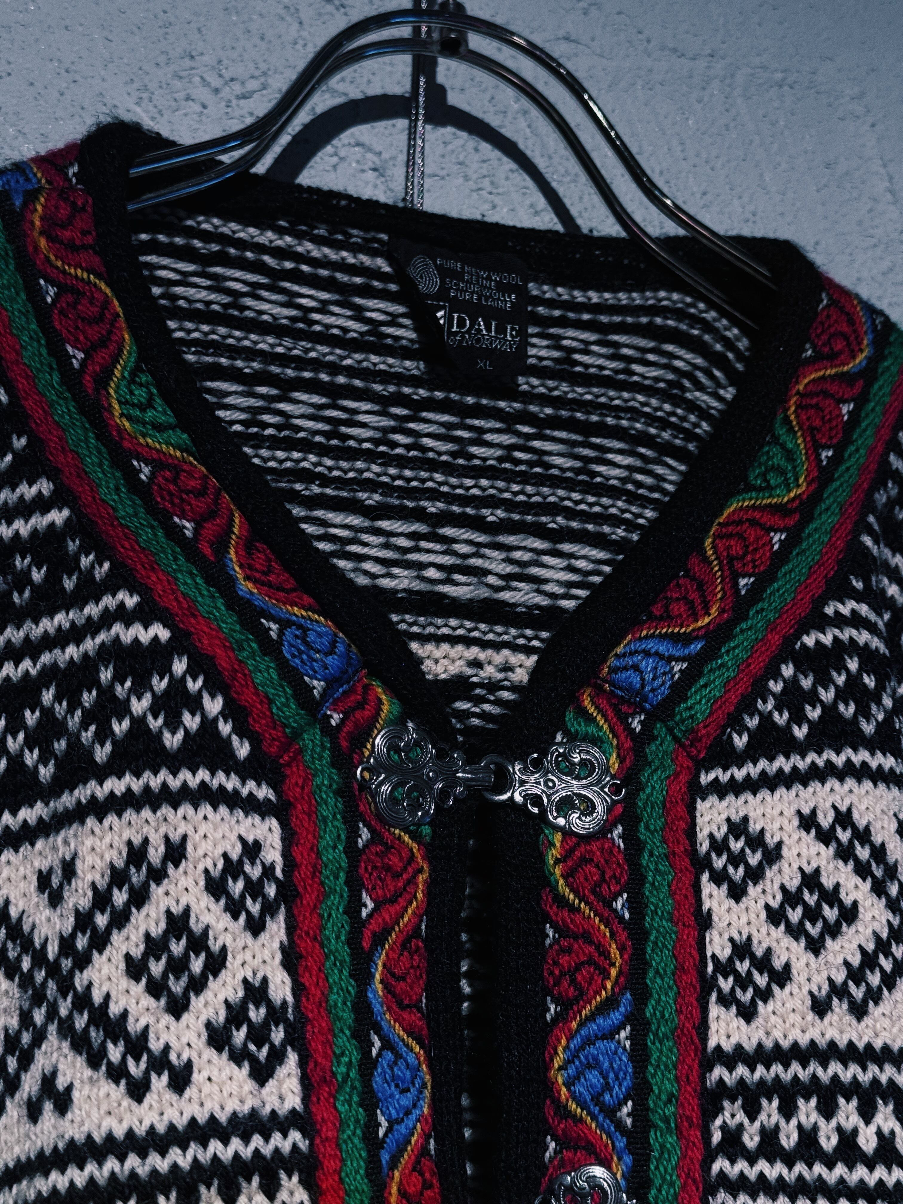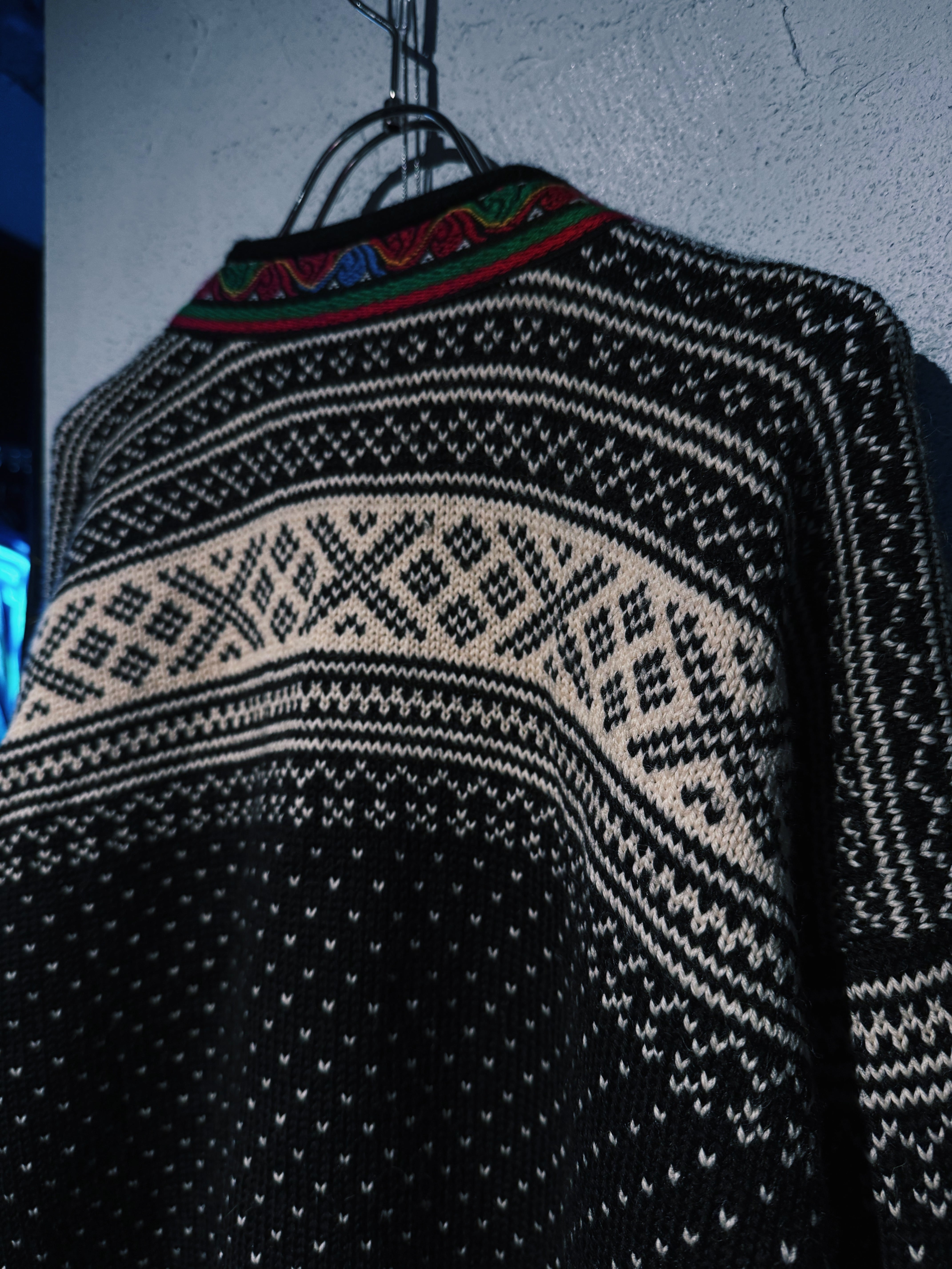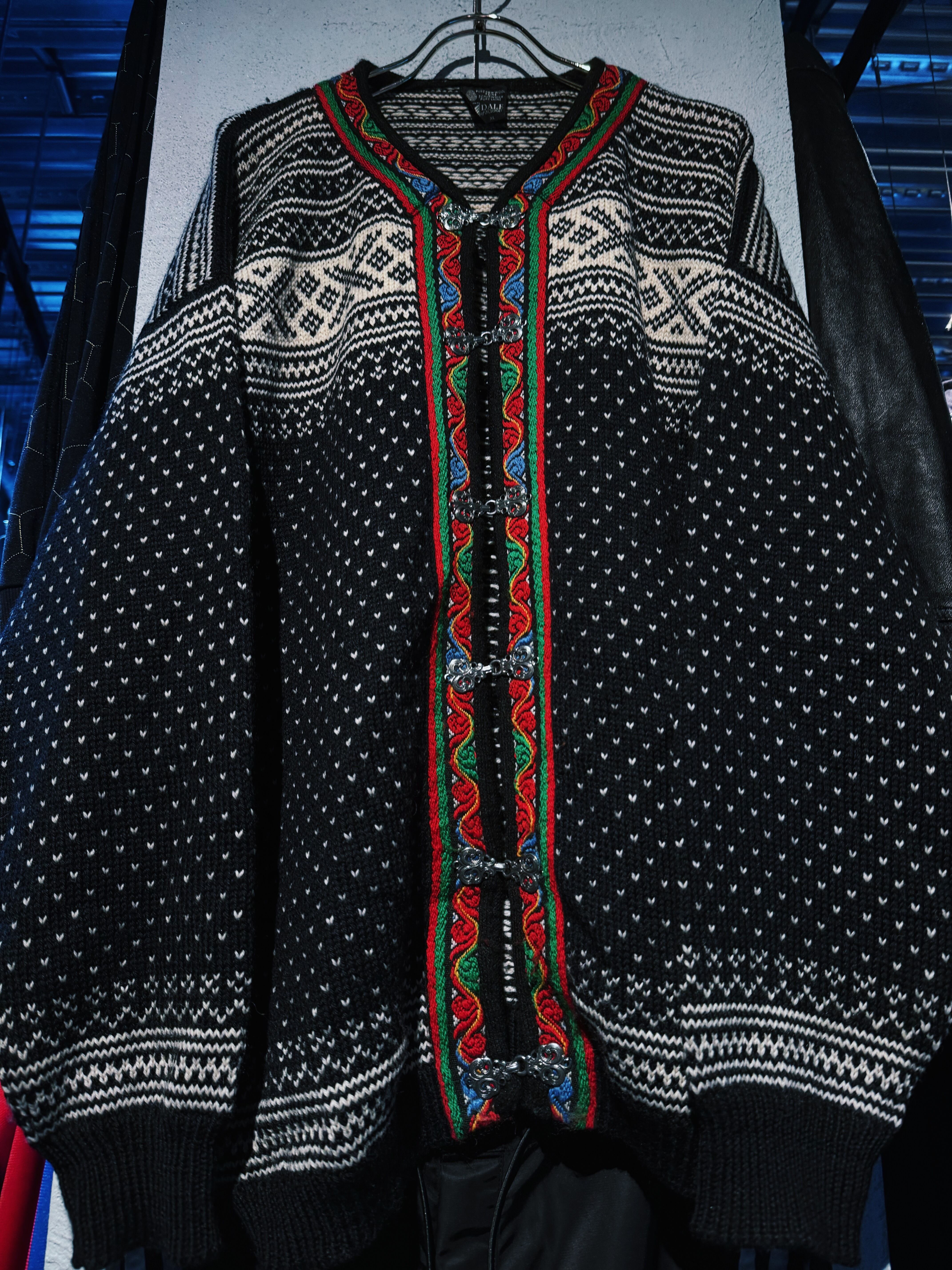 【D4C】90's vintage made in Nolway traditional pattern design knit cardigan