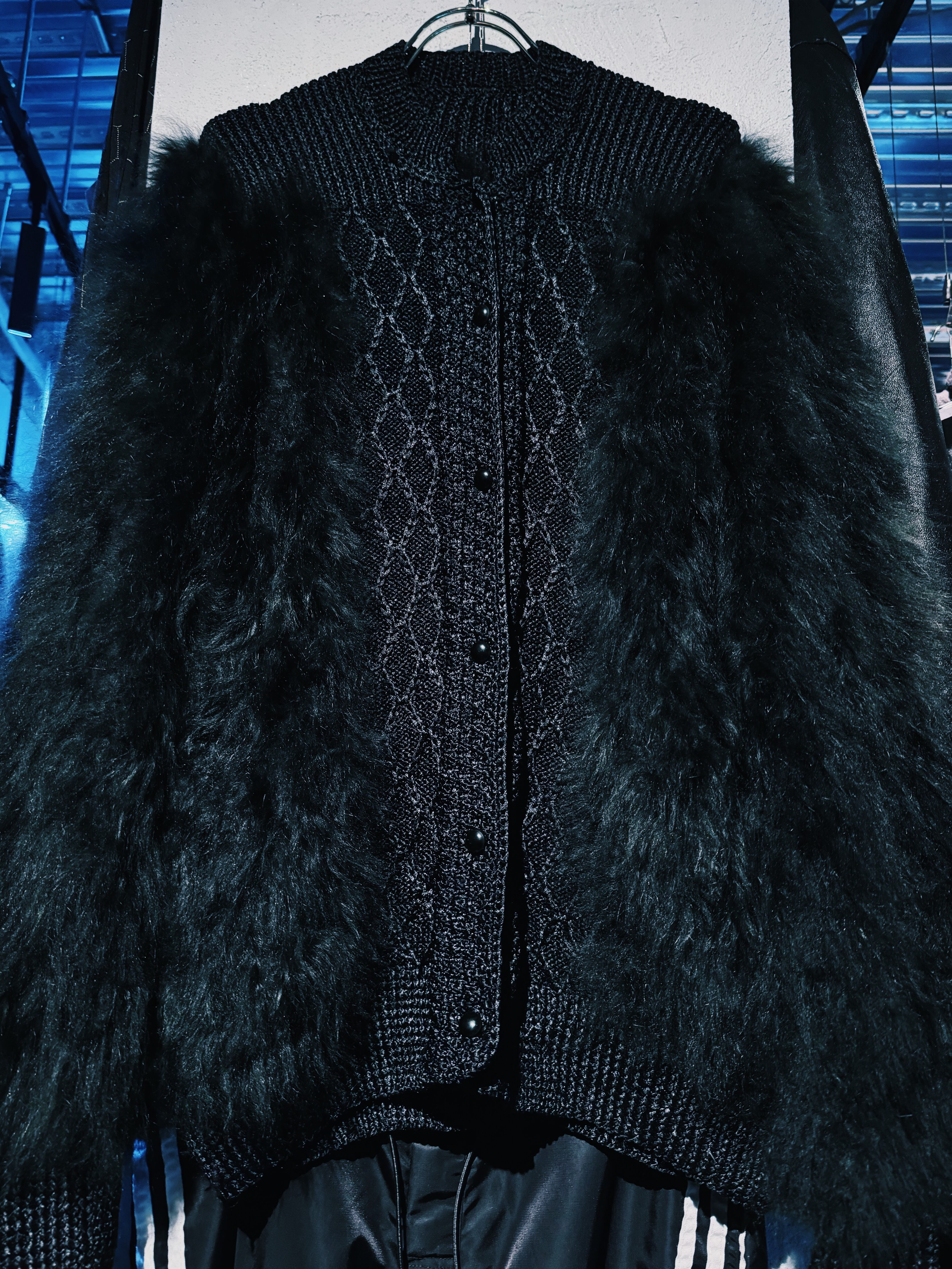 【D4C】90's vintage fur docking design knit cardigan