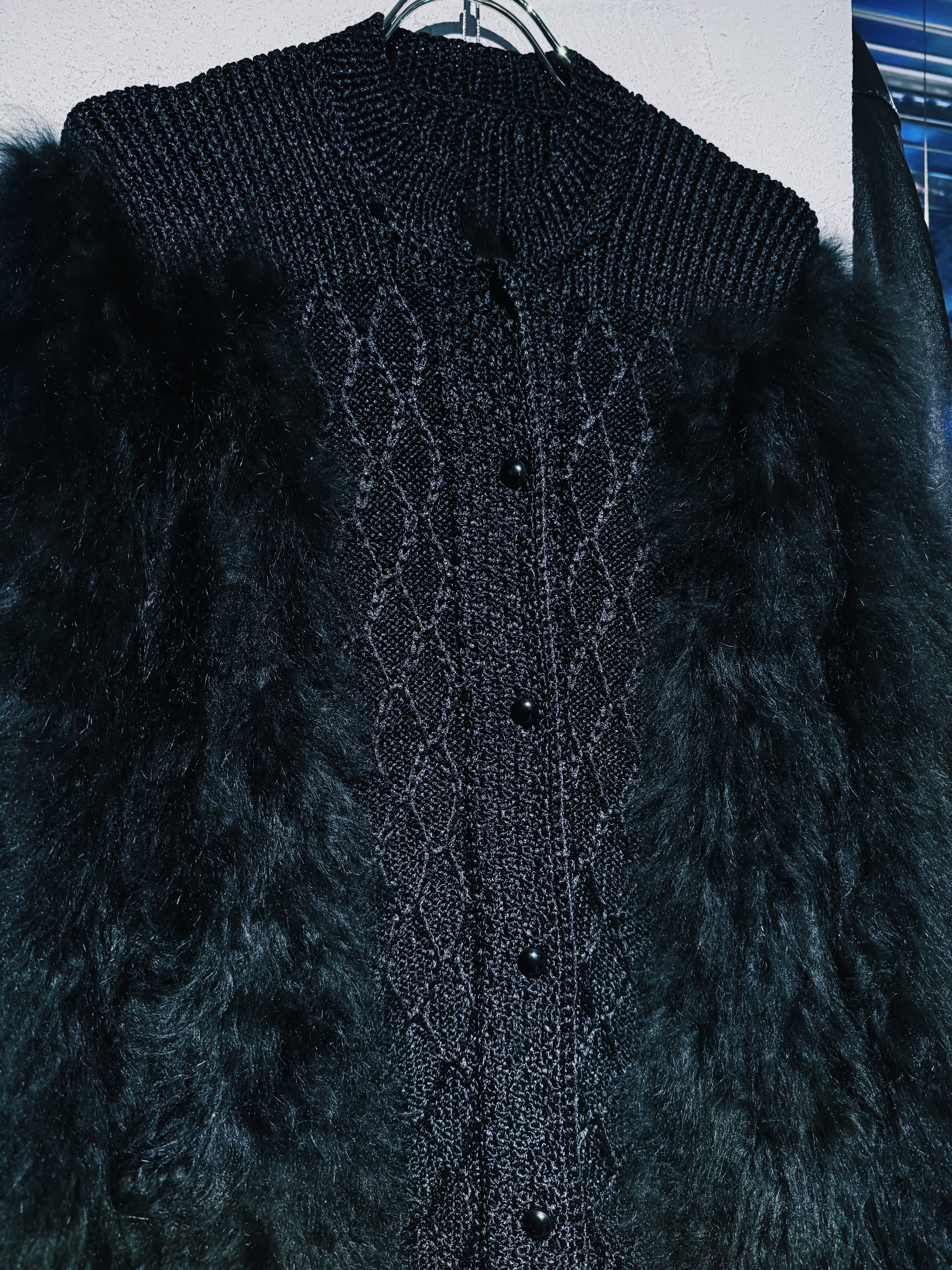 90's vintage fur docking design knit cardigan