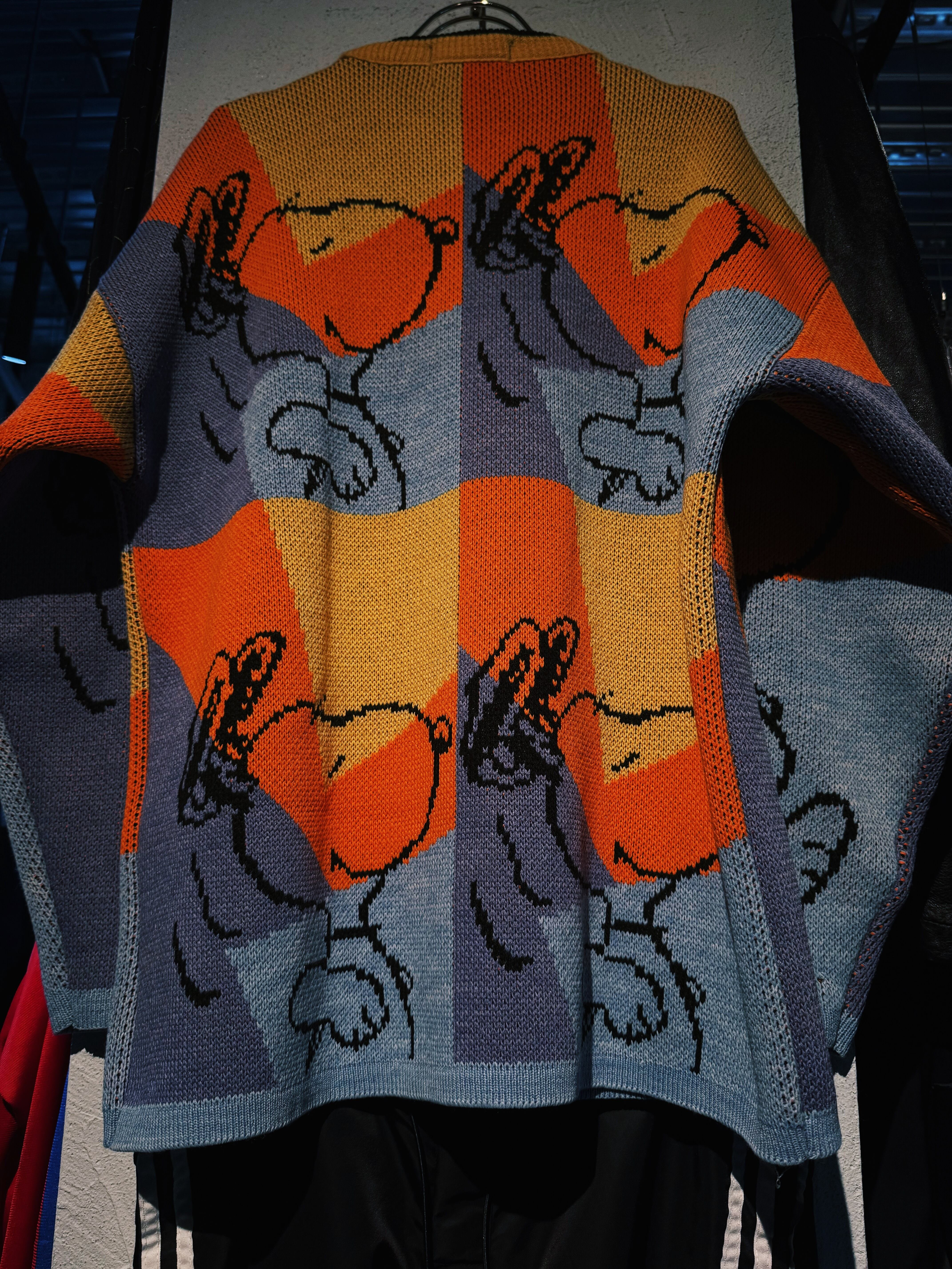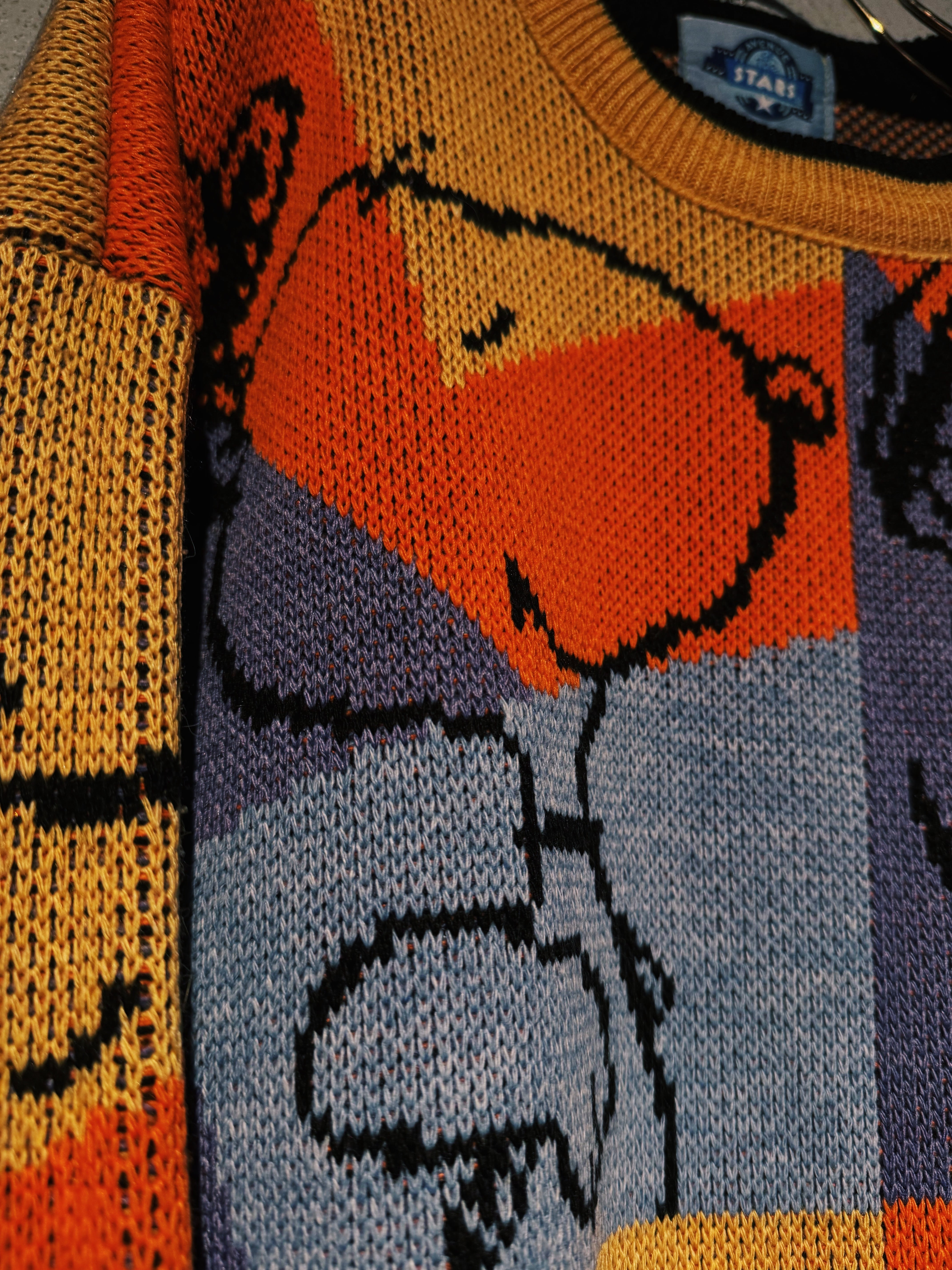 "スヌーピー"マルチカラージジオメトリックニットプルオーバー