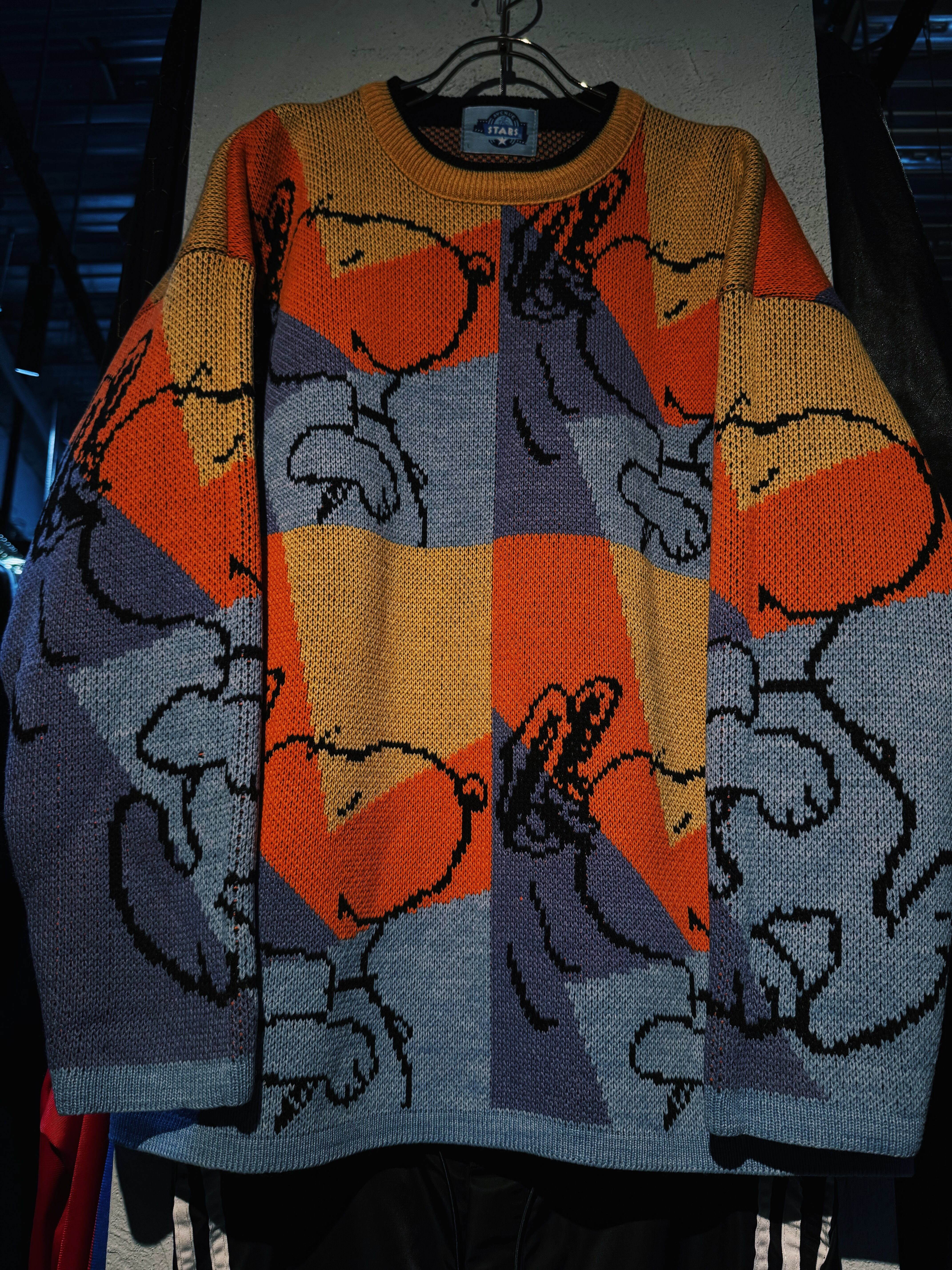 【D4C】"SNOOPY" mulch color geometric pattern knit pullover