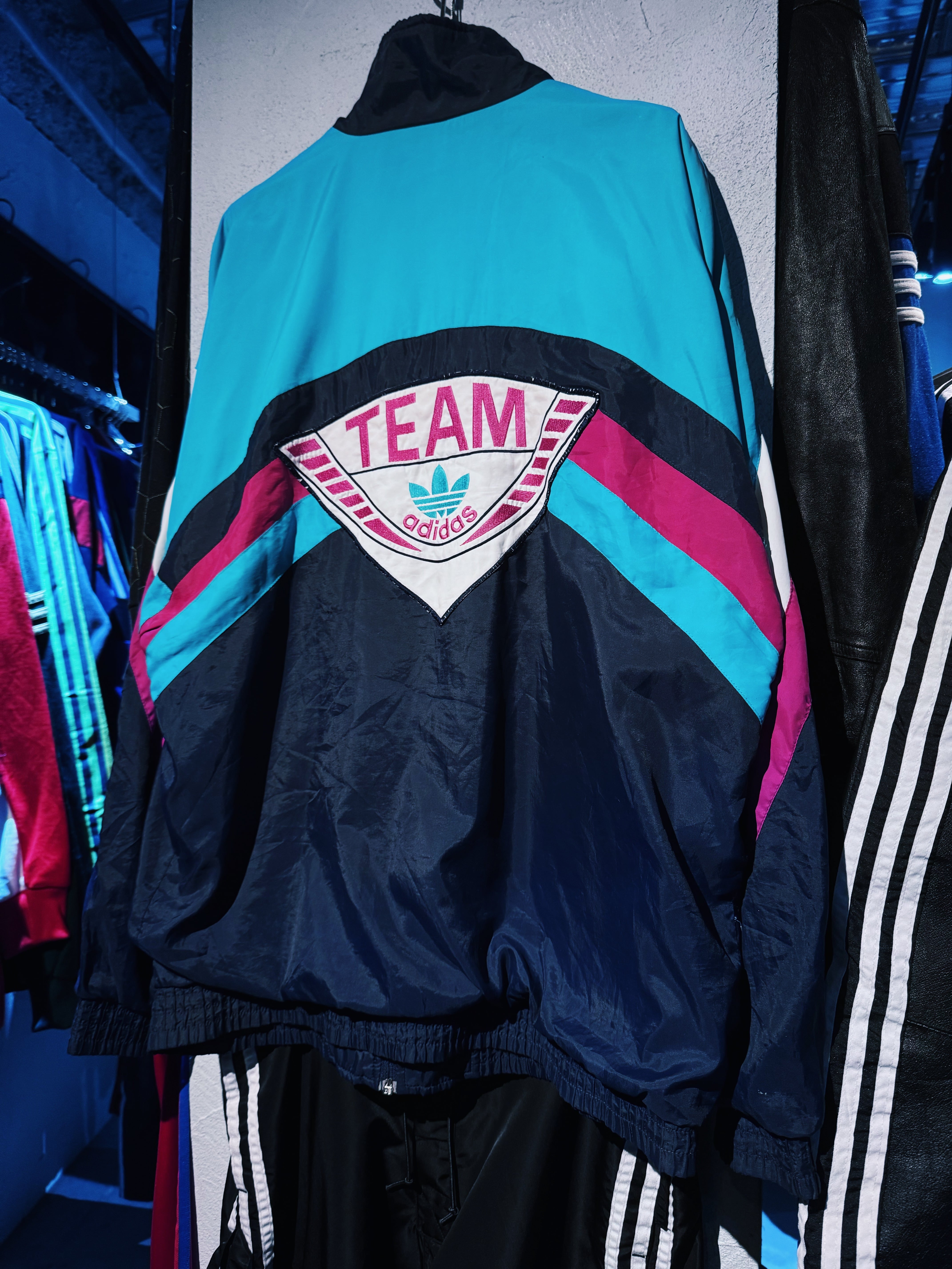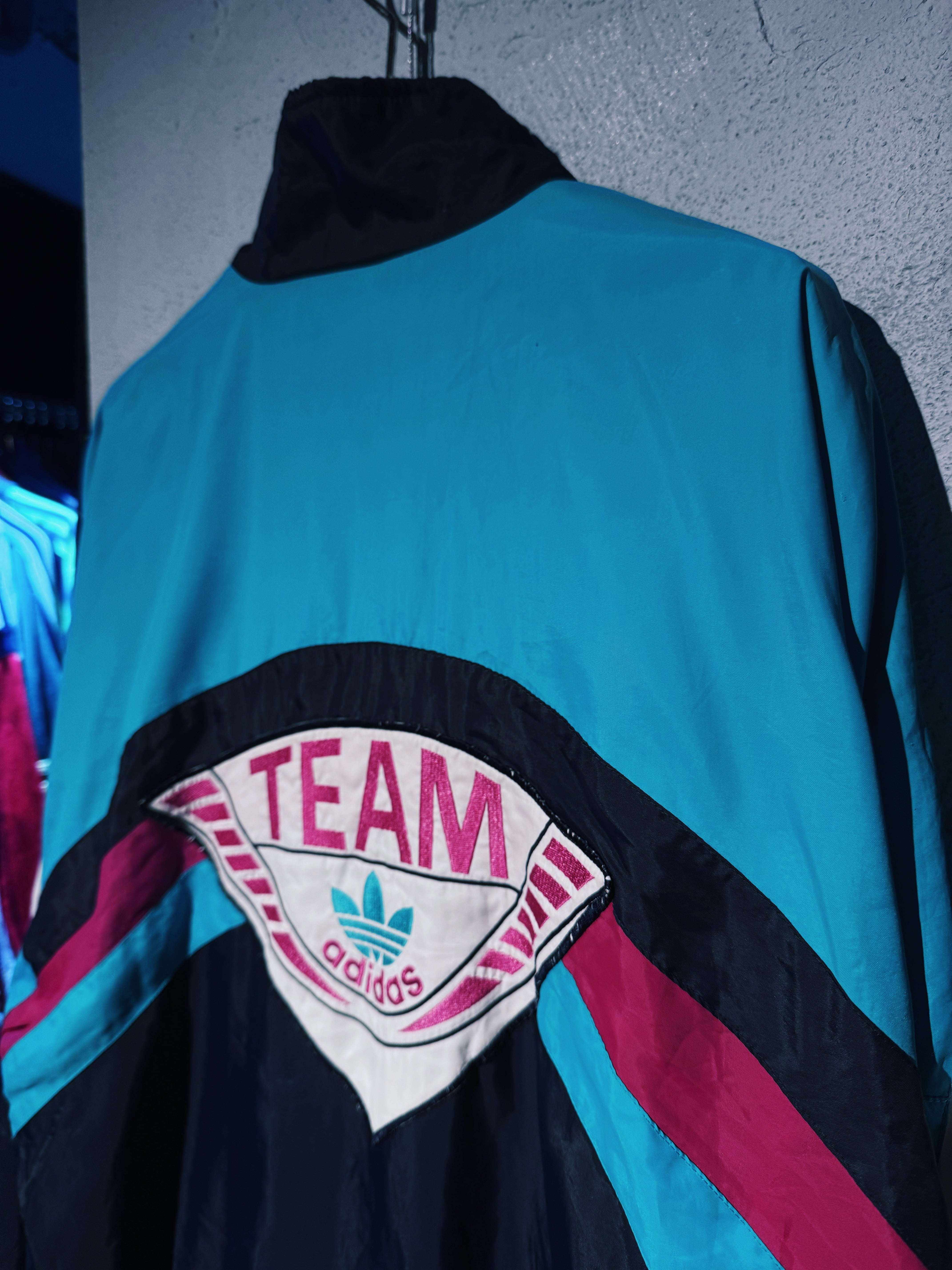 80年代"アディダスチーム"ユーロヴィンテージスイッチングカラーナイロントラックジャケット