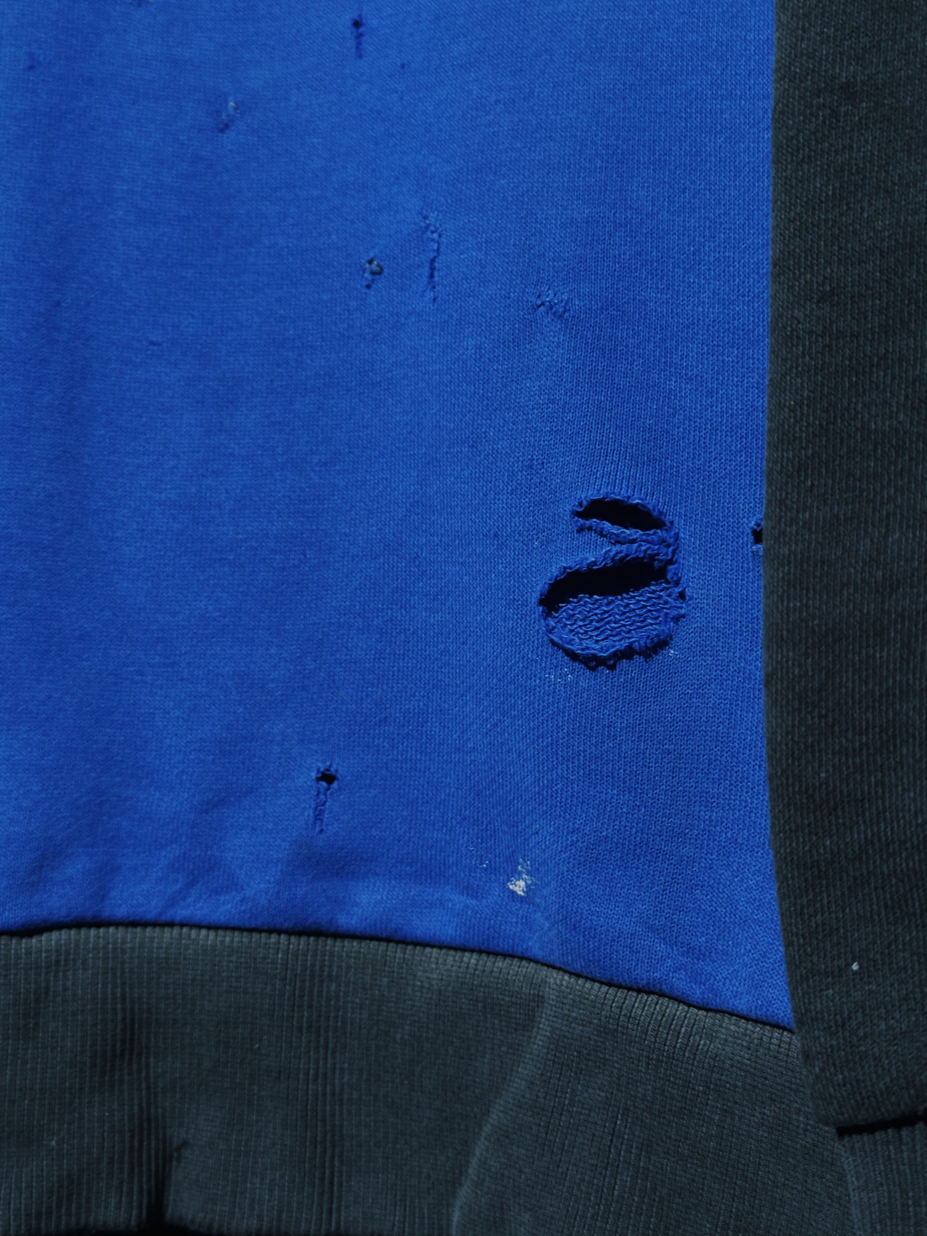 程よいダメージ加工が施されており、グランジ感のある雰囲気が魅力。